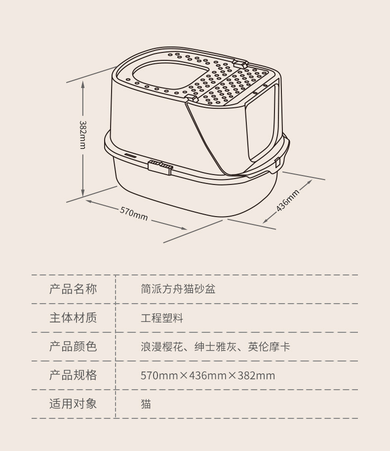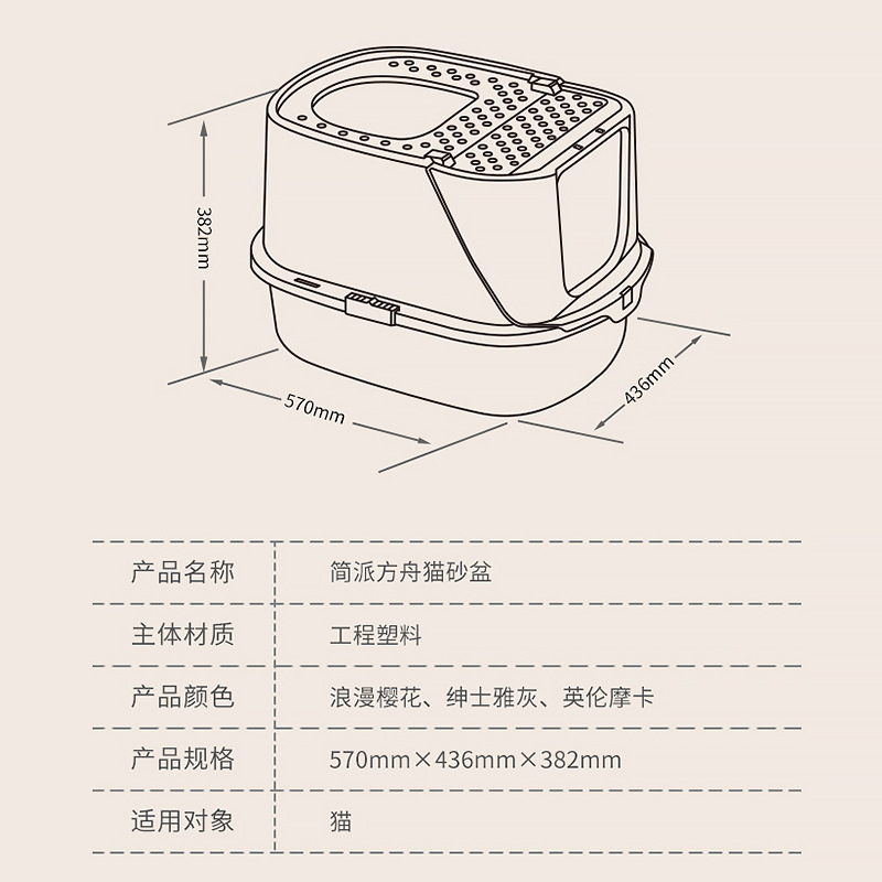 핑크색 방주 폐쇄형 고양이 배변 상자