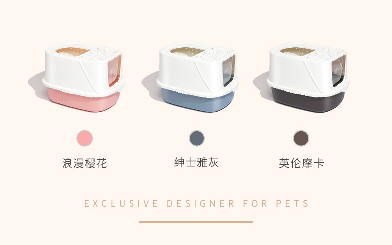핑크 심플 밀폐형 고양이 배변 상자