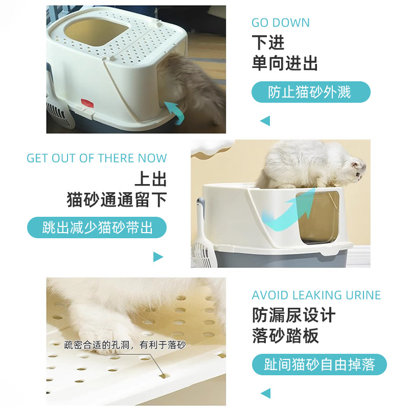 고양이 쓰레기 상자 도매 완전히 밀폐 된 대형 서랍 형 고양이 화장실 냄새 방지 모래 새끼 고양이 배설물 분지 안티 스플래쉬