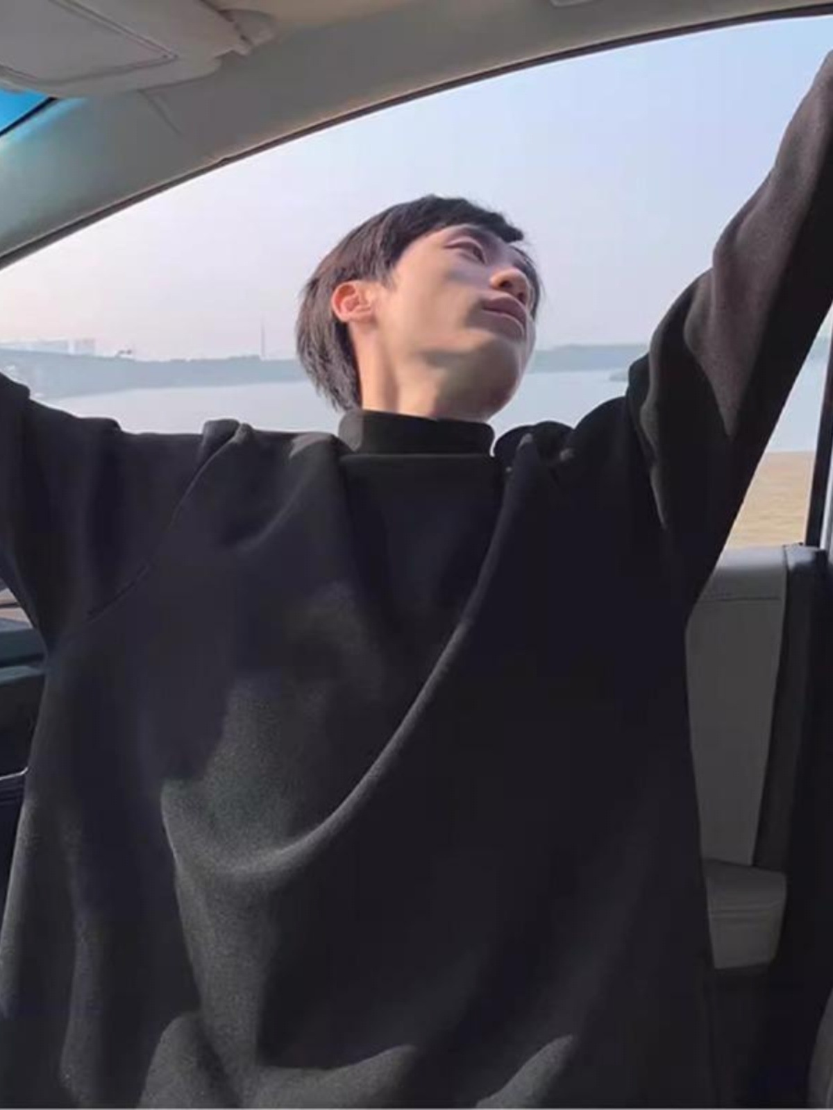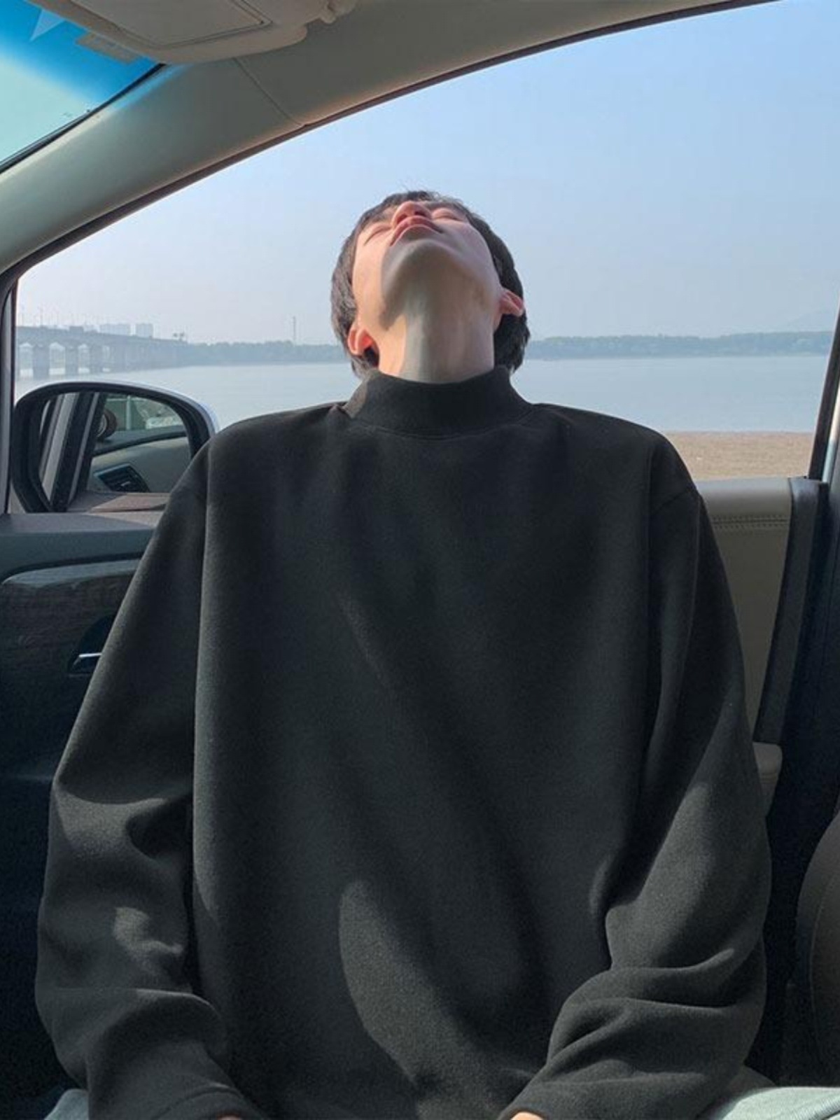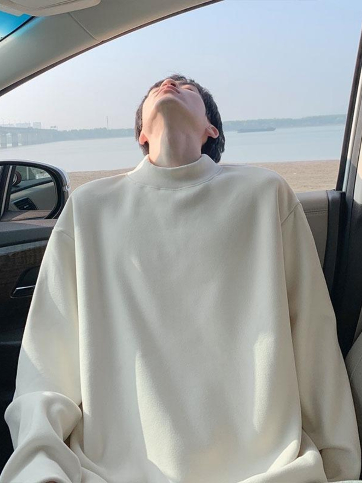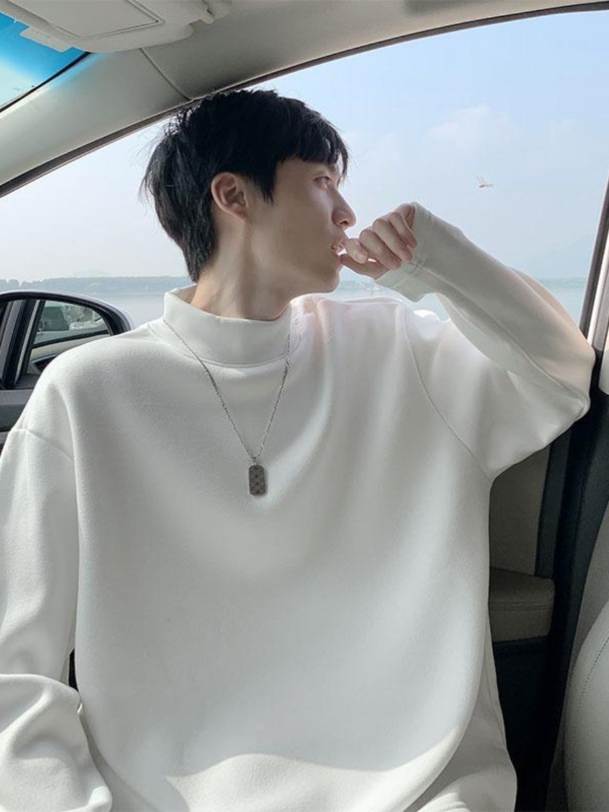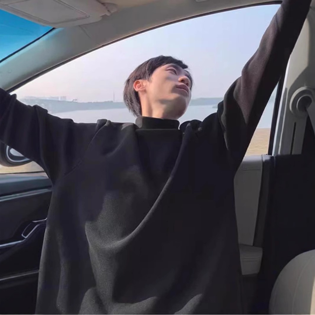 높은 칼라 단색 긴 소매 티셔츠 남자의 느슨한 2024 가을 및 봄 새로운 유행 브랜드 독일 벨벳 따뜻한 캐주얼 베이스 셔츠 잘 생긴