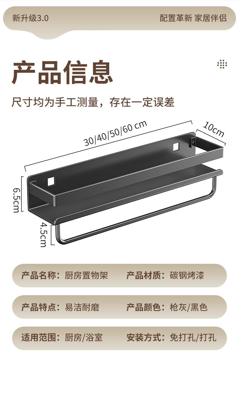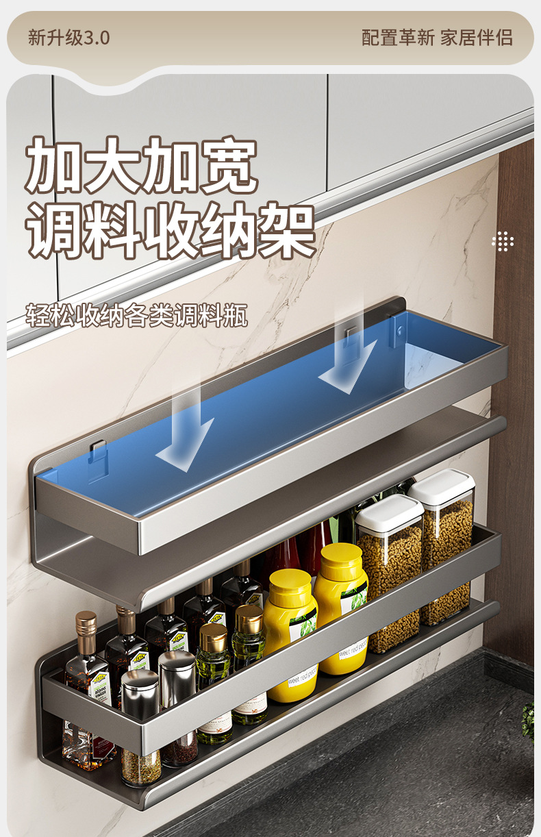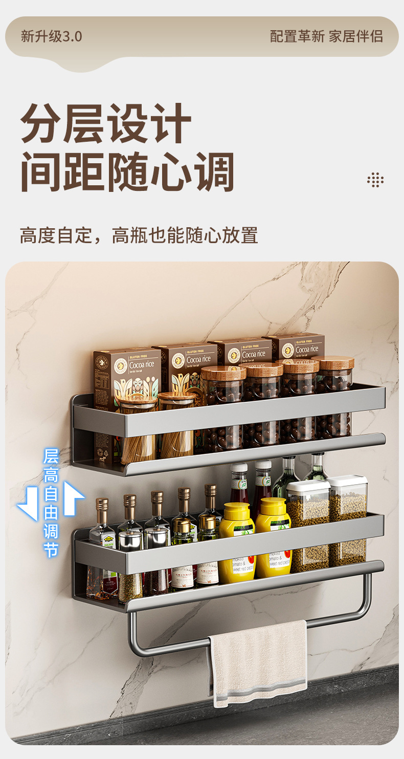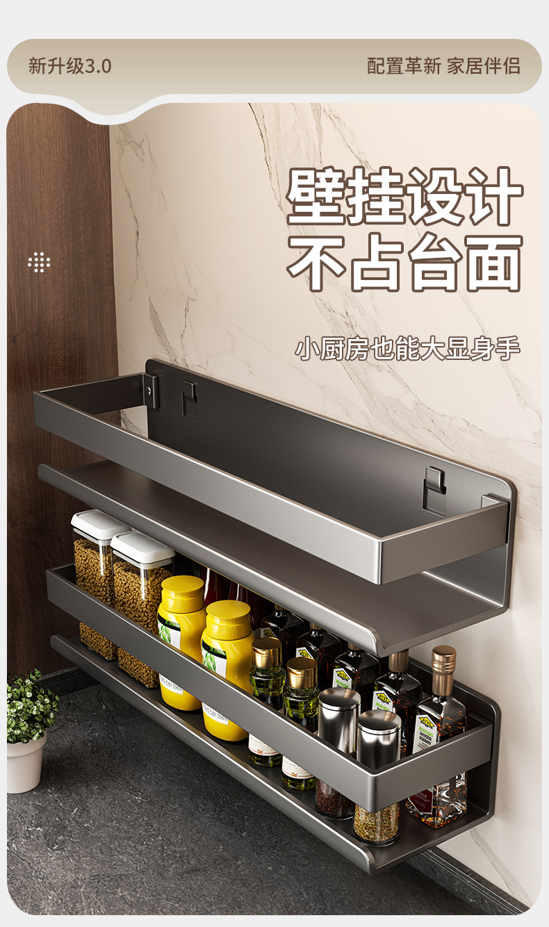 펀치없는 조미료 랙 벽부터 벽까지 주방 보관 랙 교수형 오븐 랙 전자 레인지 저장 랙 소형 가전 제품 용 네일 프리