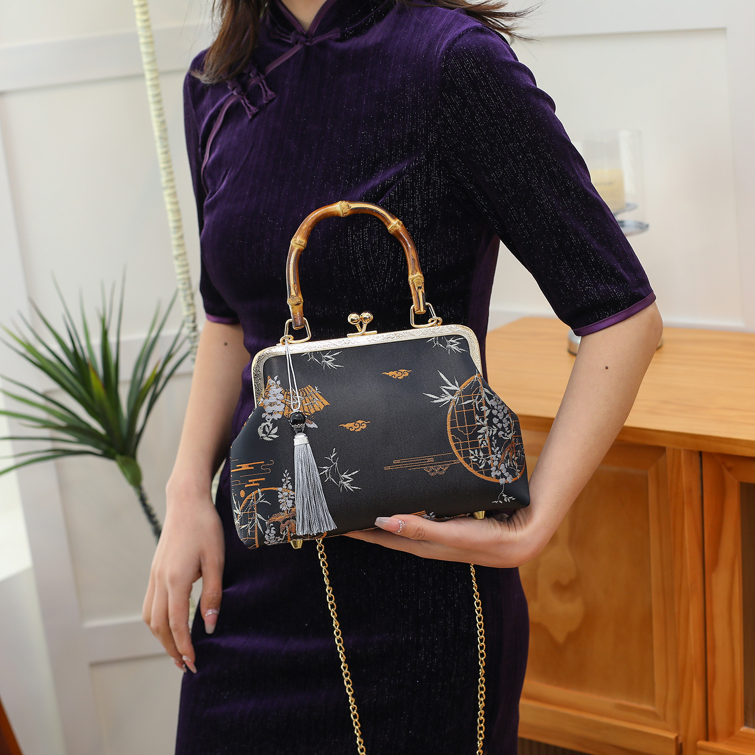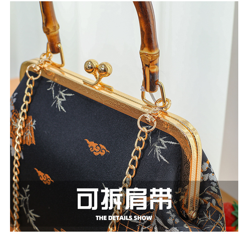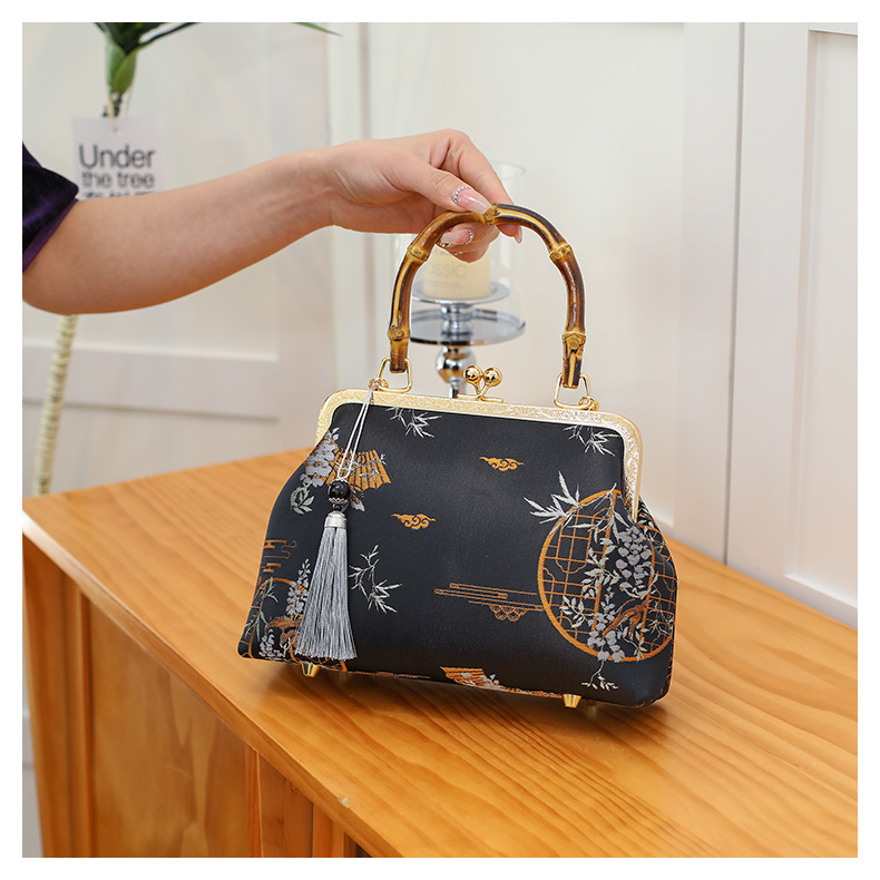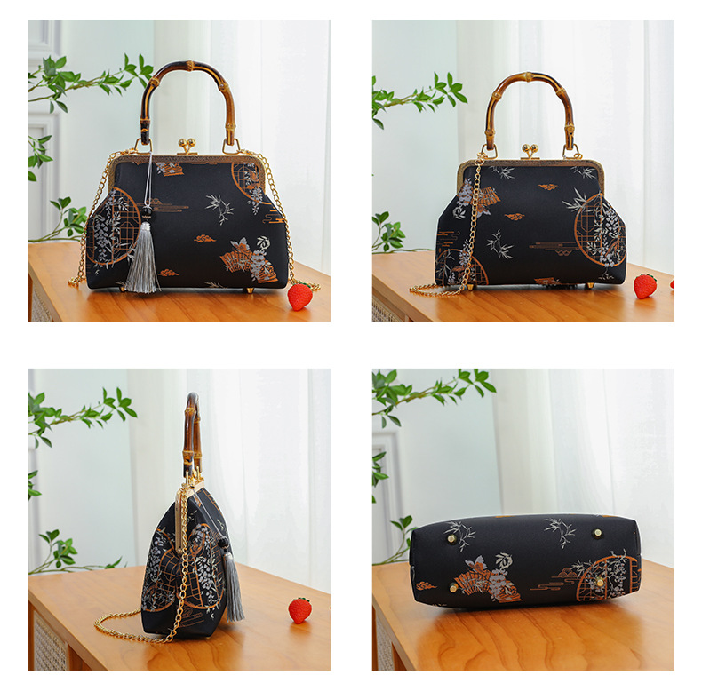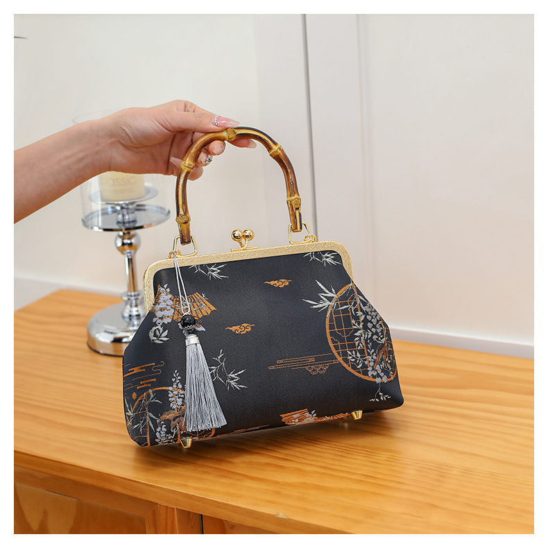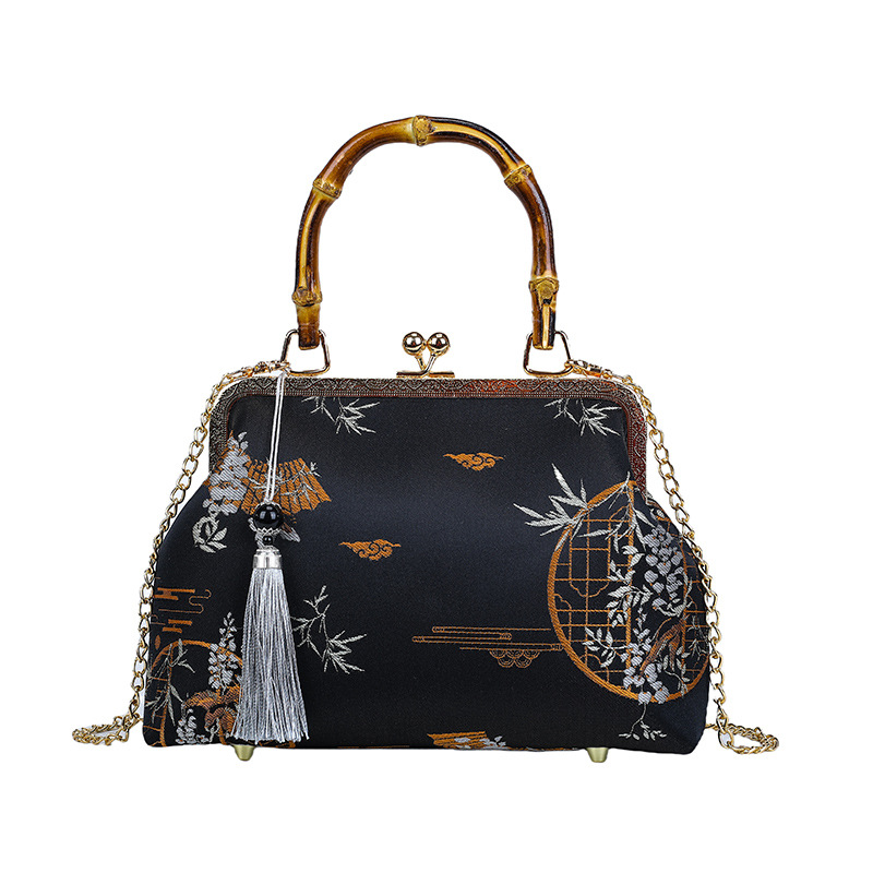 우아한 내셔널 스타일-블랙-진짜 대나무 핸드백
