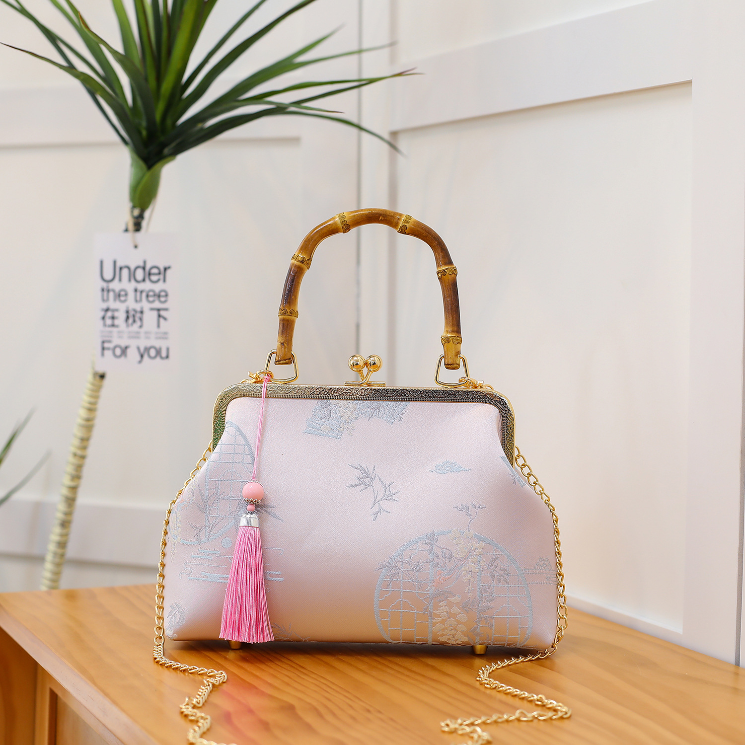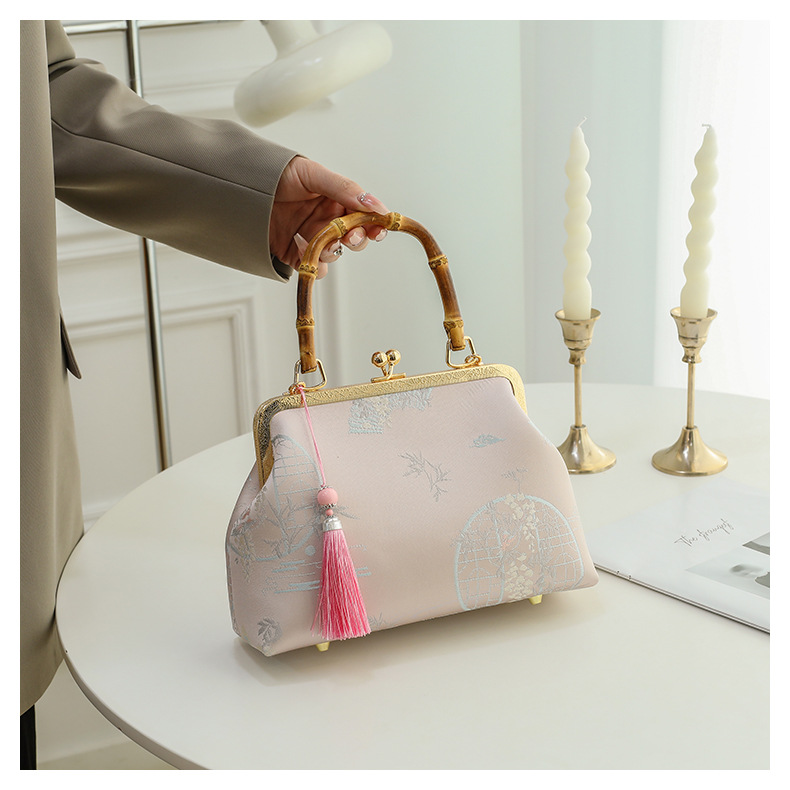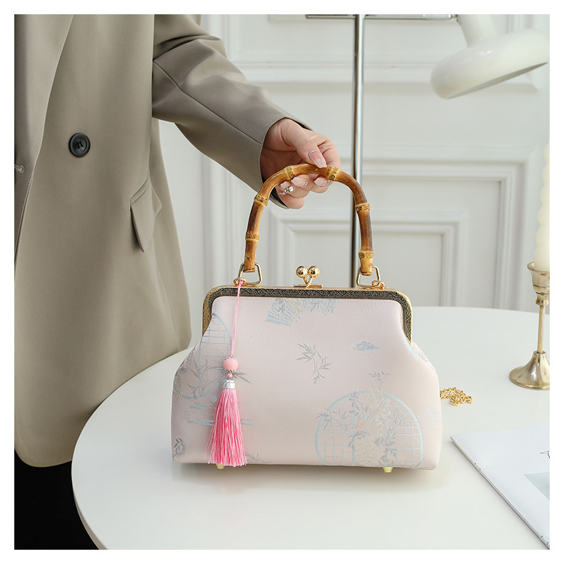 우아한 내셔널 스타일-핑크-진짜 대나무 핸드백