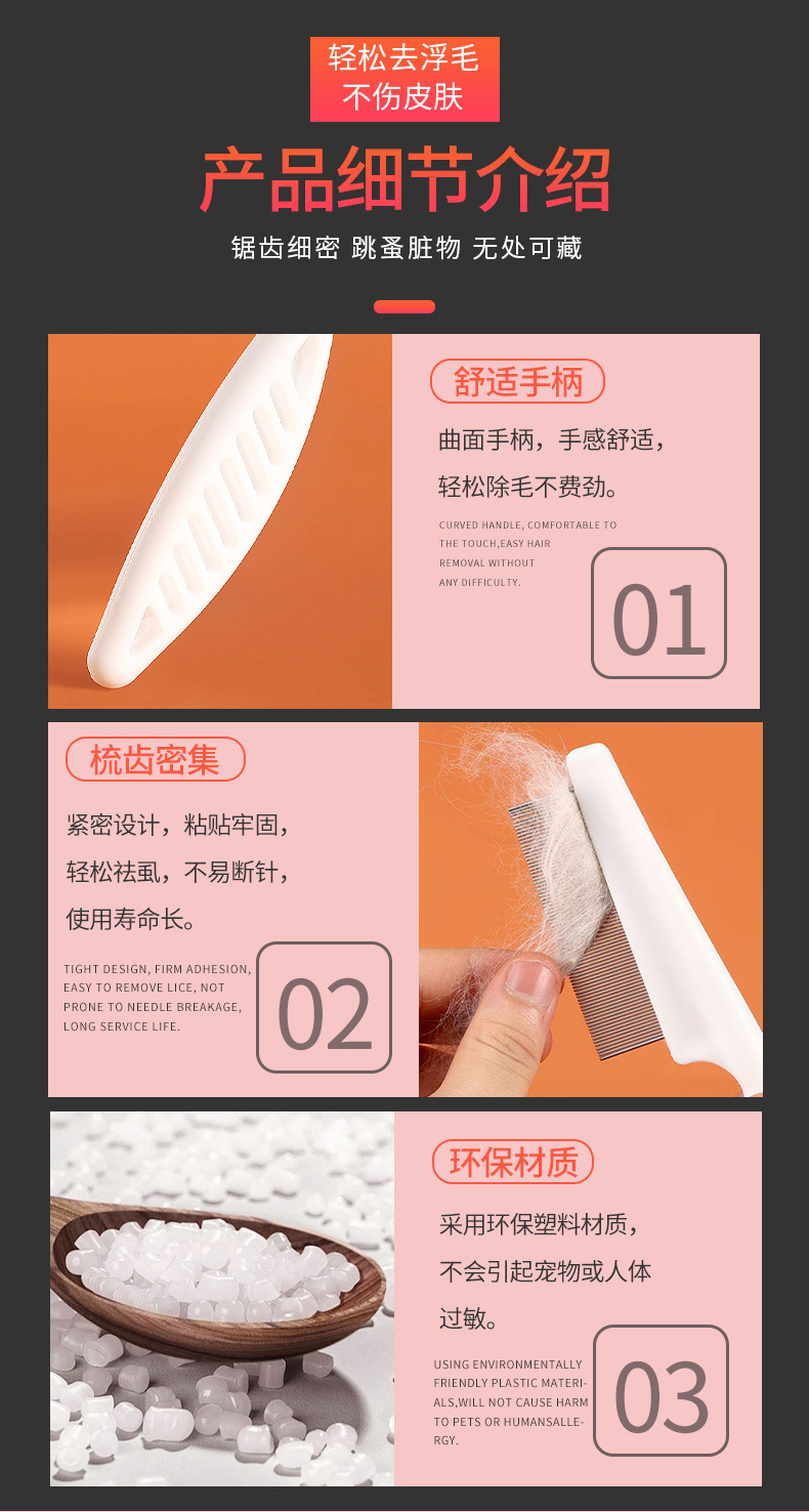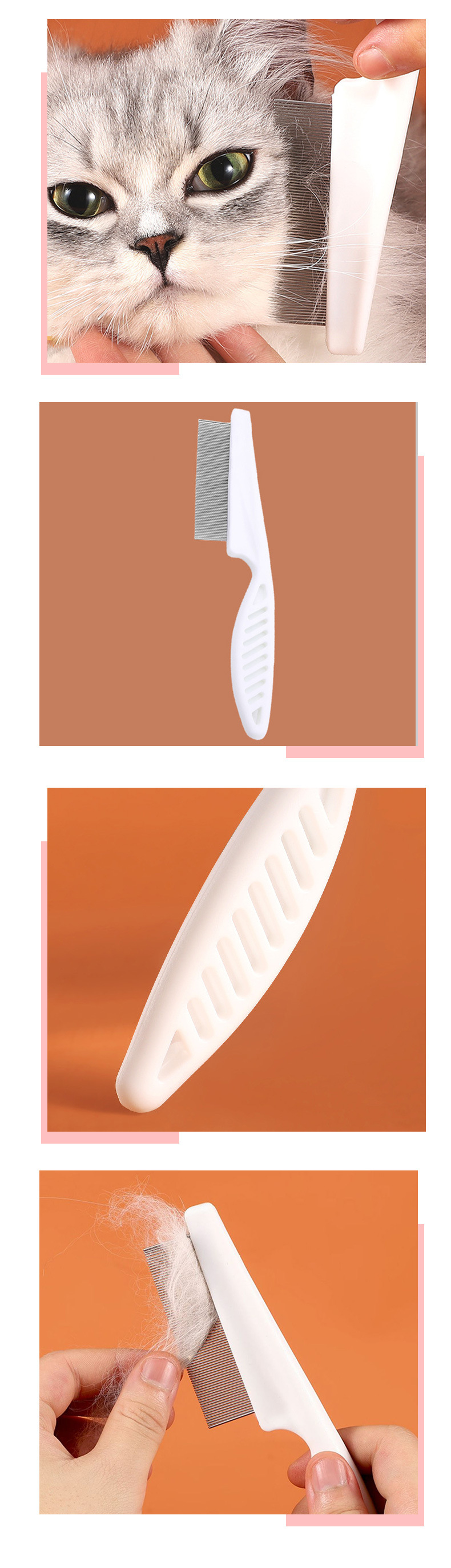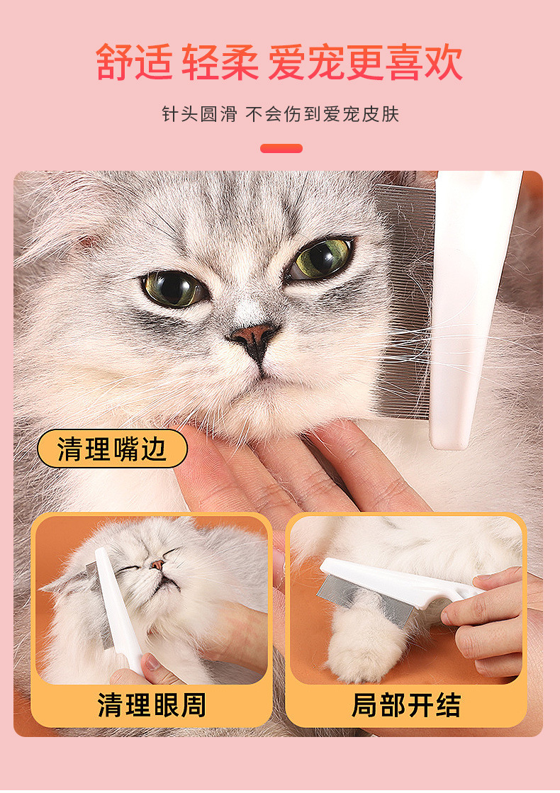 떠다니는 털을 제거하는 애완동물 가는 빗, 벼룩 빗, 고양이 및 강아지 얼굴 청소, 직선 빗, 애완동물 용품 도매
