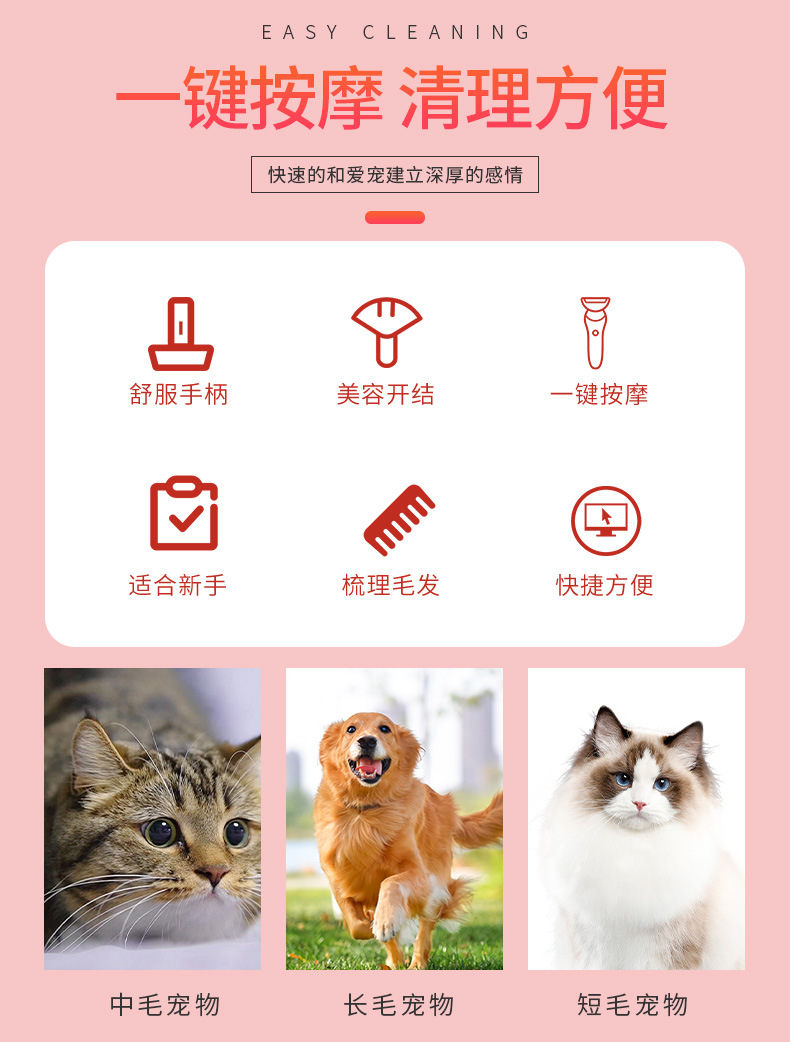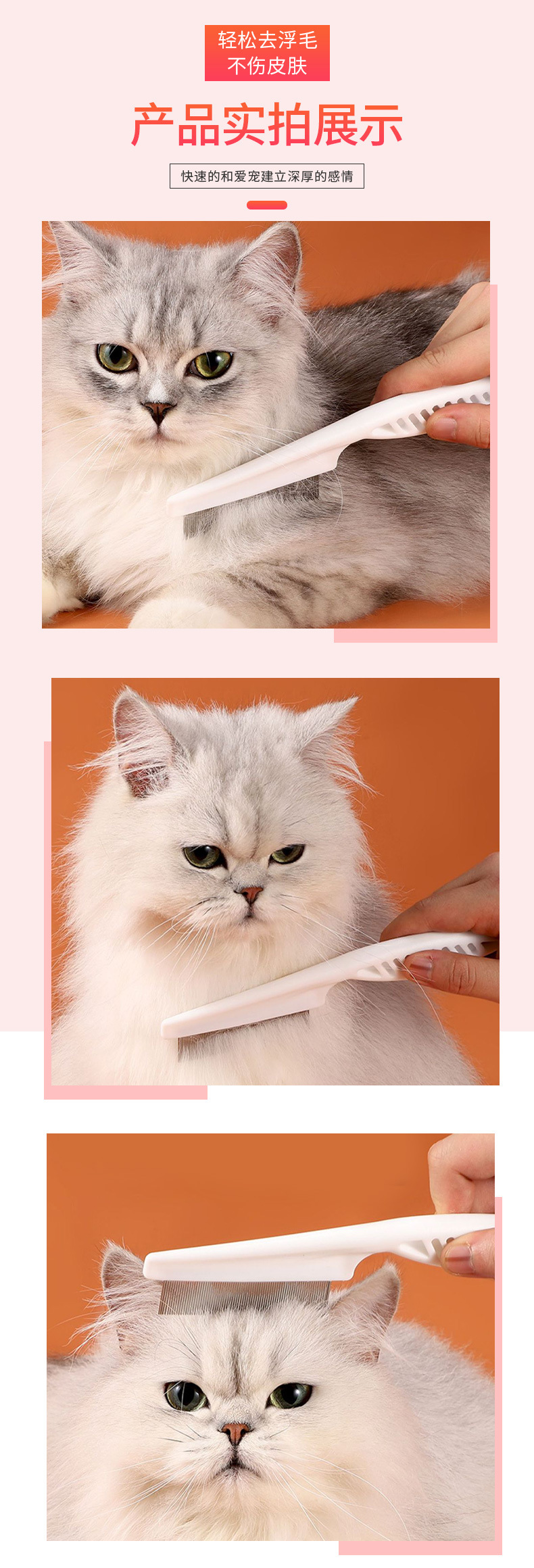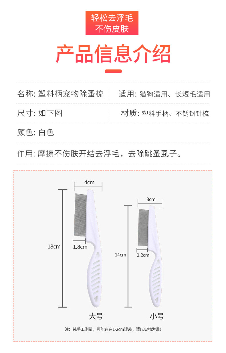 떠다니는 털을 제거하는 애완동물 가는 빗, 벼룩 빗, 고양이 및 강아지 얼굴 청소, 직선 빗, 애완동물 용품 도매
