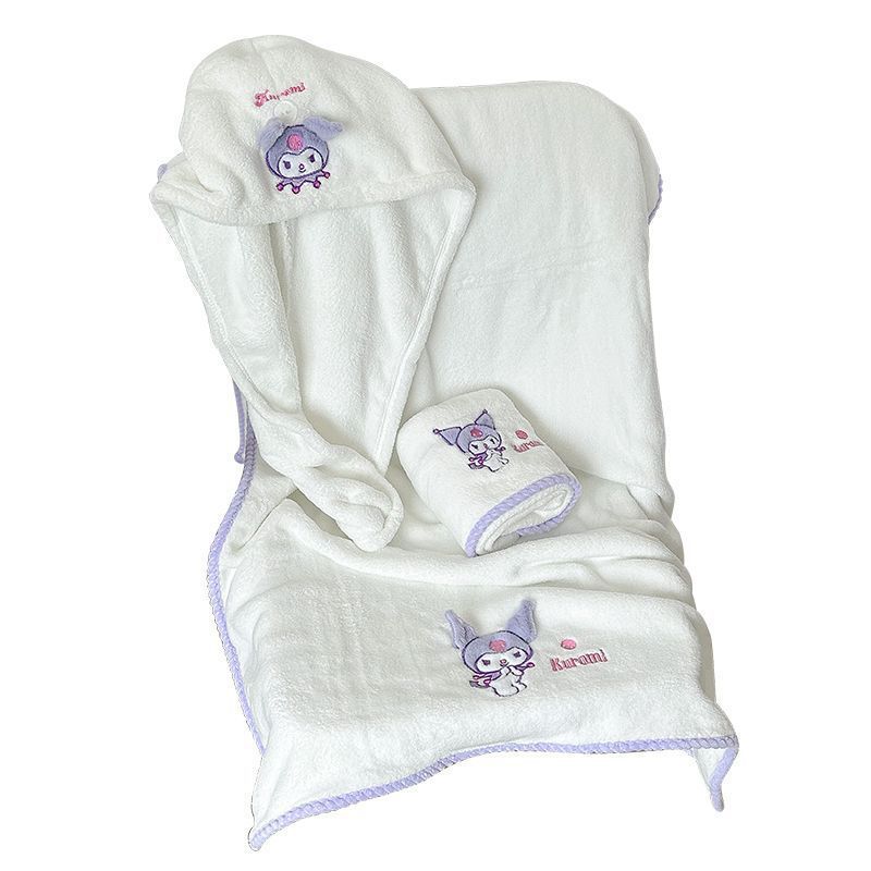 산리오 목욕 타월 도매 산호 벨벳 만화 프린트 타월 두꺼운 흡수성 보풀이 잘 안나는 가정용 헤어 드라이 캡 여성용