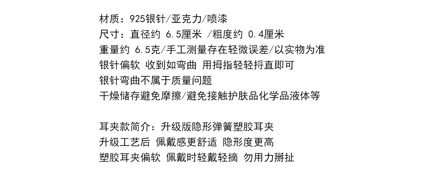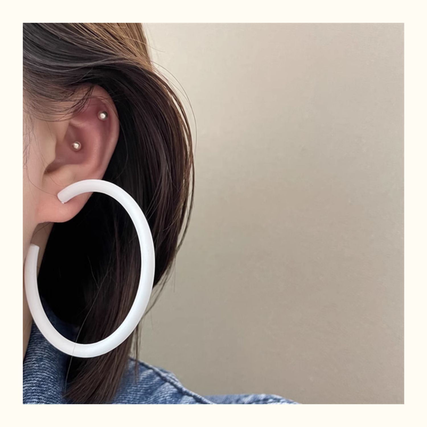 0602 귀 피어싱 없이 착용할 수 있는 흰색 초대형 C링 플라스틱 스프링 이어 클립