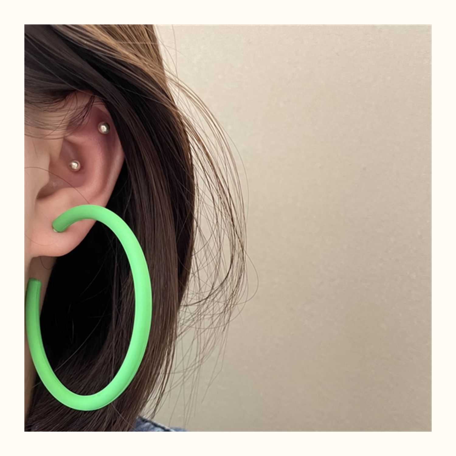 0602 귀를 뚫지 않은 형광 녹색 초대형 C-링 플라스틱 스프링 이어 클립