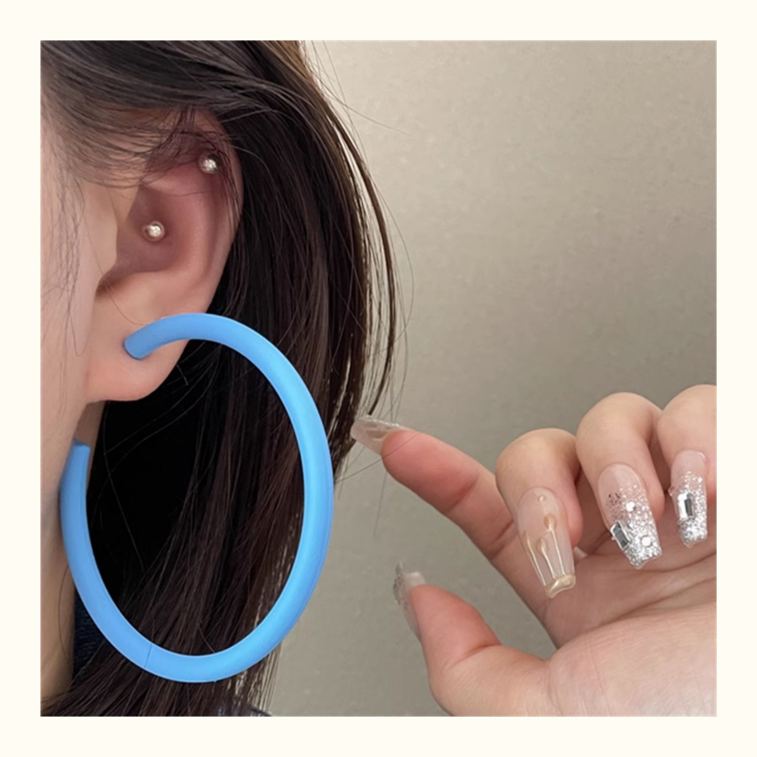 0602 블루 초대형 C링 플라스틱 스프링 이어 클립, 피어싱 없이 착용 가능