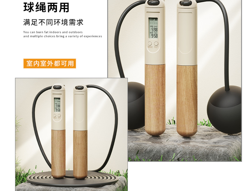 새로운 순수한 나무 손잡이 계산 밧줄 건너 뛰기 큰 공 긴 밧줄 이중 목적 훈련 건너 뛰기 로프 스포츠 용품