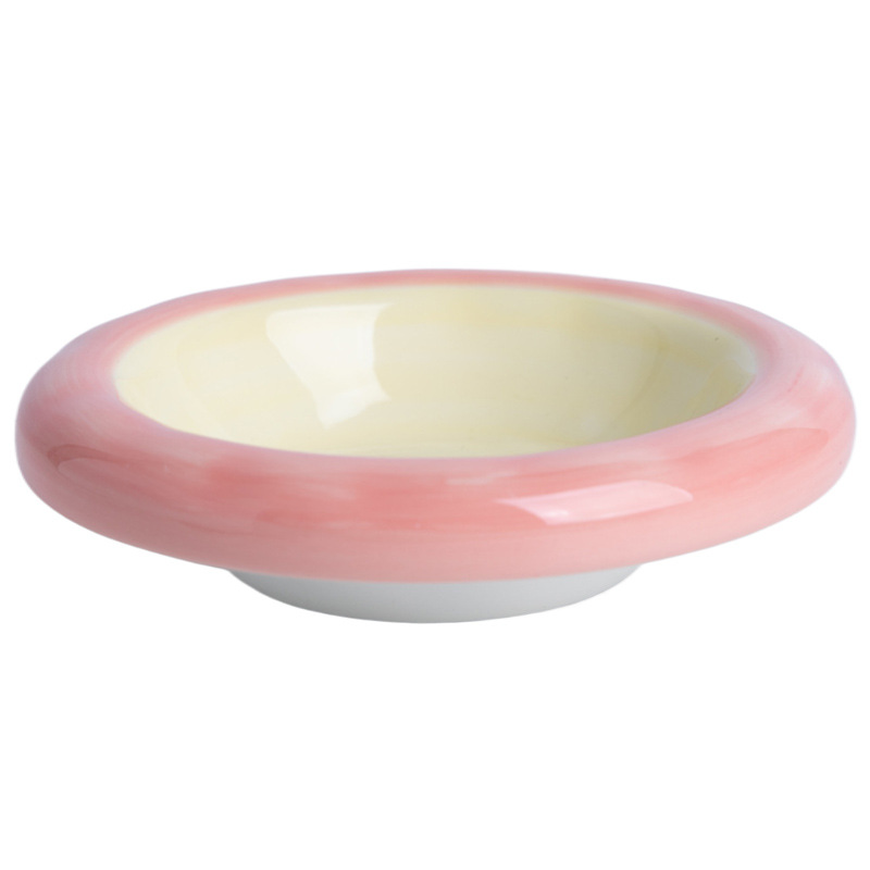 낙서 고양이 그릇 핑크와 옐로우