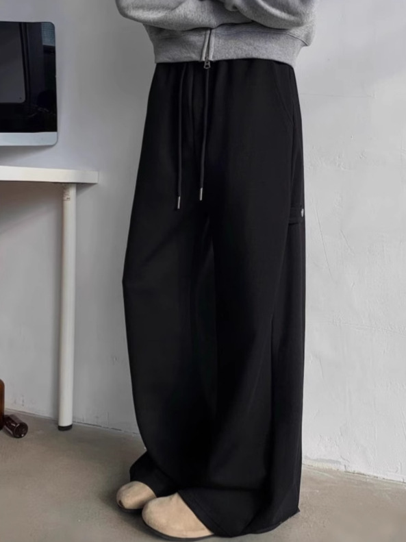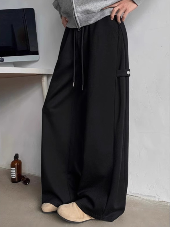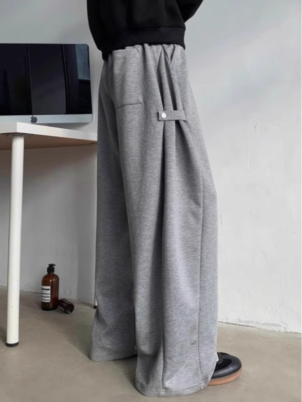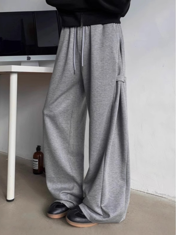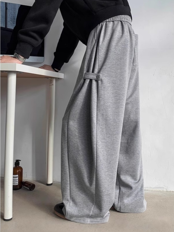 하이 엔드 센스 그레이 헤비 웨이트 와이드 레그 스포츠 바지 남성용 스트랩 디자인 센스 캐주얼 팬츠 루즈 딥 팬츠
