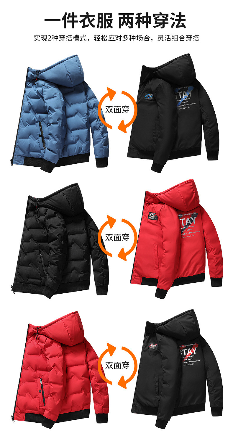 겨울 뉴 다운 재킷 남자 크로스 보더 후드 양면 재킷 화이트 덕 다운 편안한 따뜻한 두꺼운 재킷 탑