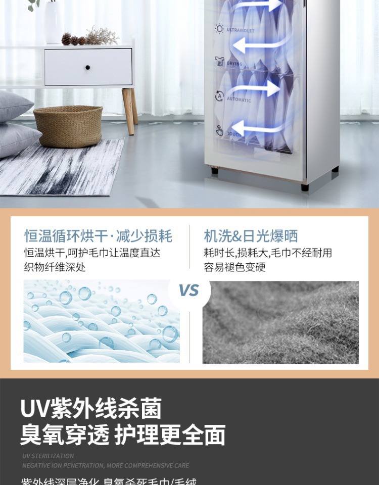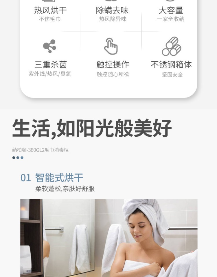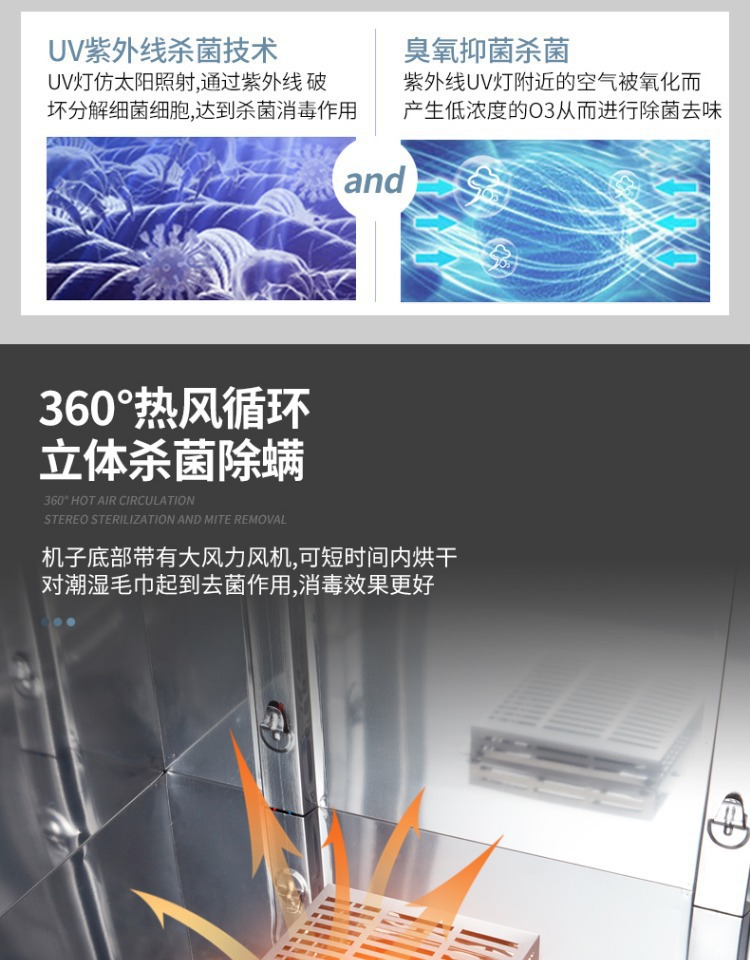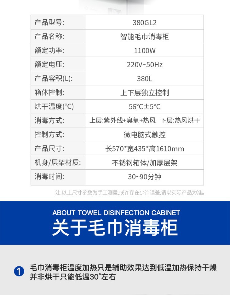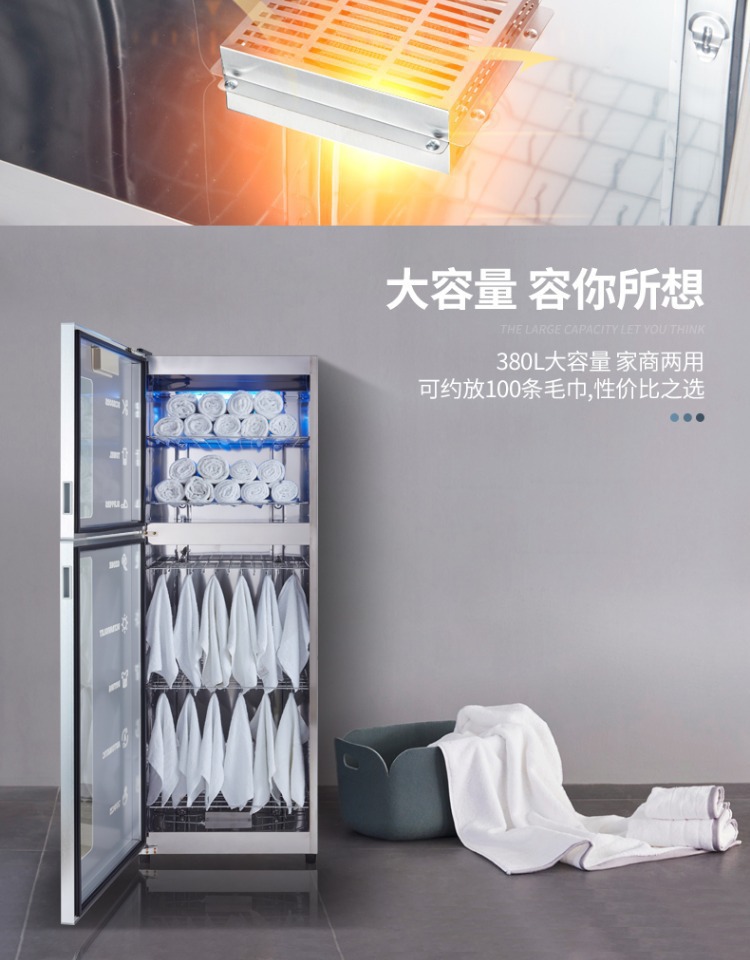 수건 소독 YTP380-GL2 오존 + 열풍 건조 + 상부 소독 및 하부 건조 건조 온도 70도 - 공식 표준 구성