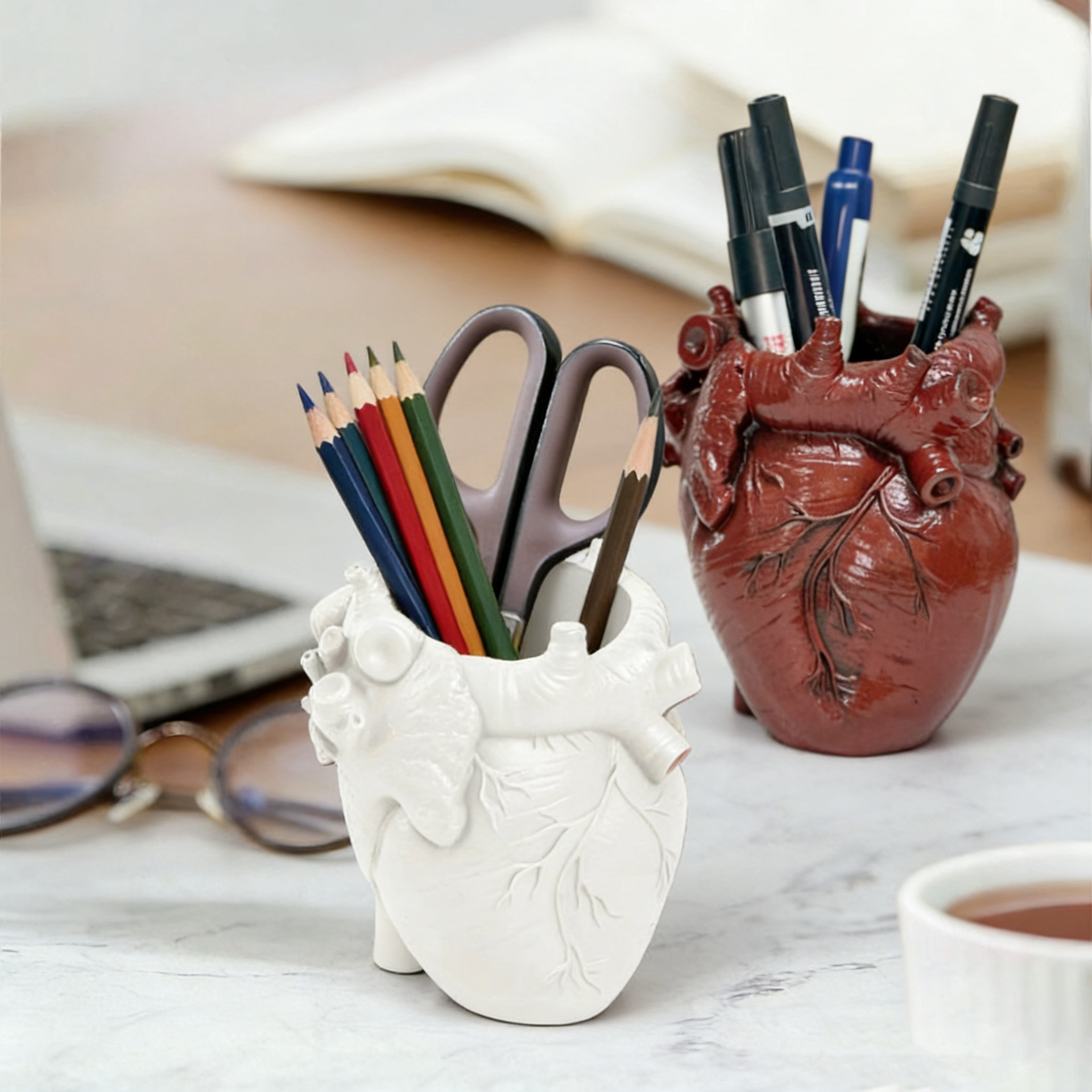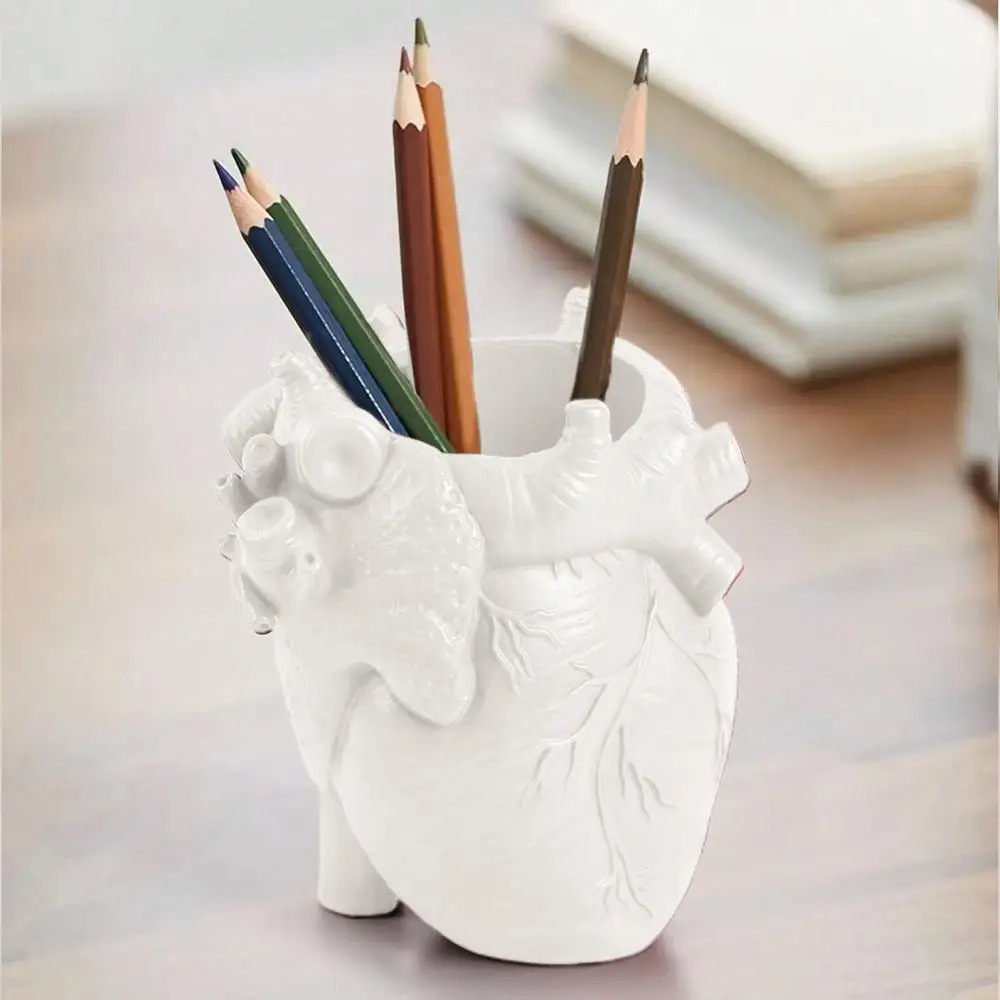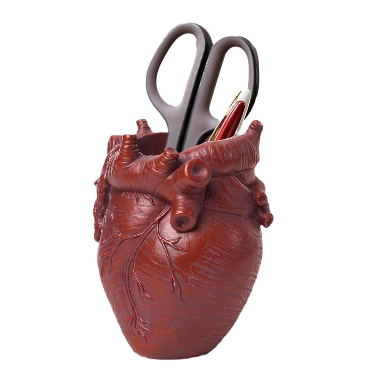 새로운 국경 시뮬레이션 하트 펜 컨테이너 수지 장식품 홈 데스크탑 창조적 인 장식 선물 좋은
