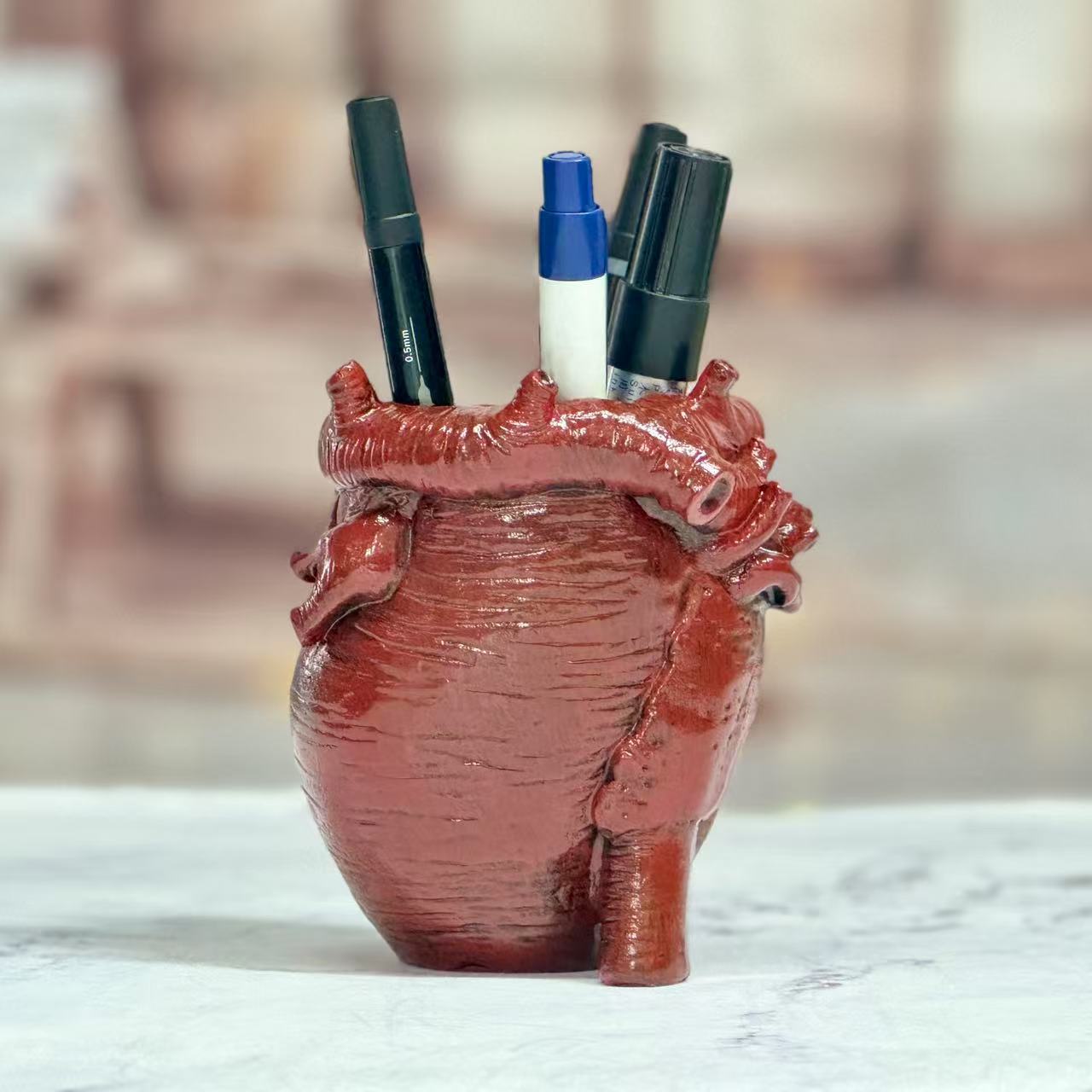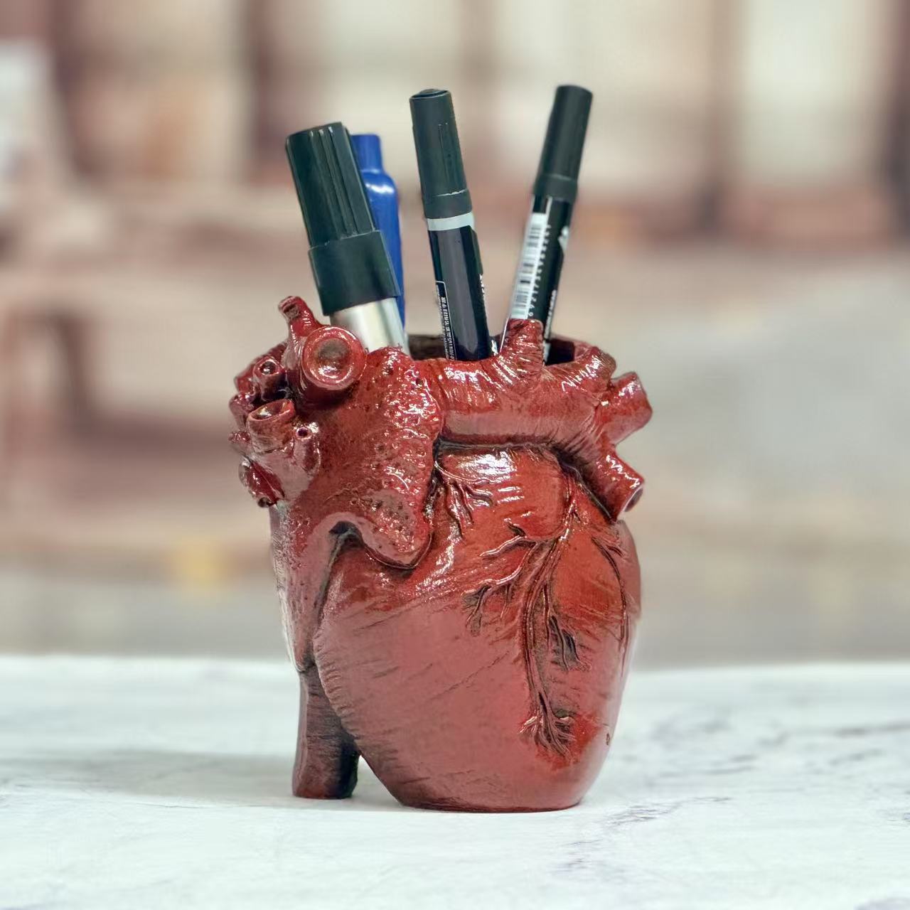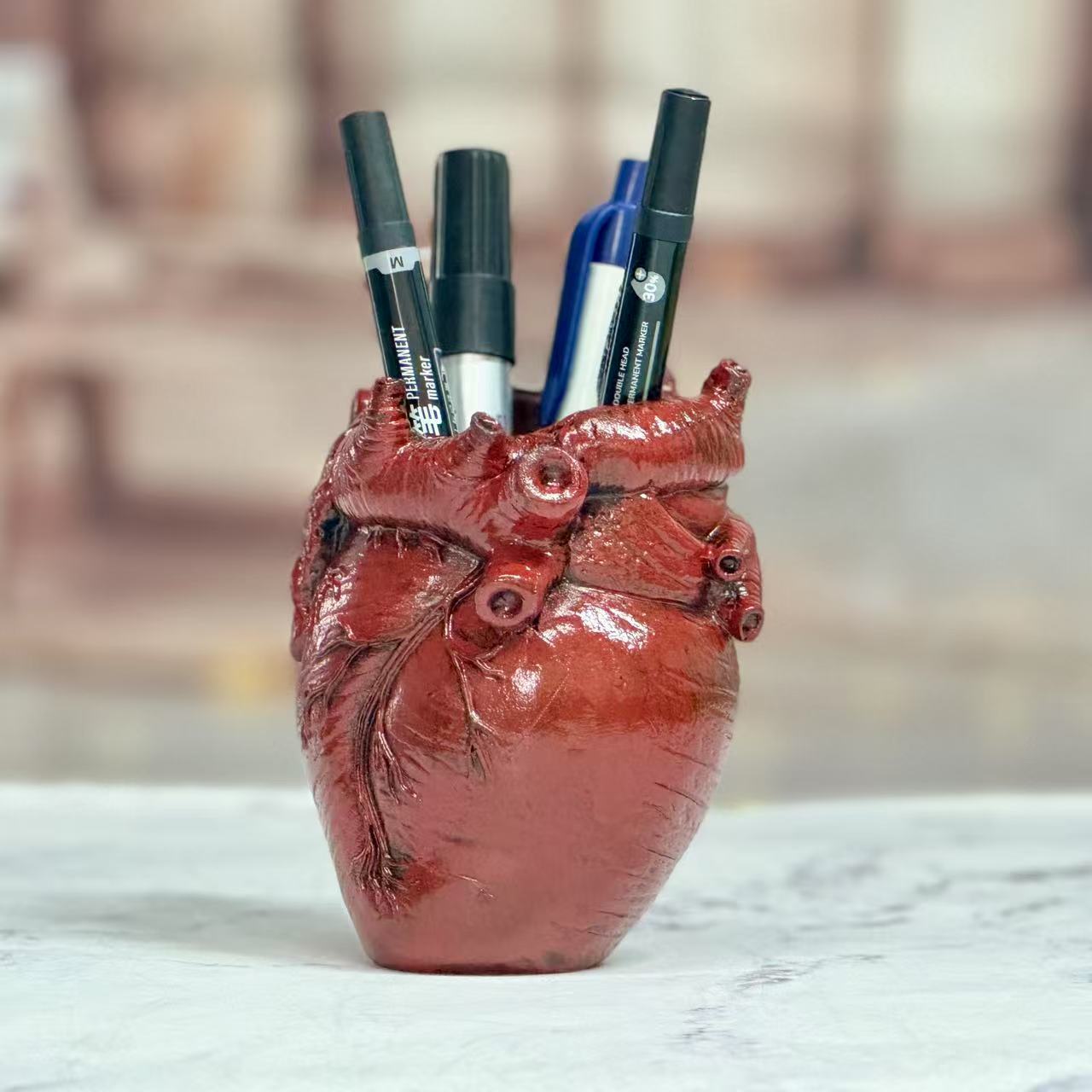 새로운 국경 시뮬레이션 하트 펜 컨테이너 수지 장식품 홈 데스크탑 창조적 인 장식 선물 좋은