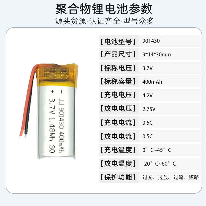 폴리머 리튬 배터리 901430 3.7V 400mAh 미용 기기 애완 동물 용품 블루투스 헤드셋 소프트 팩 배터리
