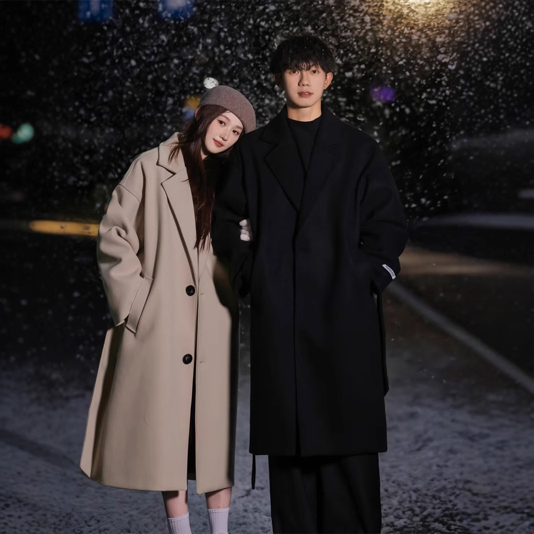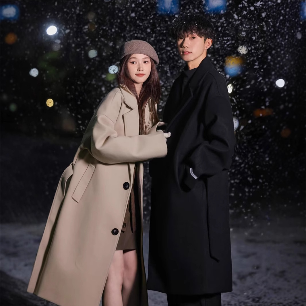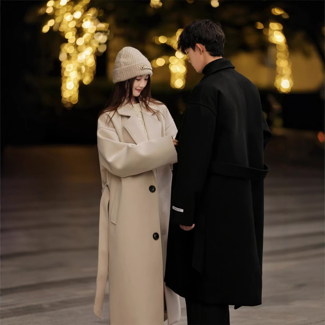 가을과 겨울 고급 울 코트 남자 중간 길이의 윈드 브레이커 비 양면 양모 캐시미어 코트 무릎 길이 울 코트