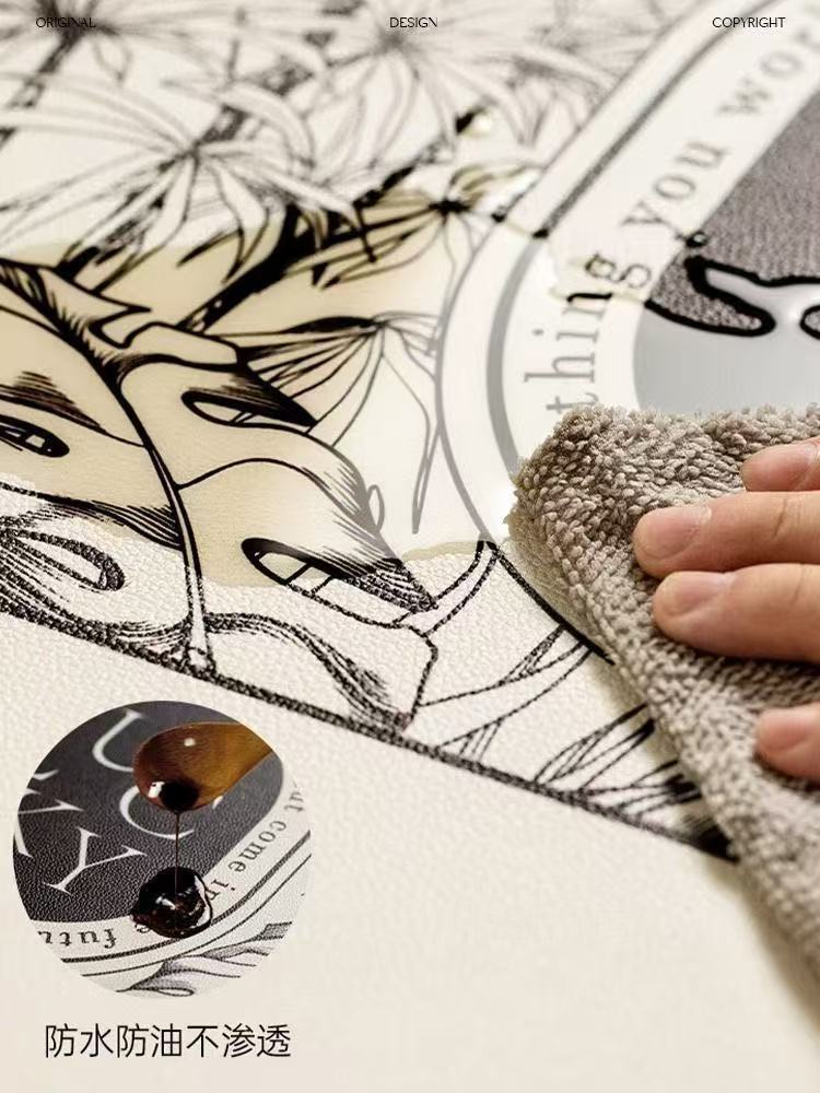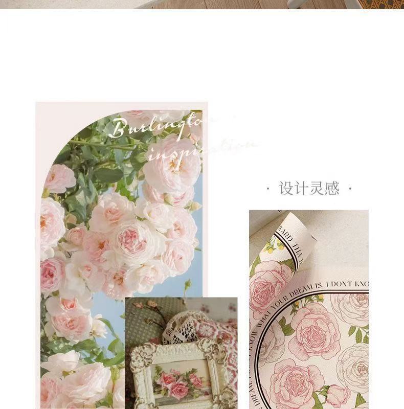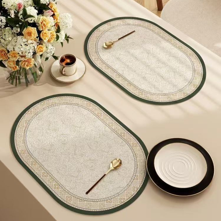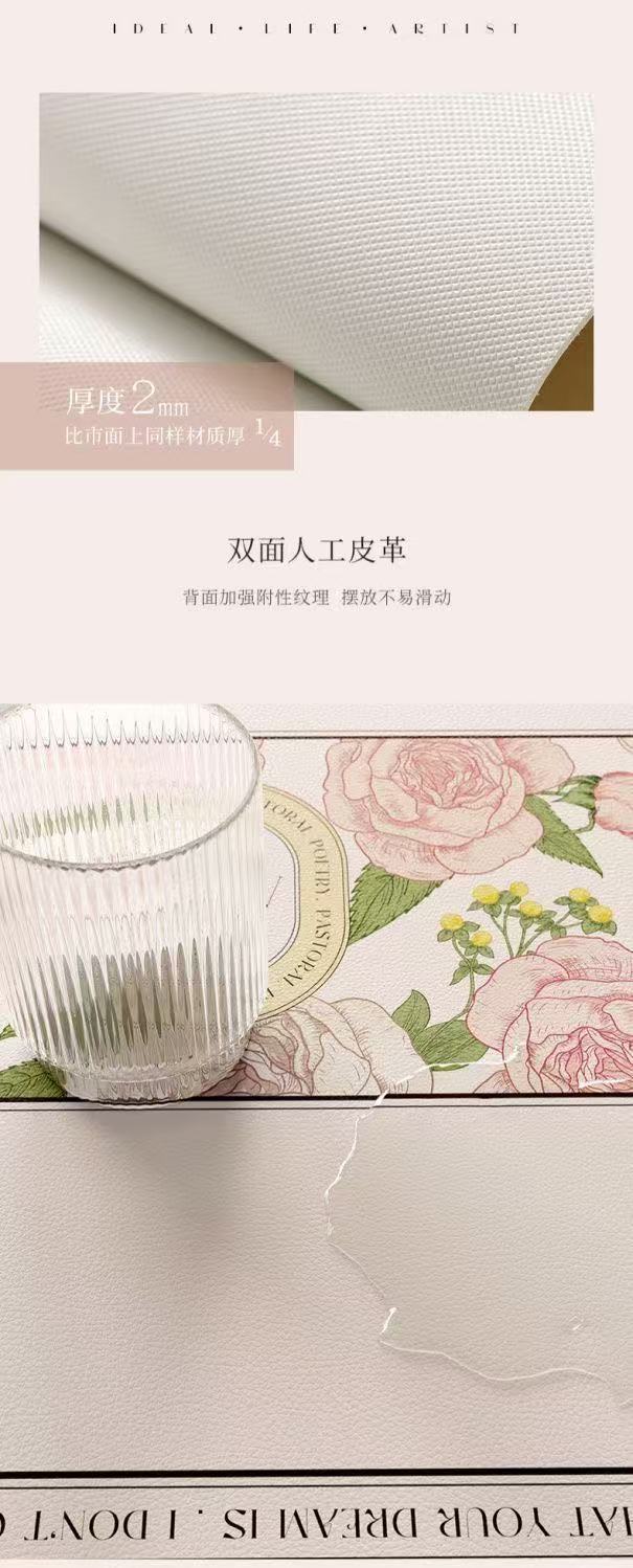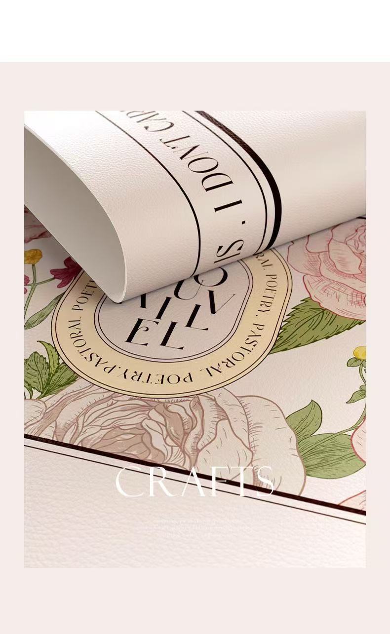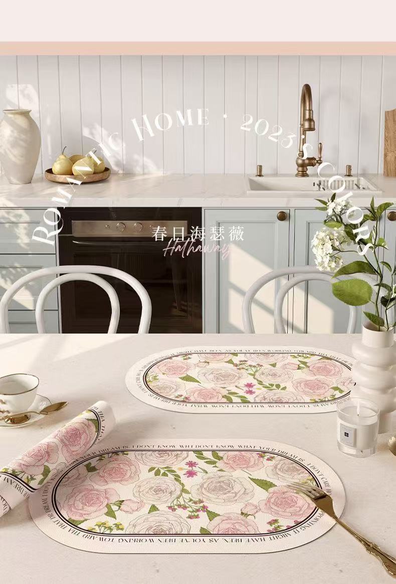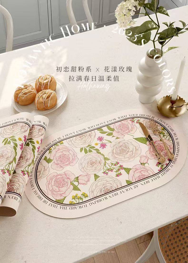 핑크와 화이트 로즈 고온 방지 테이블 매트, 고급스러운 서양식 식탁 매트, 가죽 식사 단열 매트, 방수 및 방유 그릇 매트