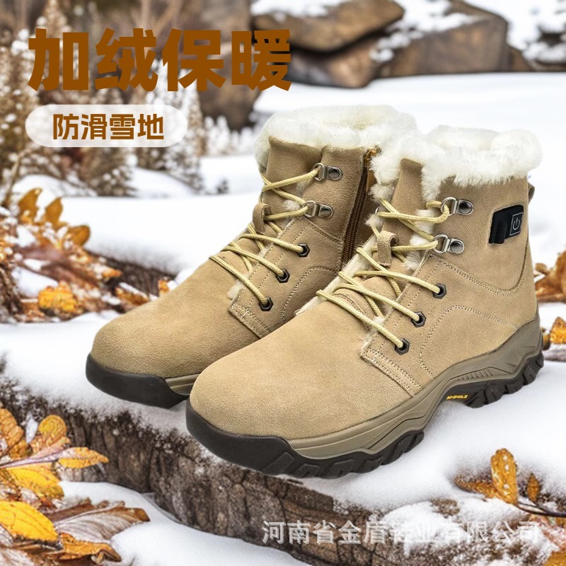 충전식 발열 기능이 있는 남성용 스노우 부츠, 지퍼형, 동북산 양모, 대형 솜부츠, 겨울용 남성 신발, 보온 및 방한