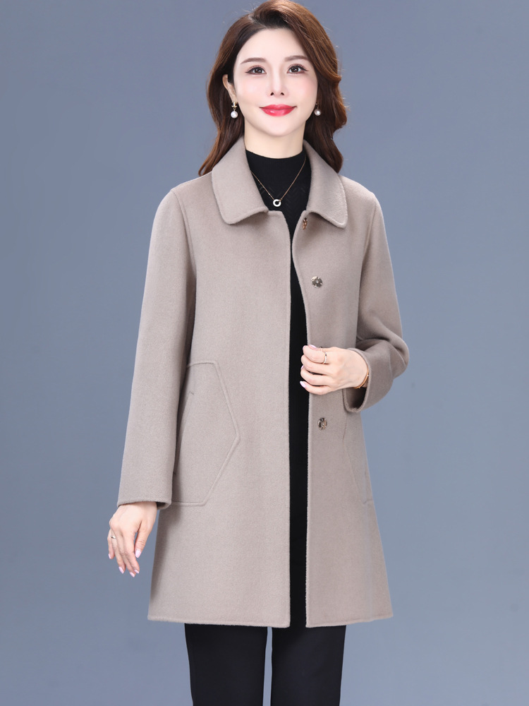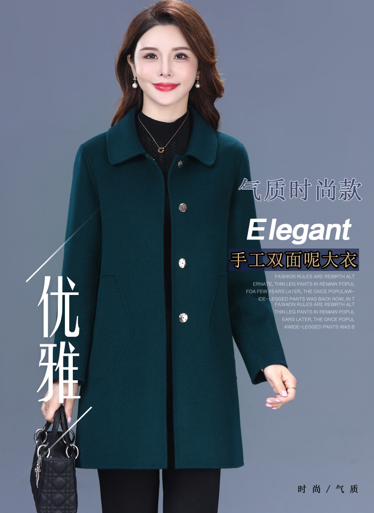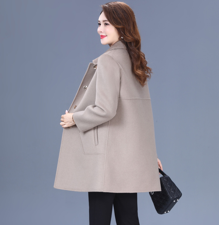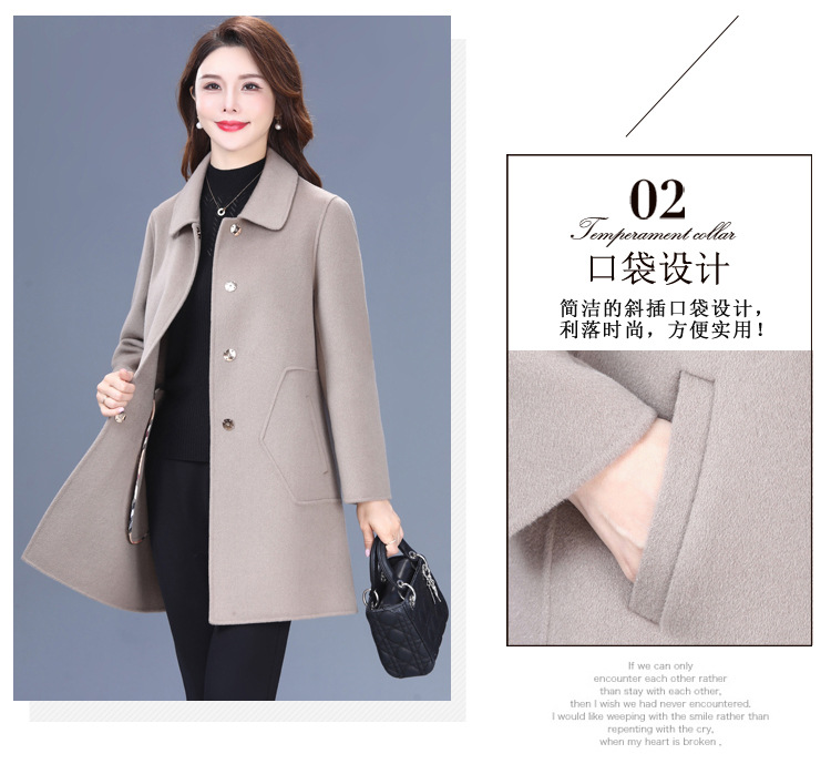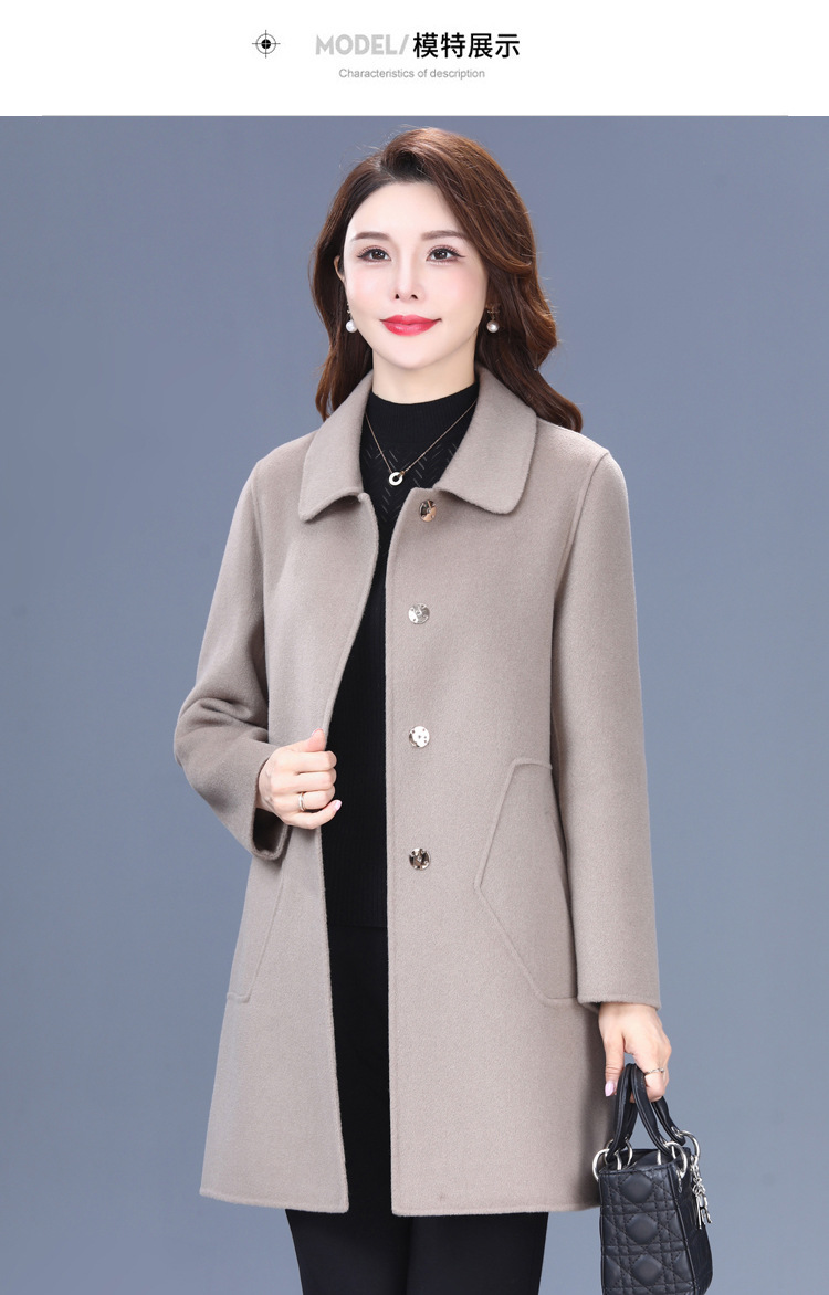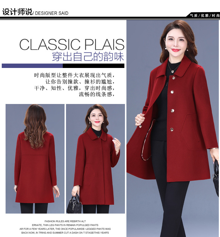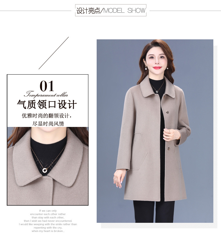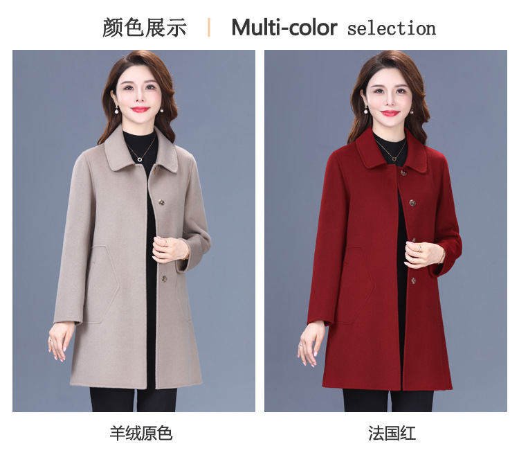 엄마복 가을과 겨울 새 양면 양모 캐시미어 코트 유행 중년 · 노인 여성복 중장 양모 코트