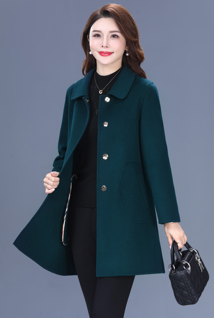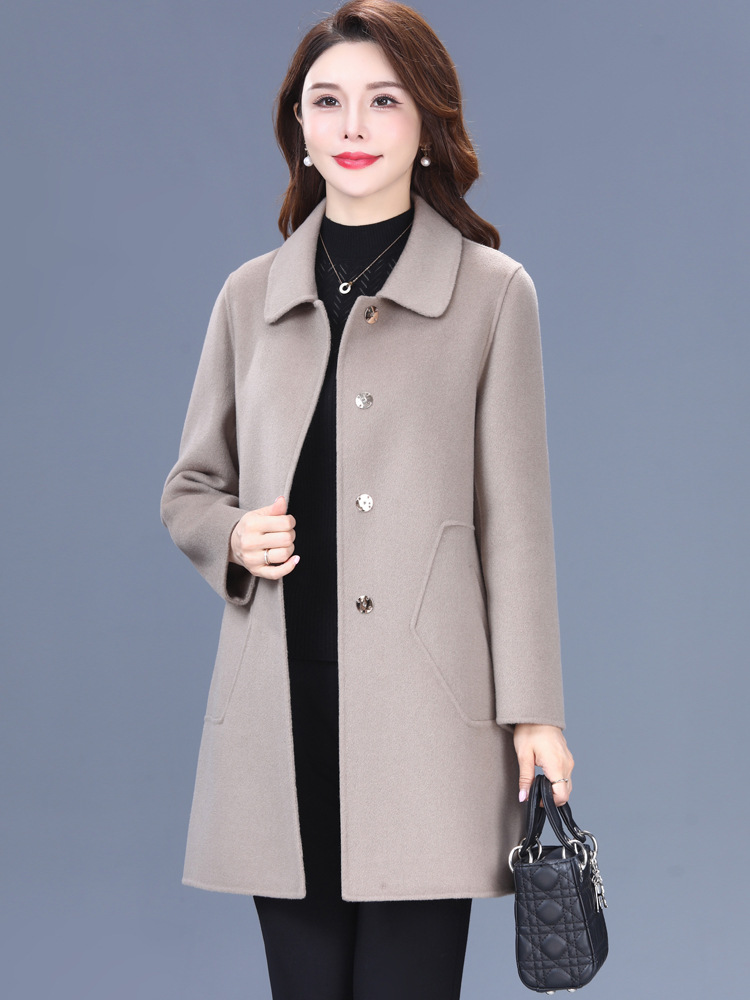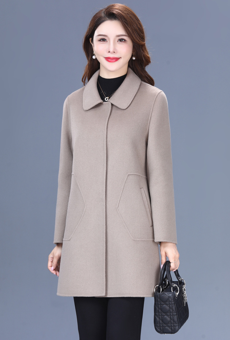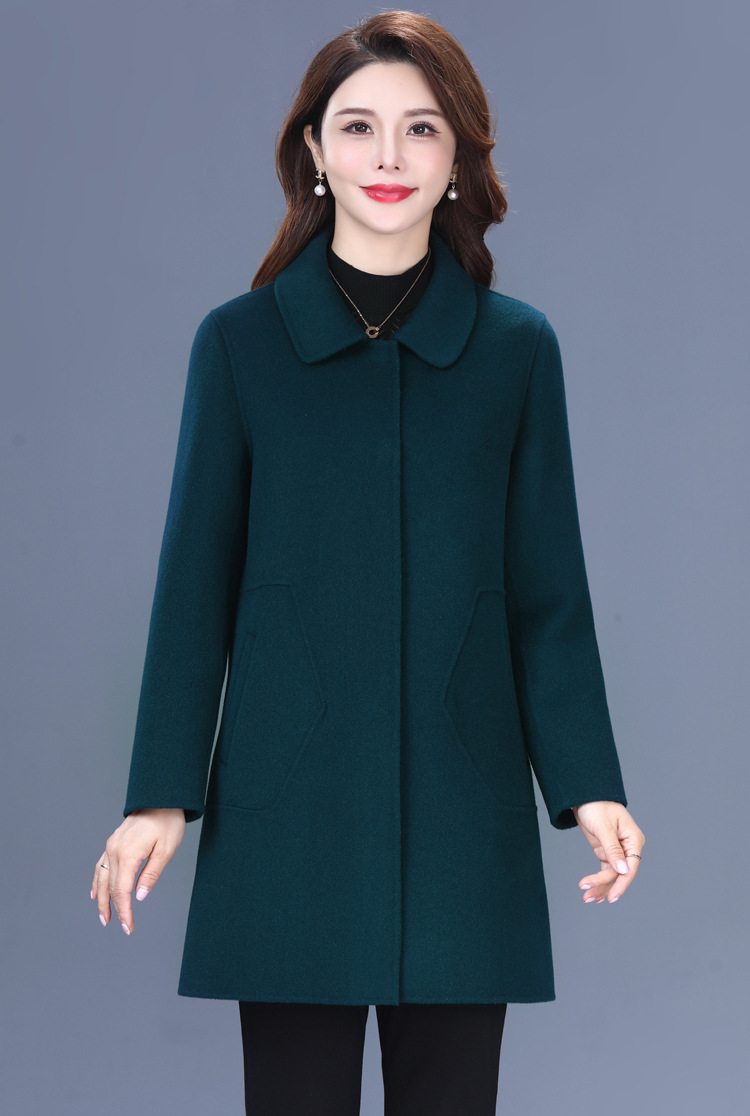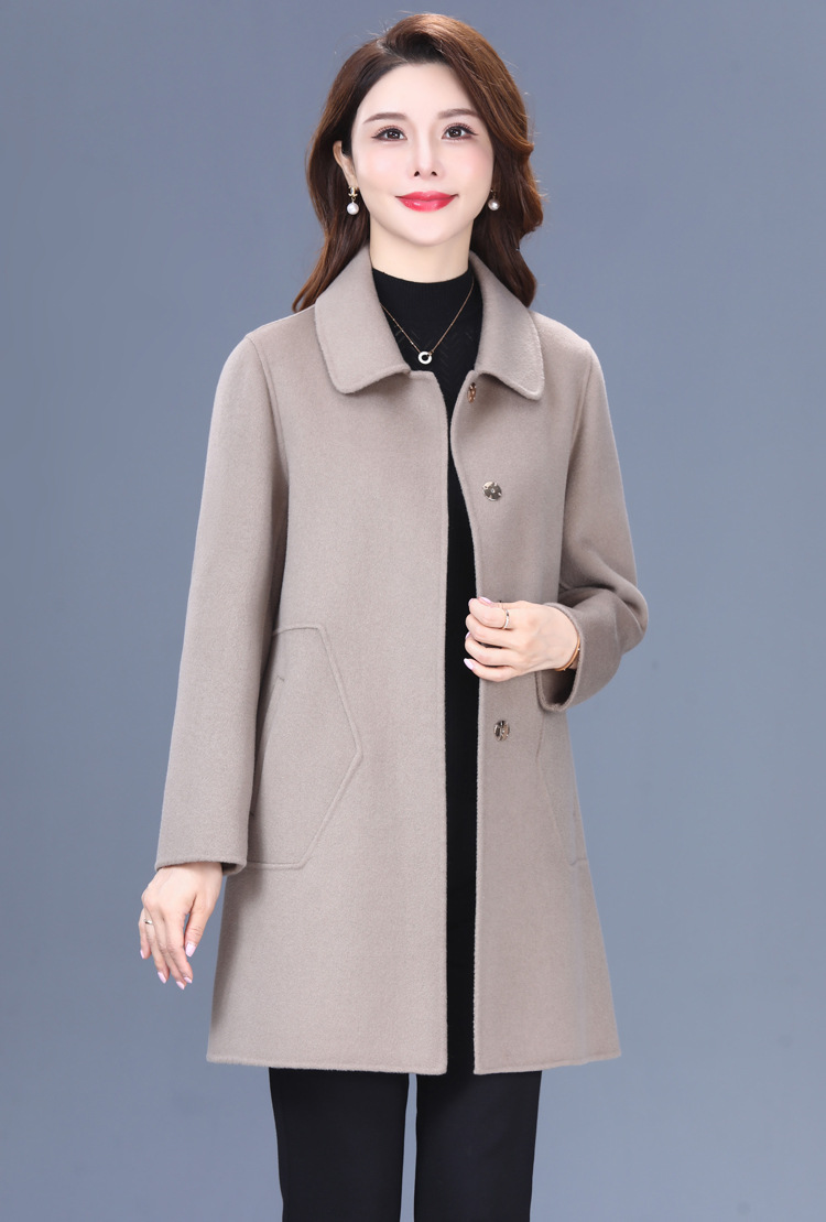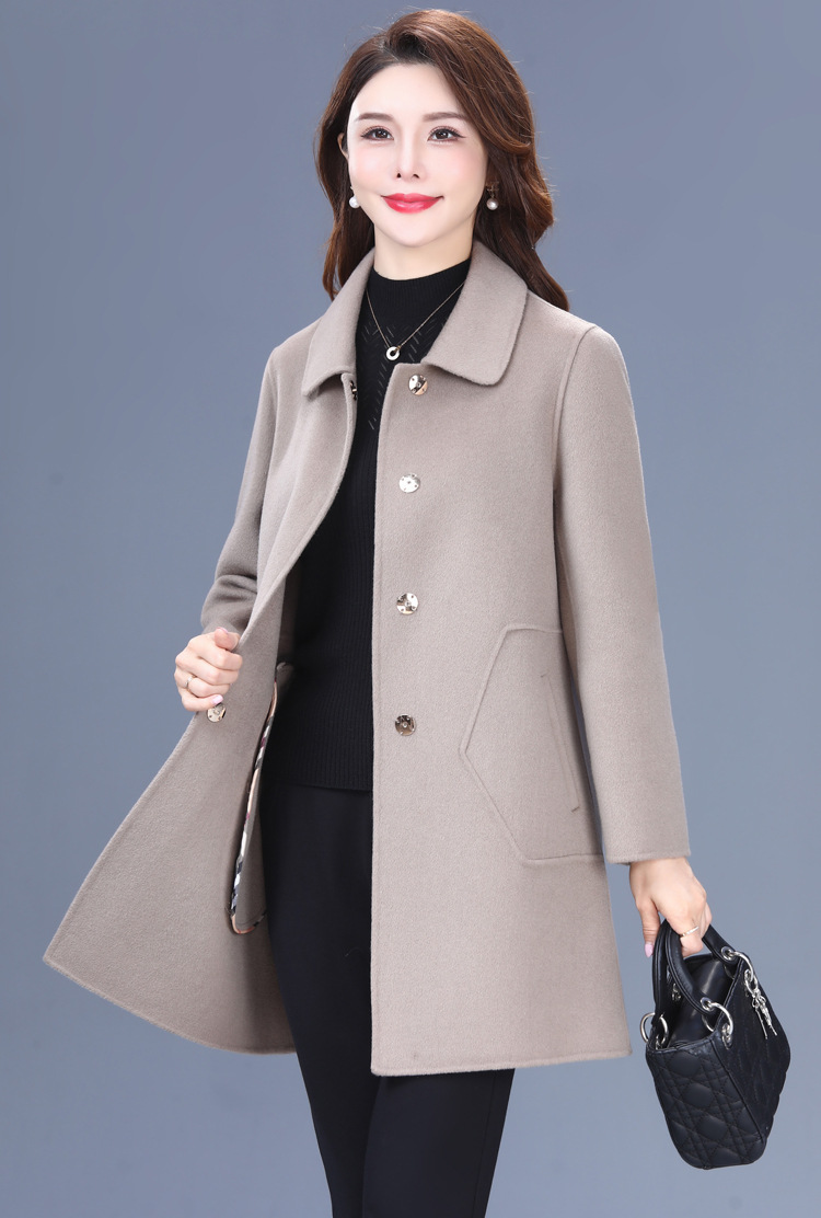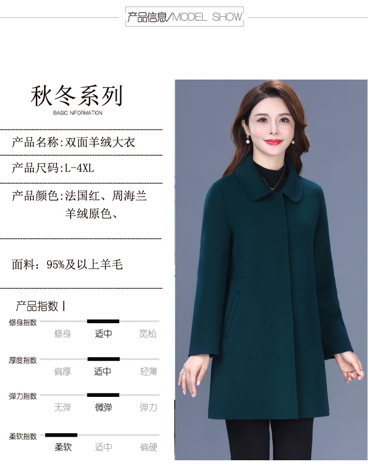 엄마복 가을과 겨울 새 양면 양모 캐시미어 코트 유행 중년 · 노인 여성복 중장 양모 코트