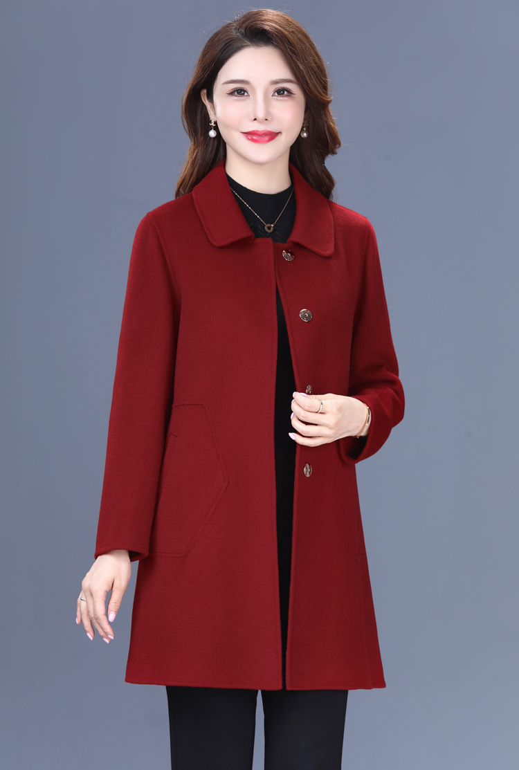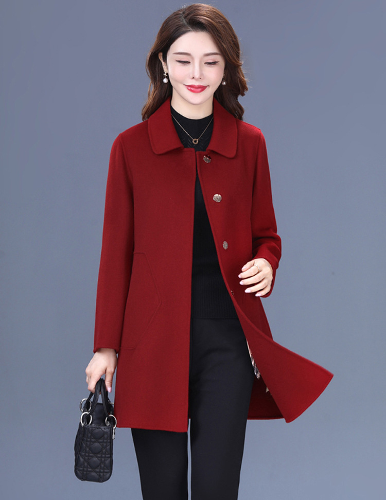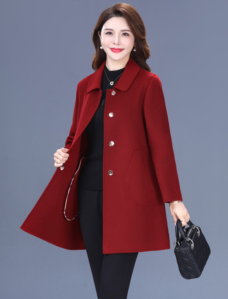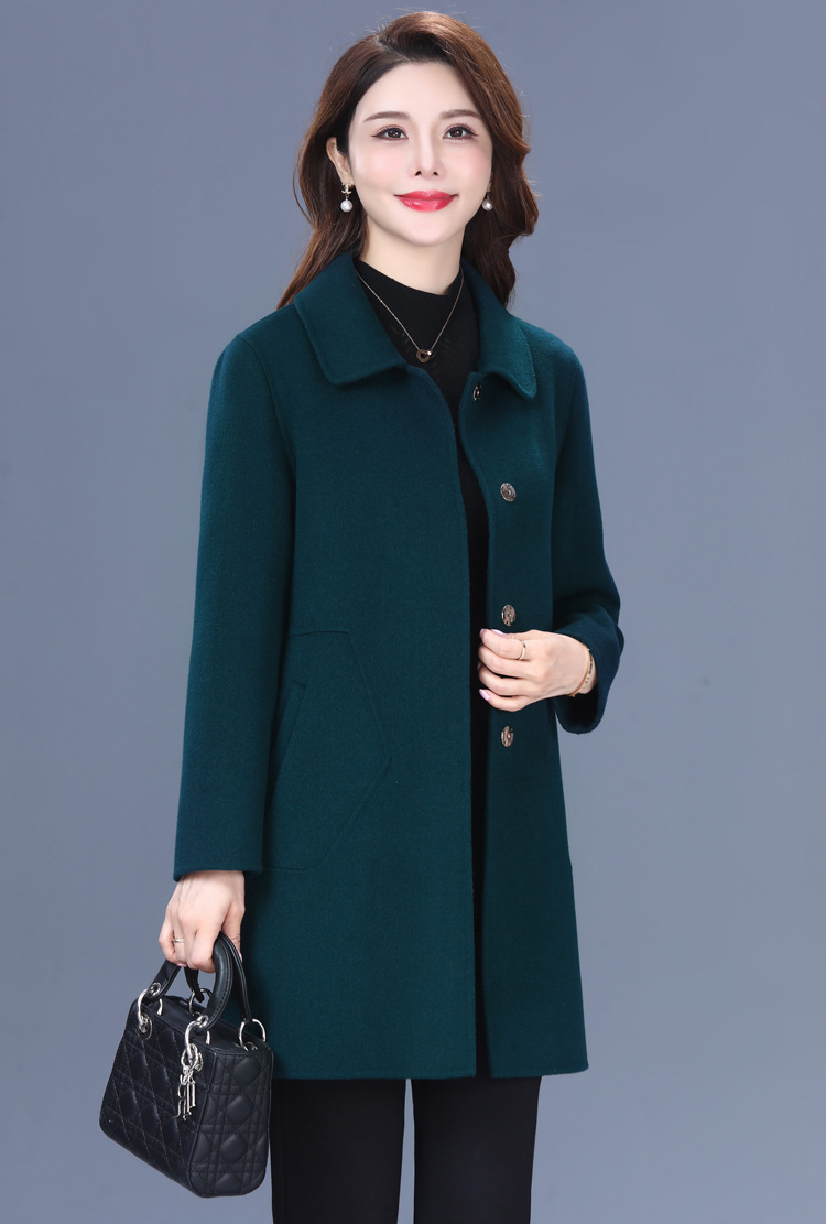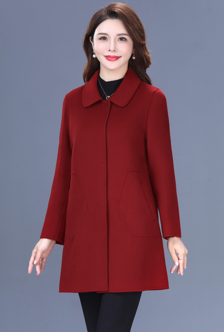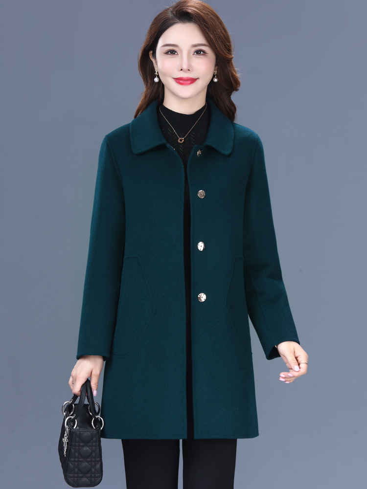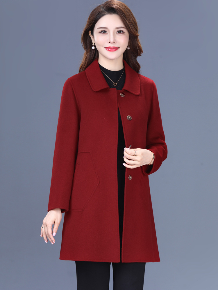 엄마복 가을과 겨울 새 양면 양모 캐시미어 코트 유행 중년 · 노인 여성복 중장 양모 코트