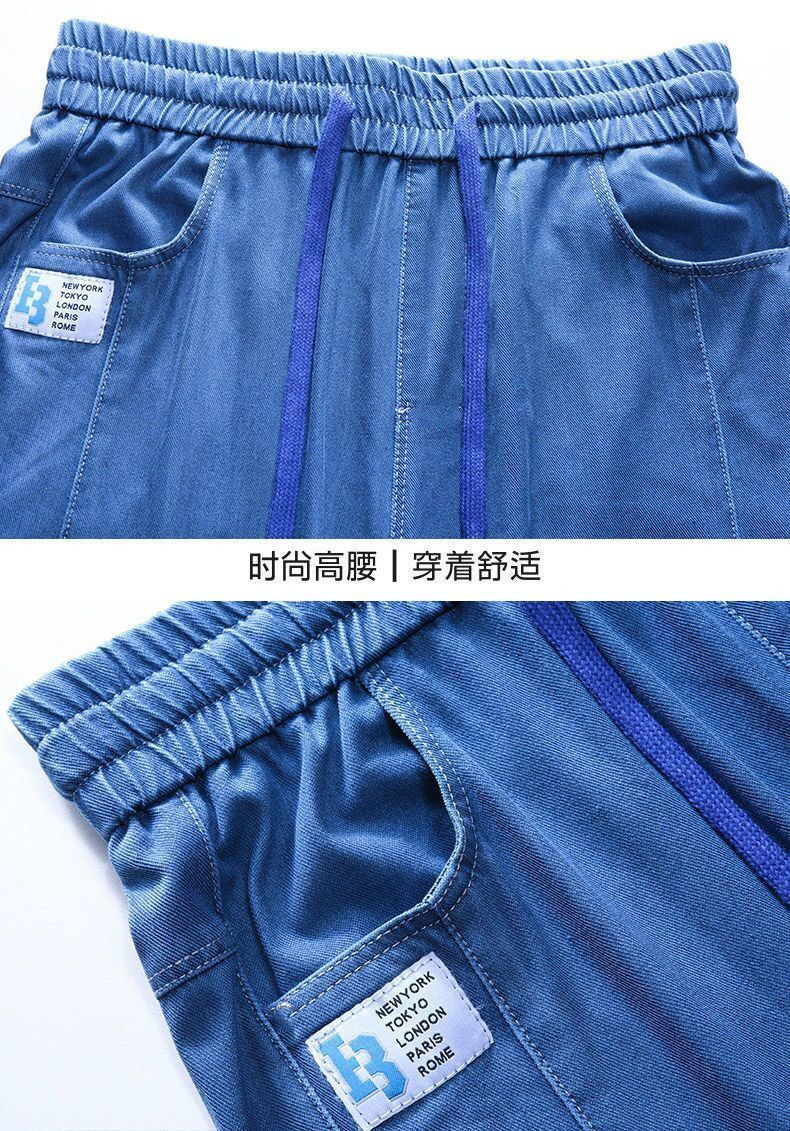 아이스 실크 청바지 여성의 높은 허리 스트레치 소프트 청바지 여름 엄마 탄성 허리 스키니 바지 중년 및 노인 대형 바지