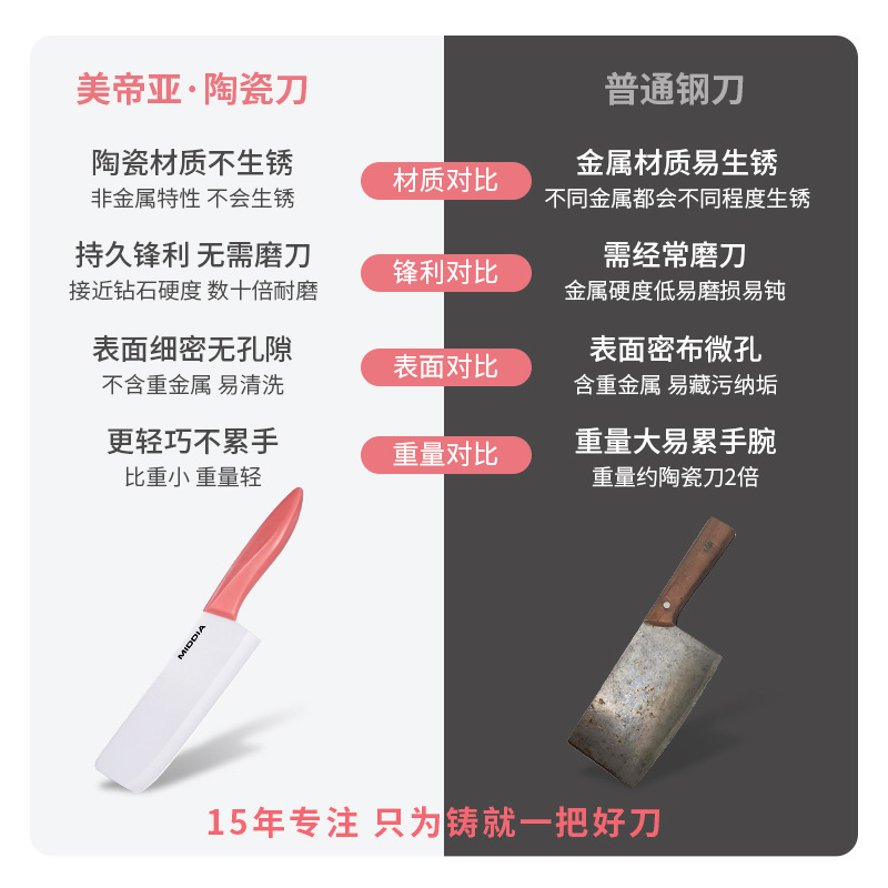 미디어 Zhihui 6 인치 세라믹 칼 가정용 주방 주방 중국 스타일 여성 절단 야채와 고기 절단 칼 보조 식품 칼