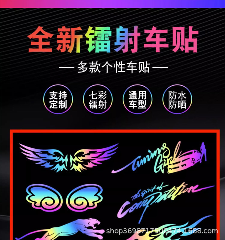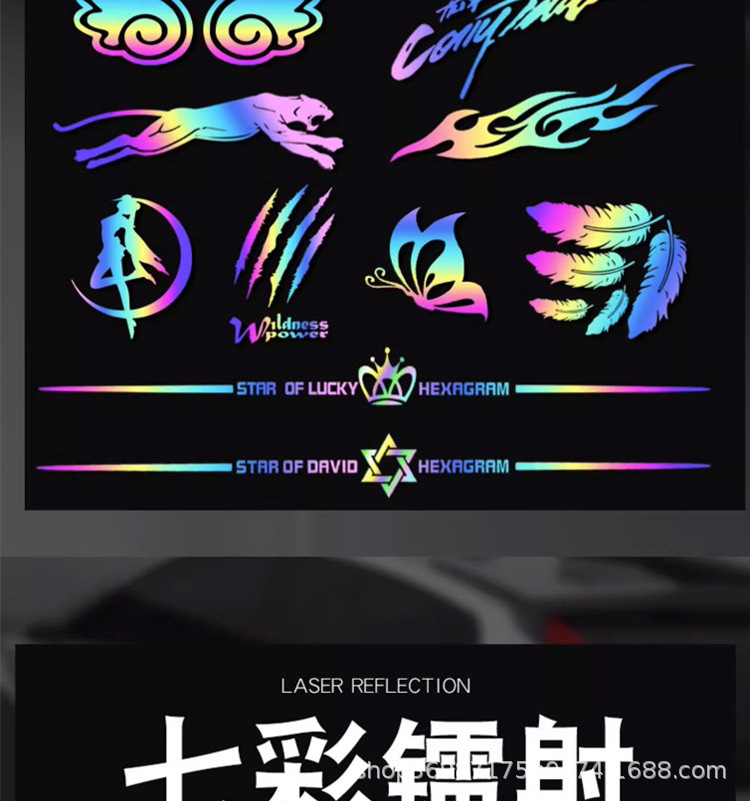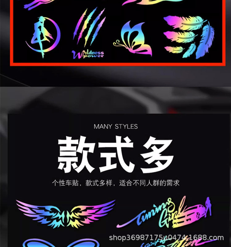다채로운 레이저 자동차 스티커 차단기 스크래치 전기 자동차 스티커 그림 오토바이 꼬리 상자 데칼 방수 태양 보호
