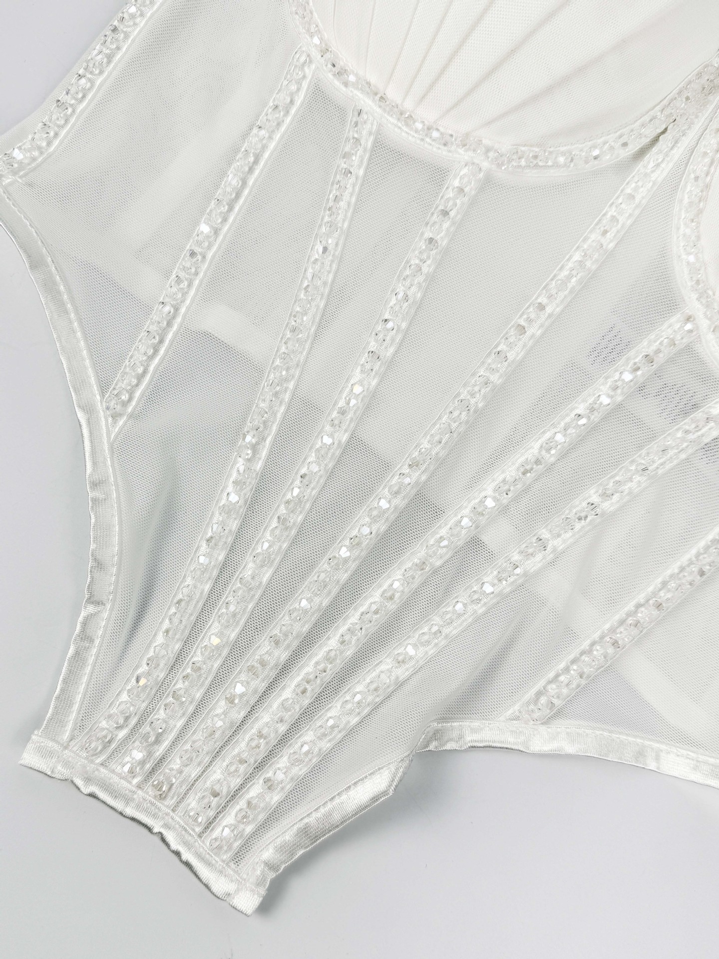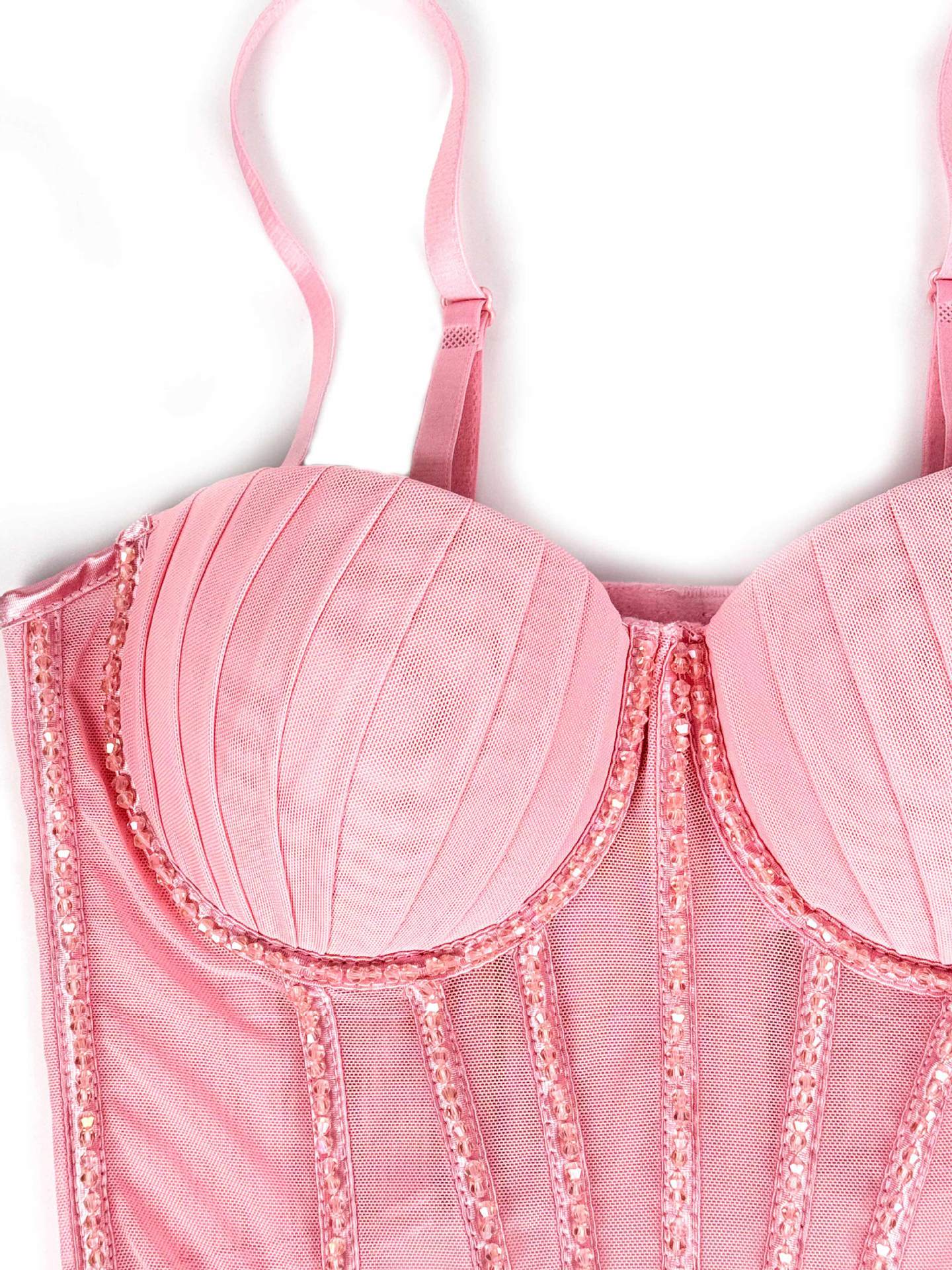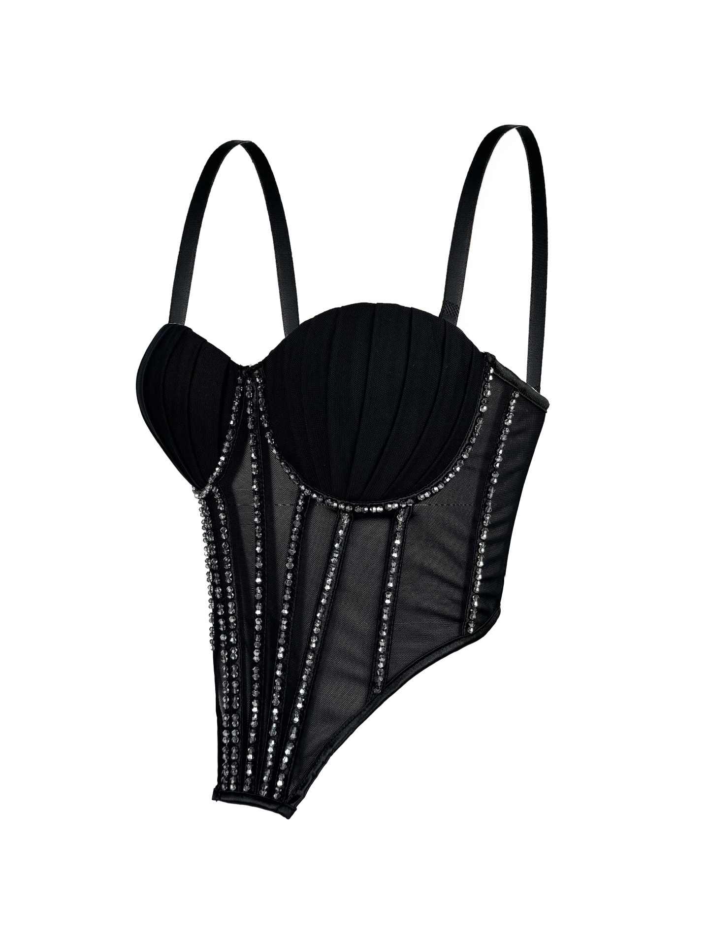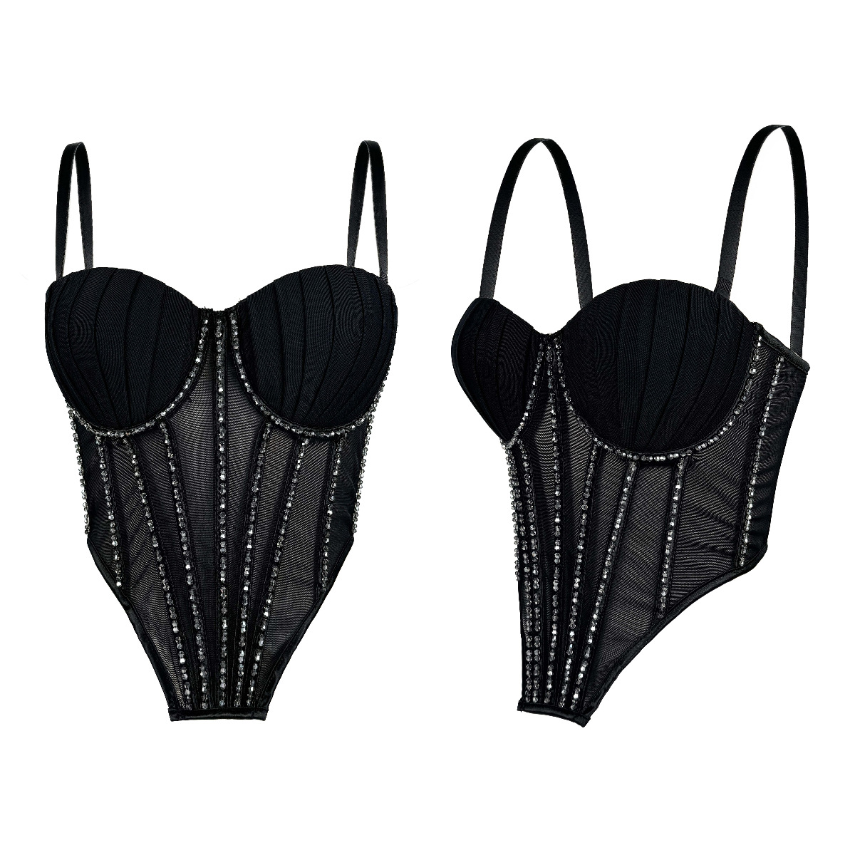유럽과 미국의 폭발 섹시한 메쉬 슬링 내부 조끼 가슴 패드 외부 착용 플래시 다이아몬드 어본 플라스틱 브래지어