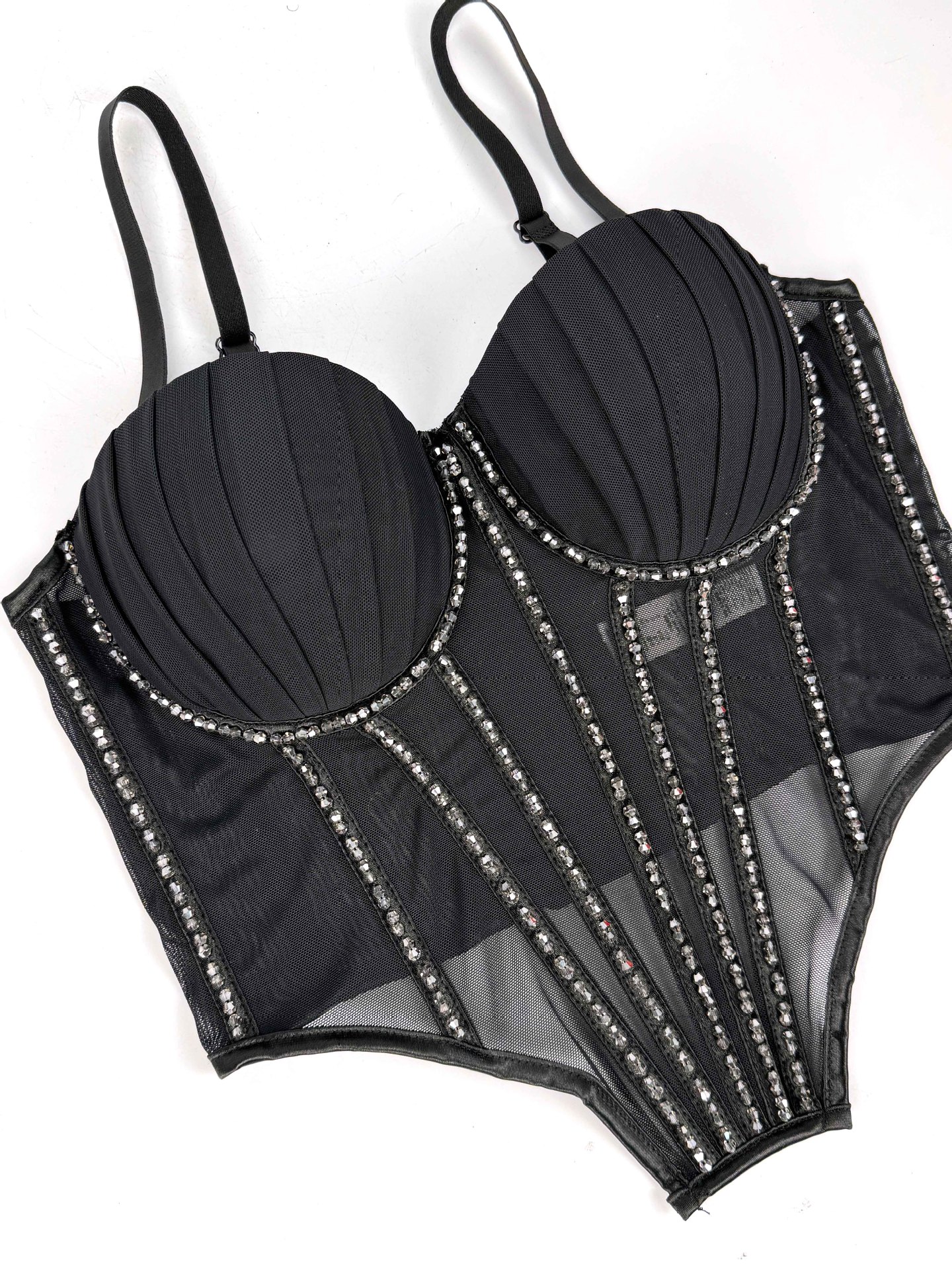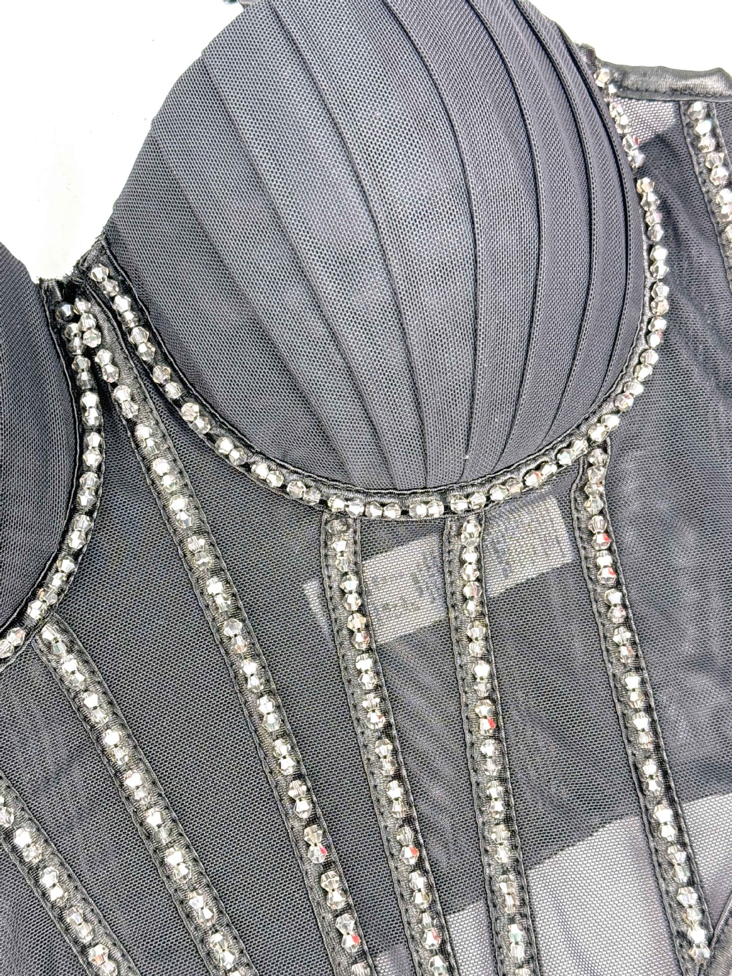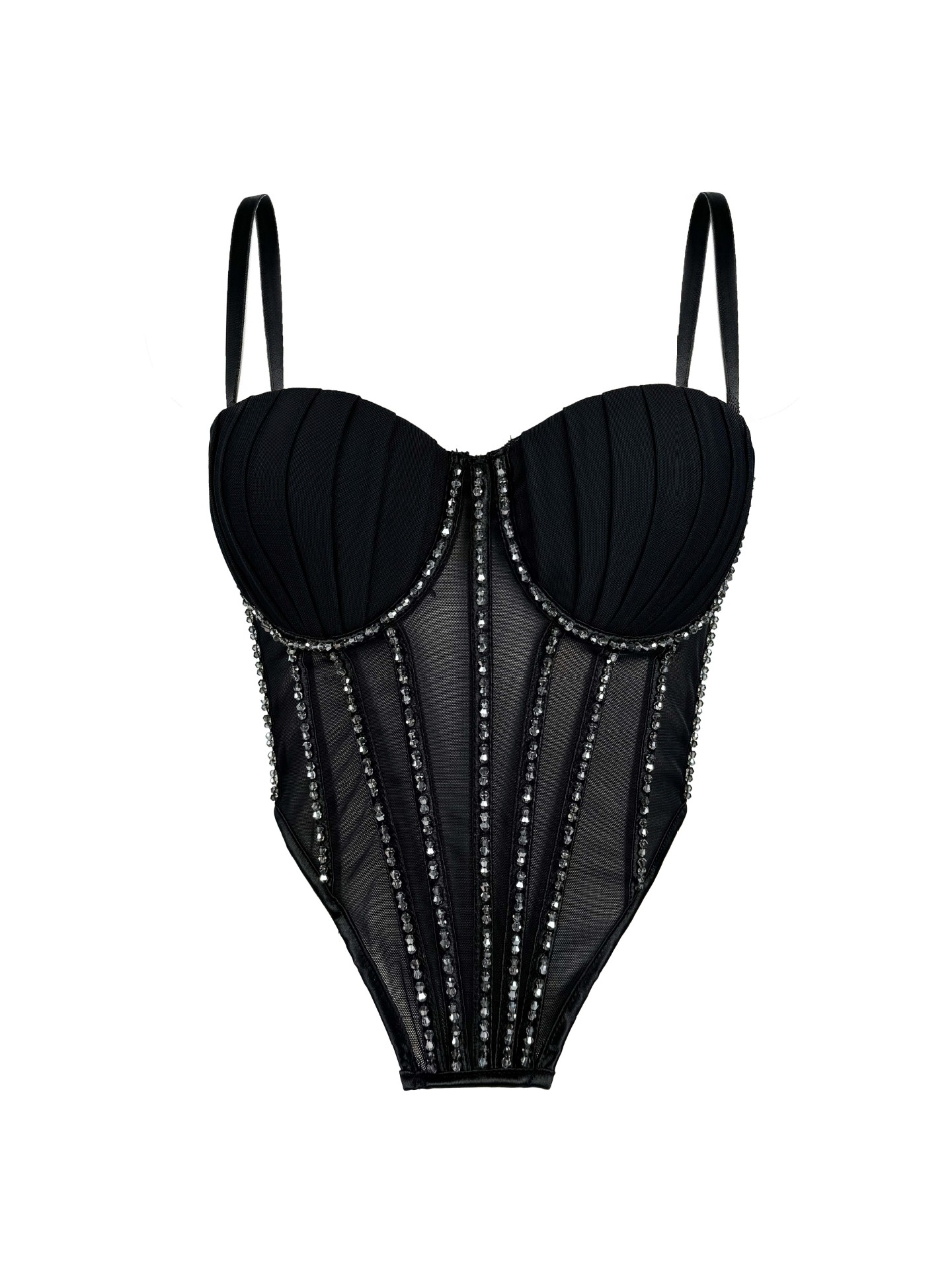 유럽과 미국의 폭발 섹시한 메쉬 슬링 내부 조끼 가슴 패드 외부 착용 플래시 다이아몬드 어본 플라스틱 브래지어