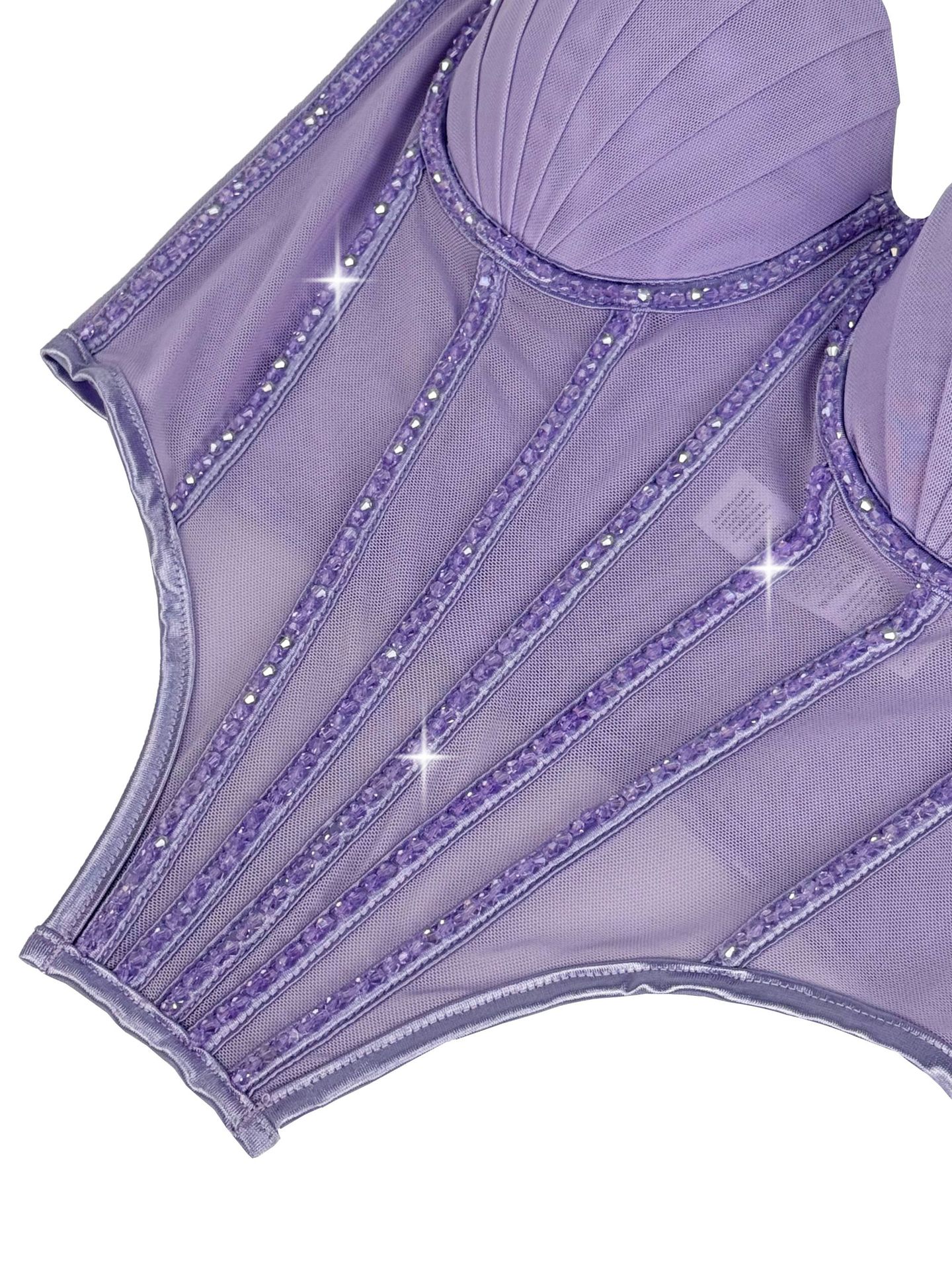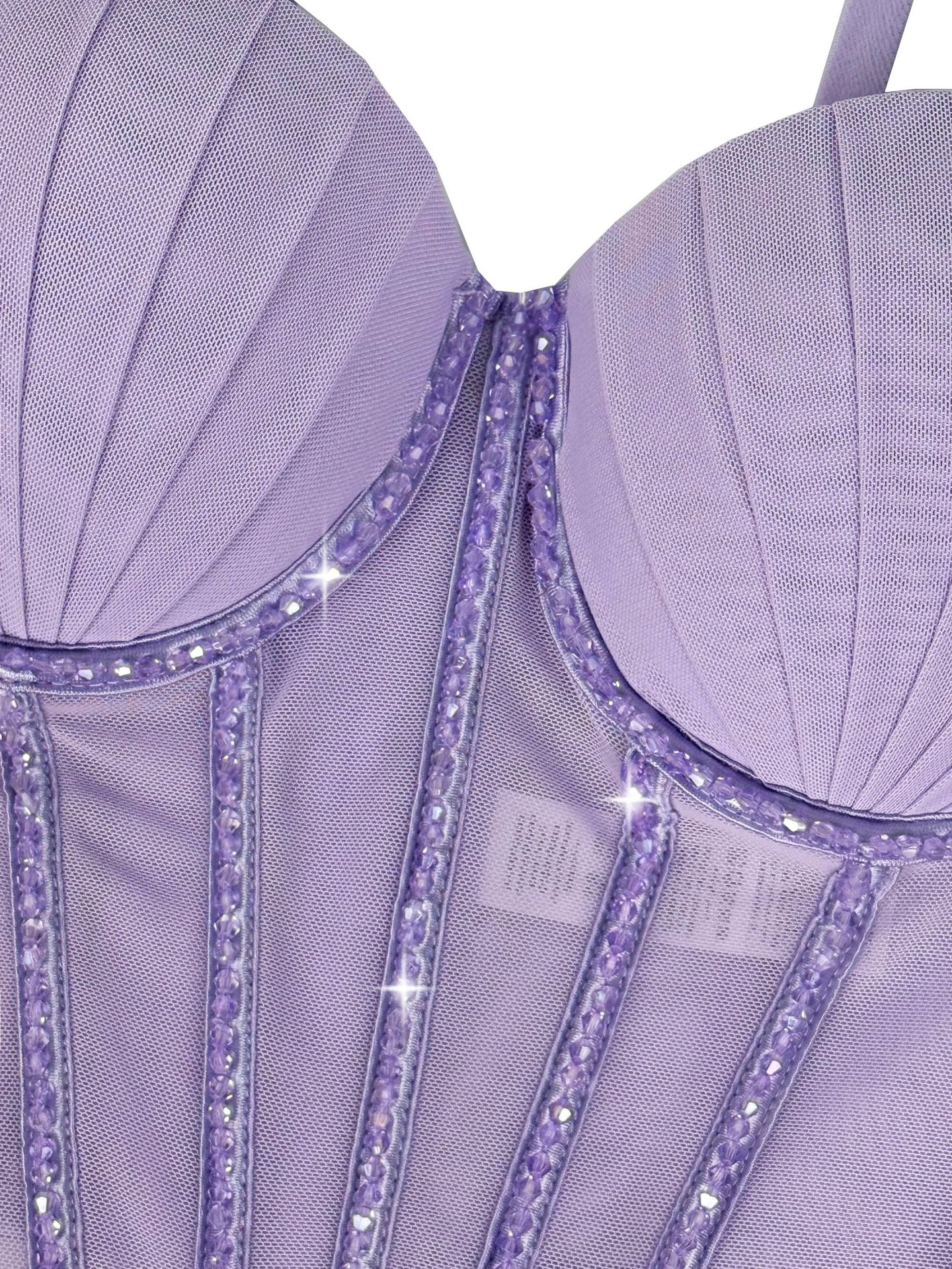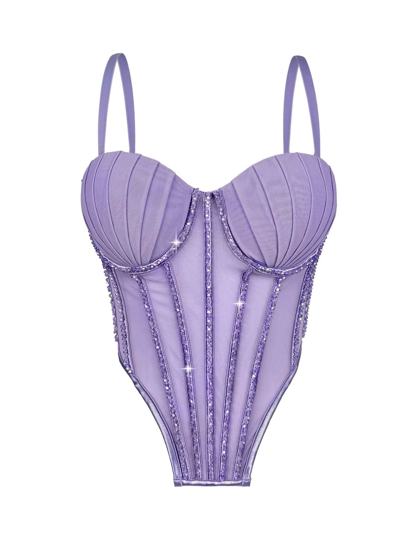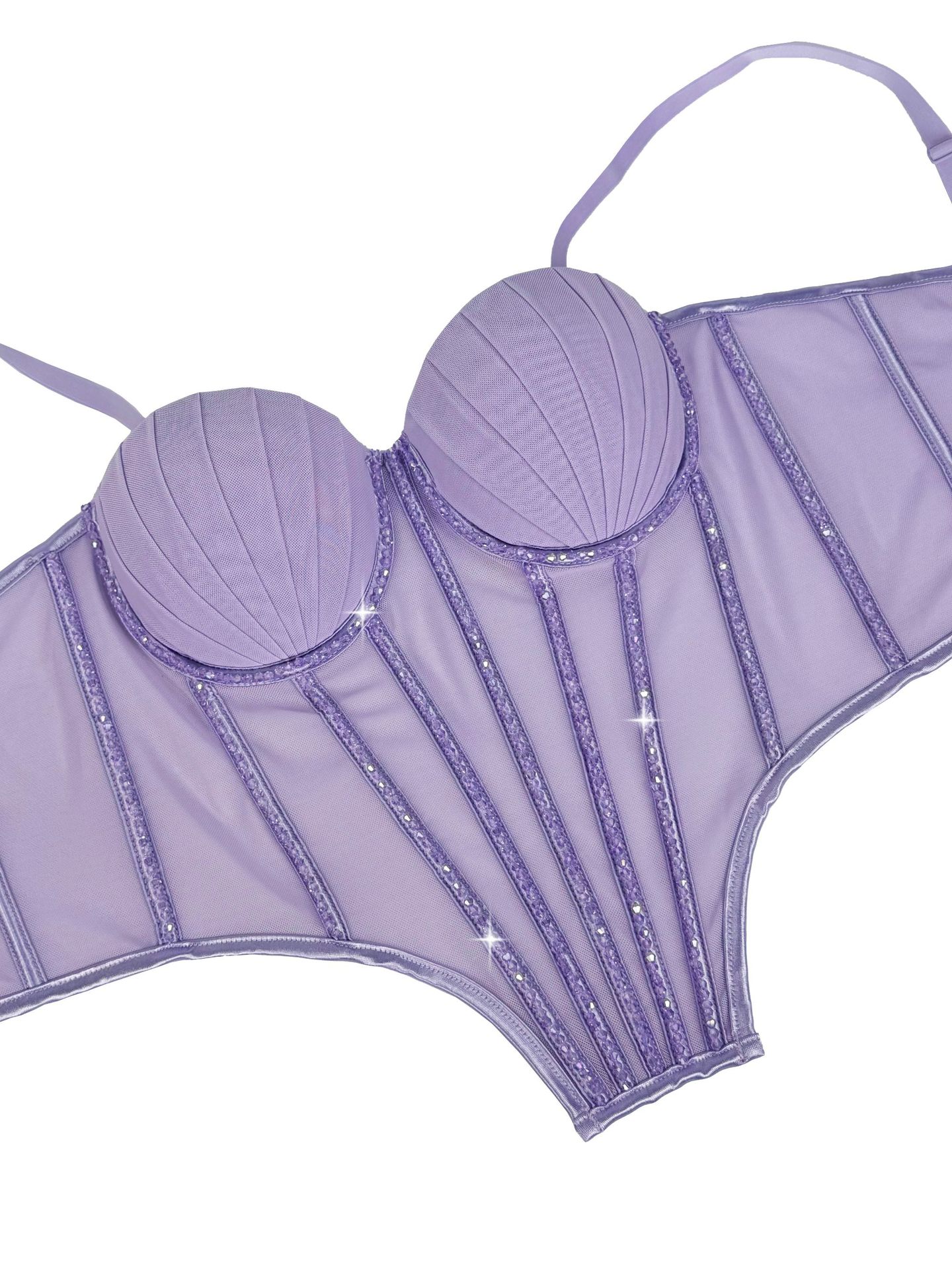 유럽과 미국의 폭발 섹시한 메쉬 슬링 내부 조끼 가슴 패드 외부 착용 플래시 다이아몬드 어본 플라스틱 브래지어