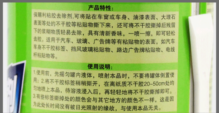 【产品名称】:绿瓶新款除胶剂450ml