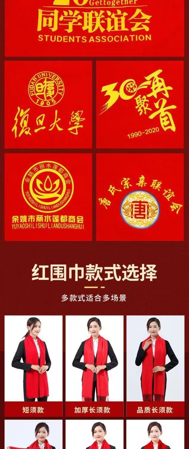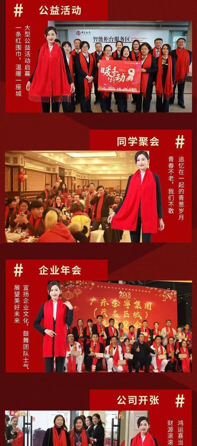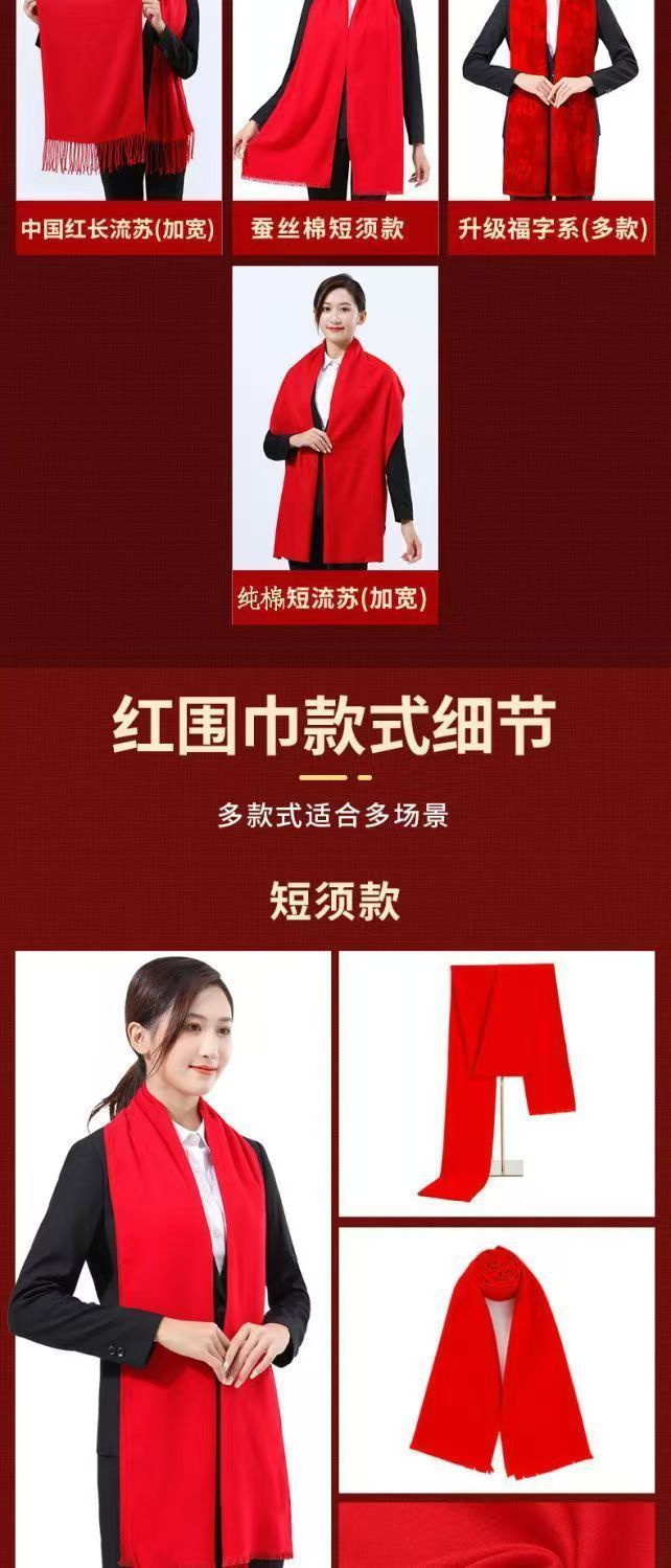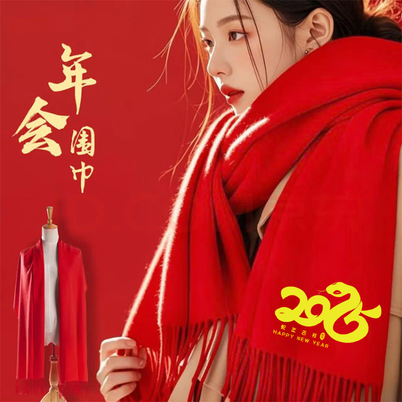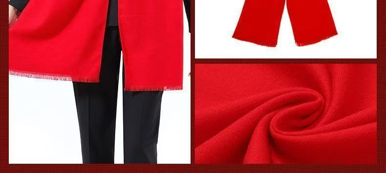 레드 스카프 도매 맞춤형 로고 연례 회의 큰 빨간 캐시미어 중국 빨간 스카프 자수 인쇄