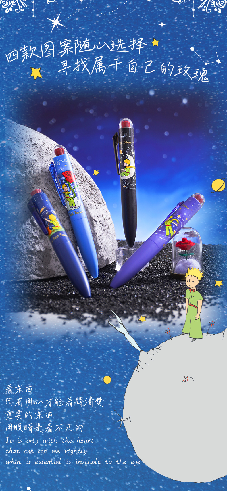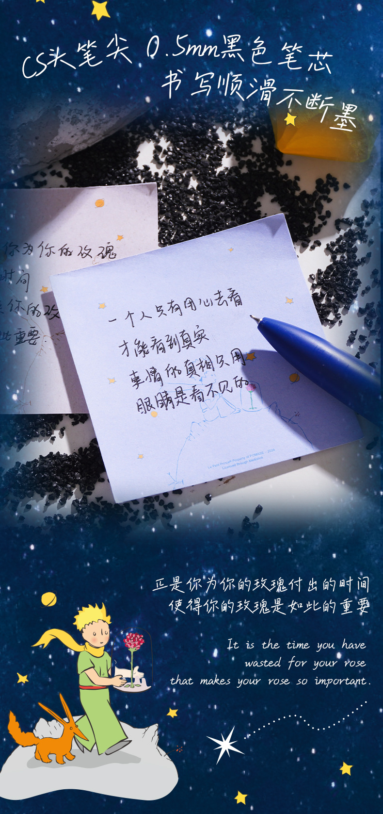 Yue Mu Little Prince Limited CS 헤드 포켓 펜 0.5 빠른 건조 블랙 펜 학생 휴대용 브러시 젤 펜