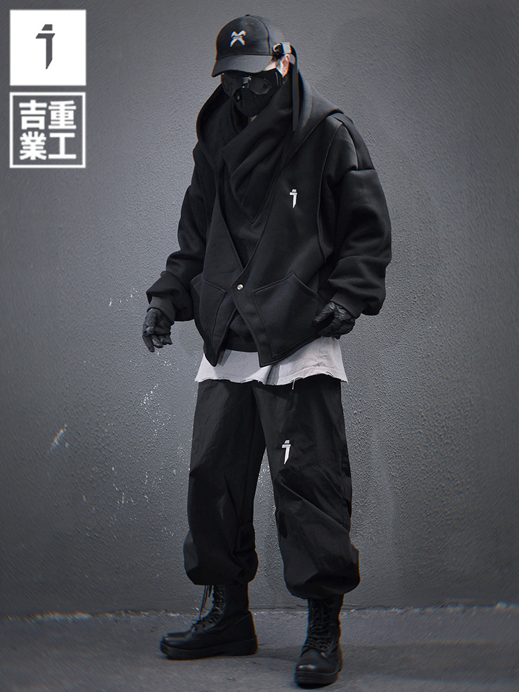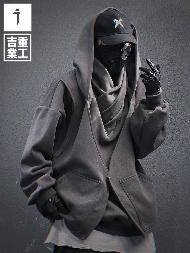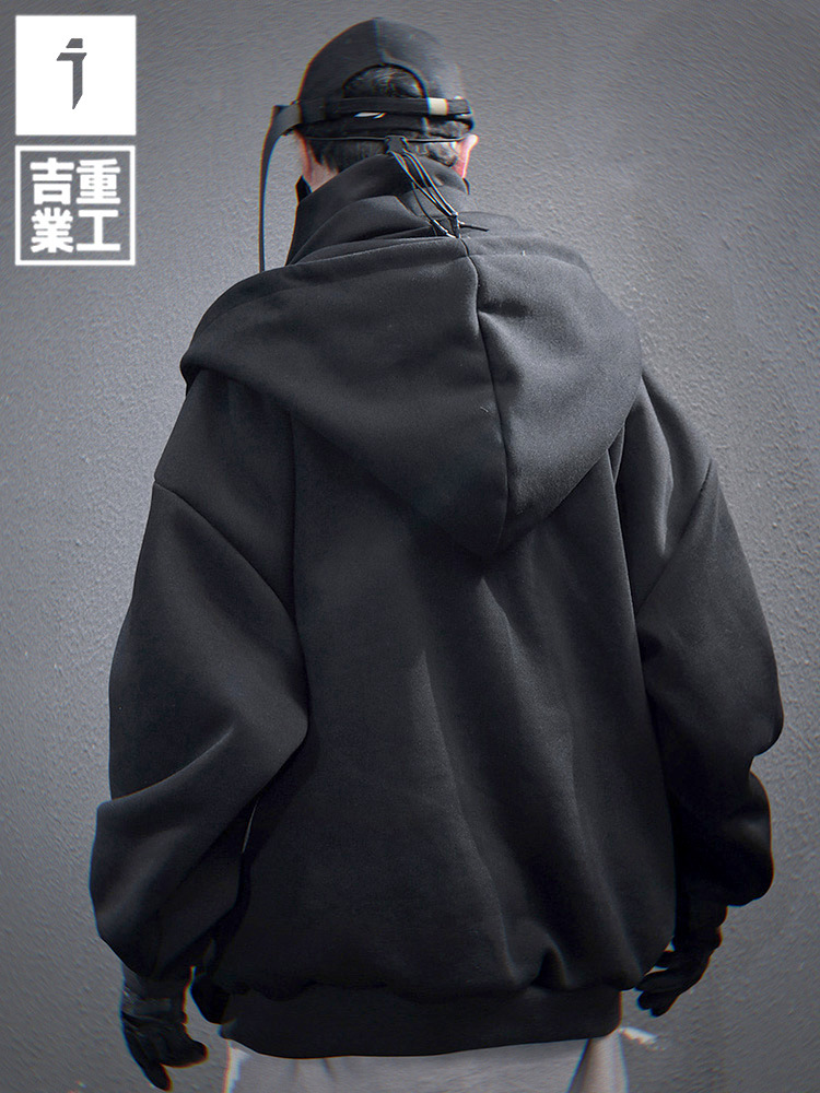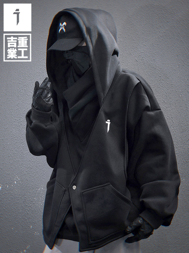 지예 중공업 2025 봄 새 무거운 자수 높은 칼라 가짜 투피스 스웨터 남자 느슨한 캐주얼 더미 칼라