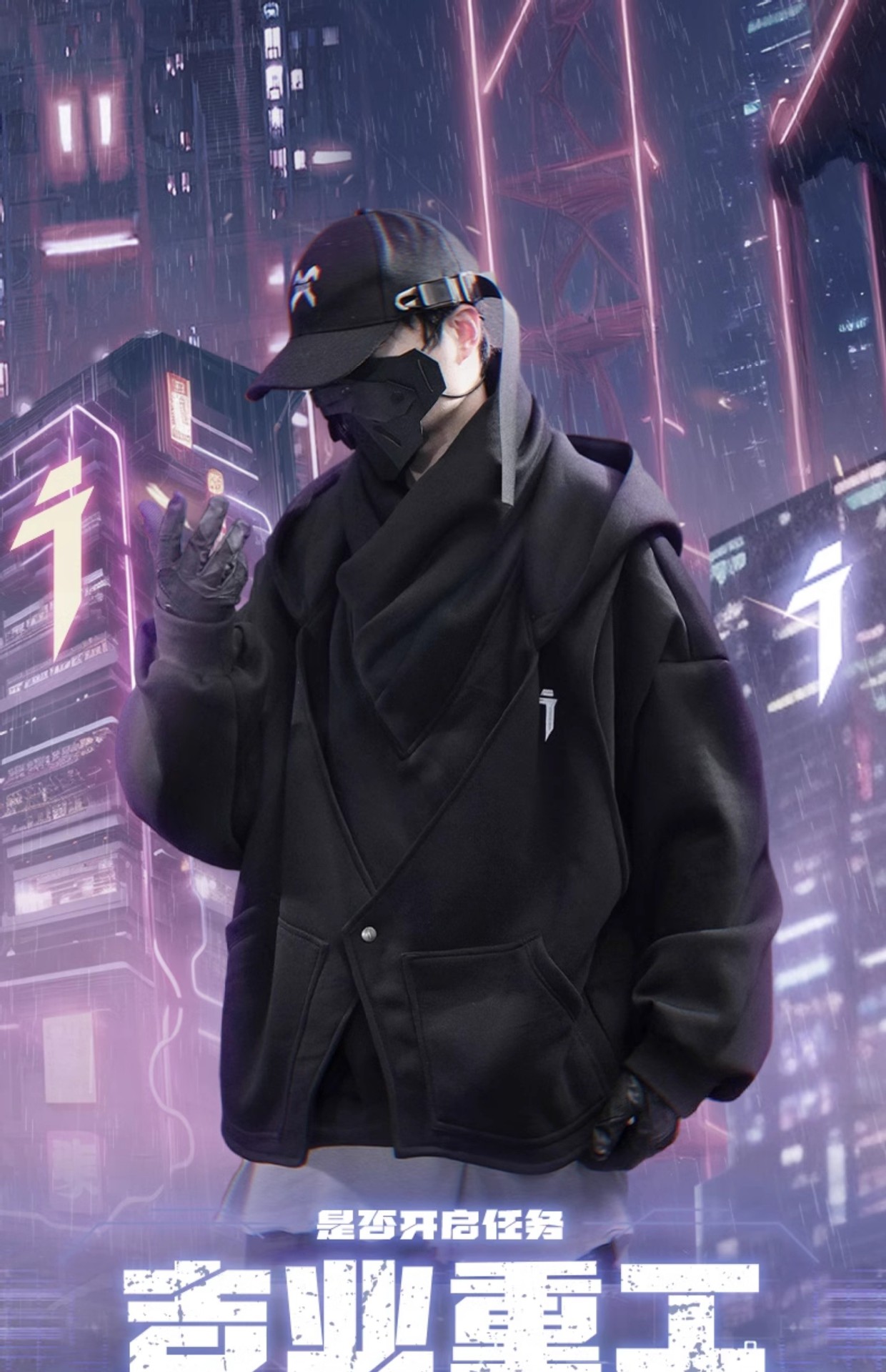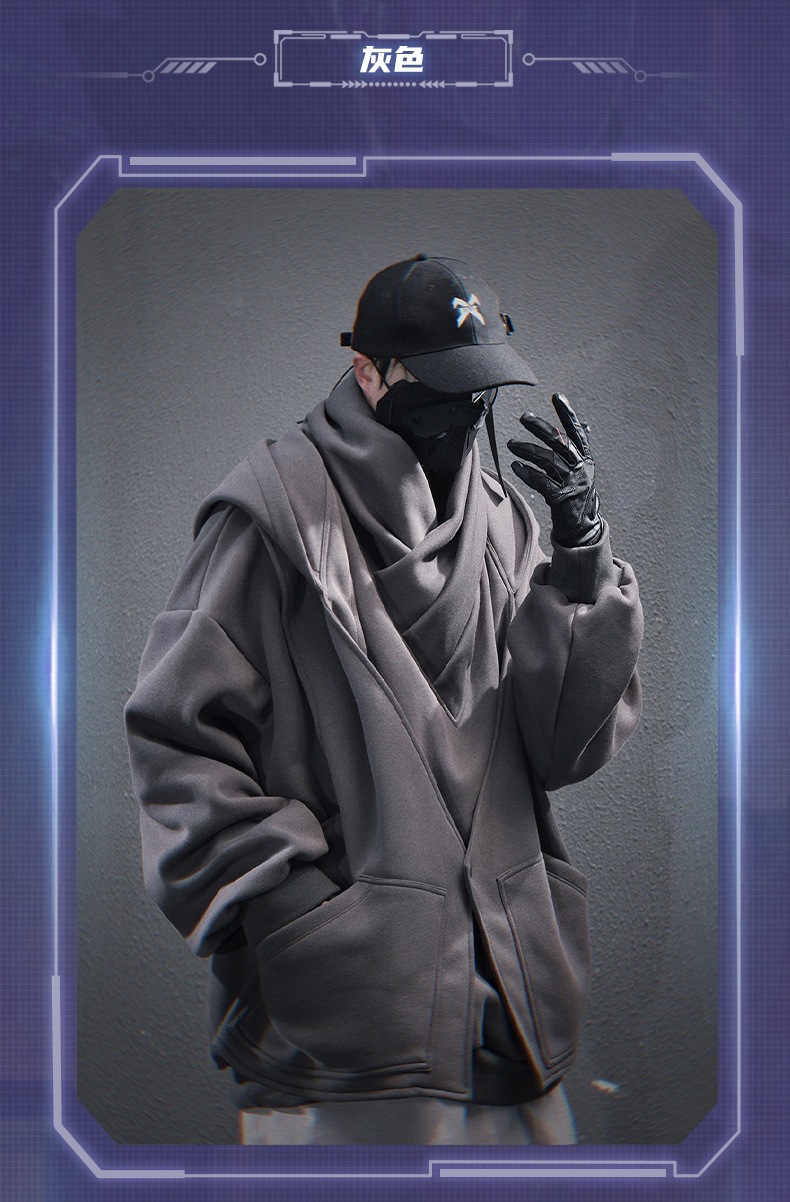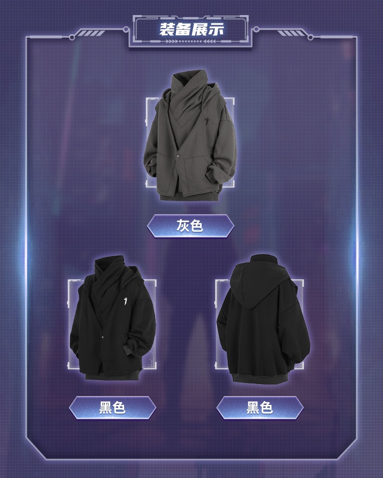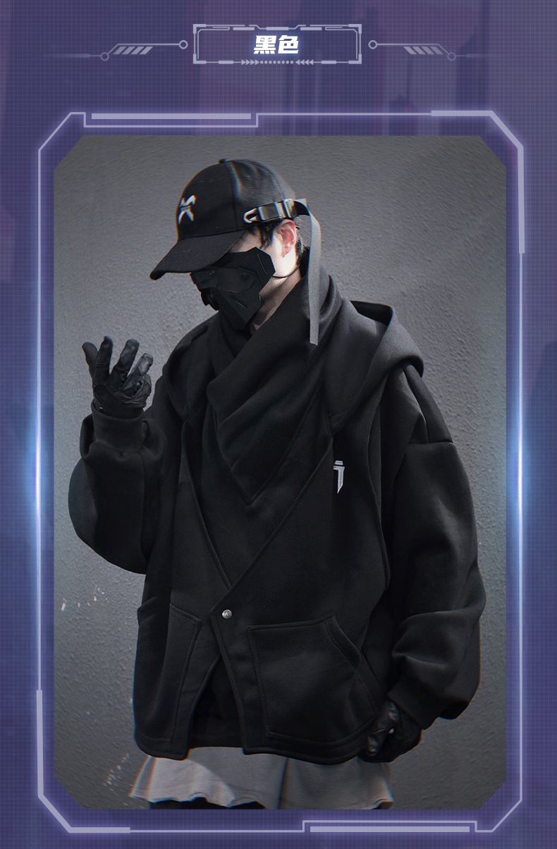 지예 중공업 2025 봄 새 무거운 자수 높은 칼라 가짜 투피스 스웨터 남자 느슨한 캐주얼 더미 칼라