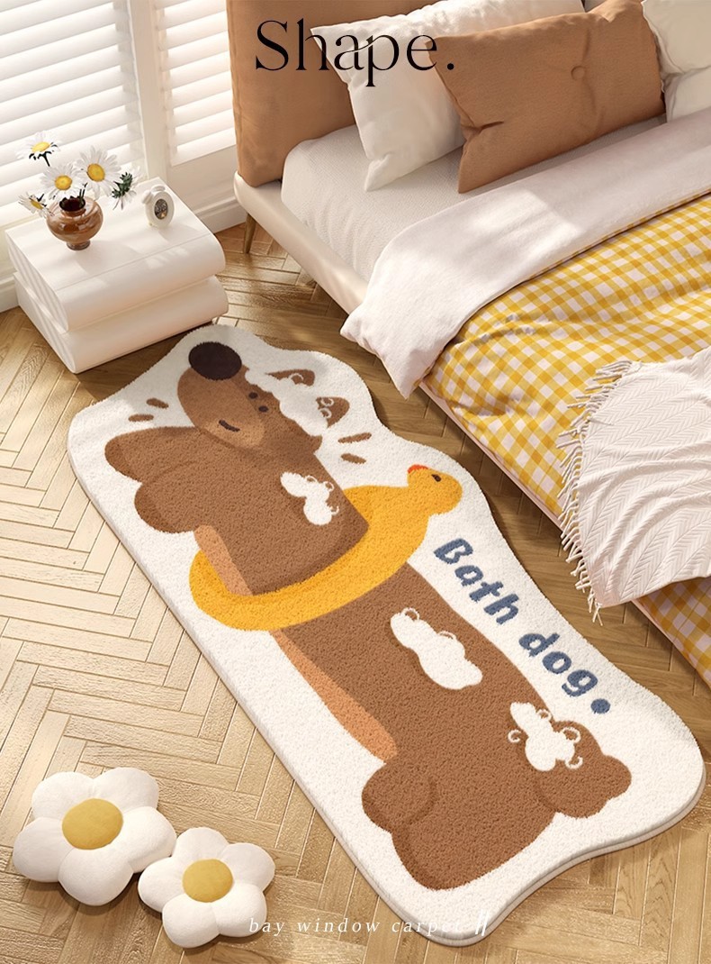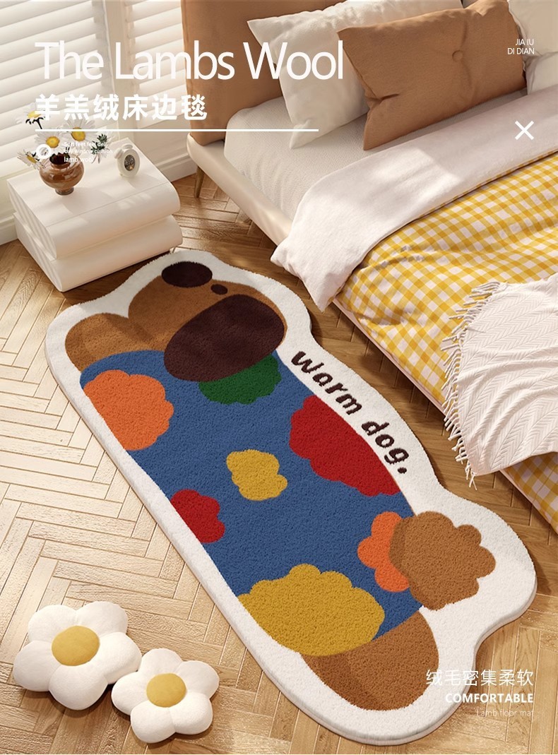 Ins 스타일 침실 캐시미어 만화 침대 옆 안티 슬립 안티 쿨 발 매트 소녀 어린이 방 착용 방지 바닥 매트
