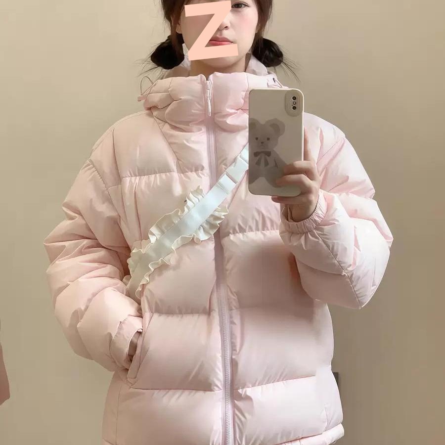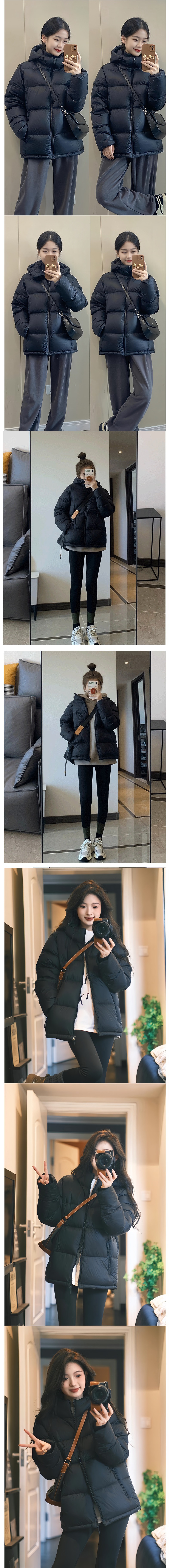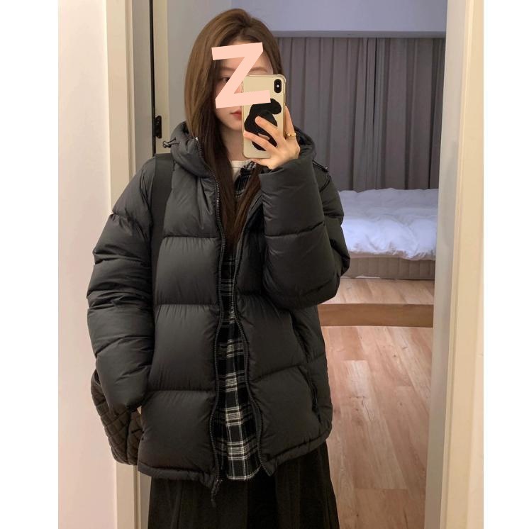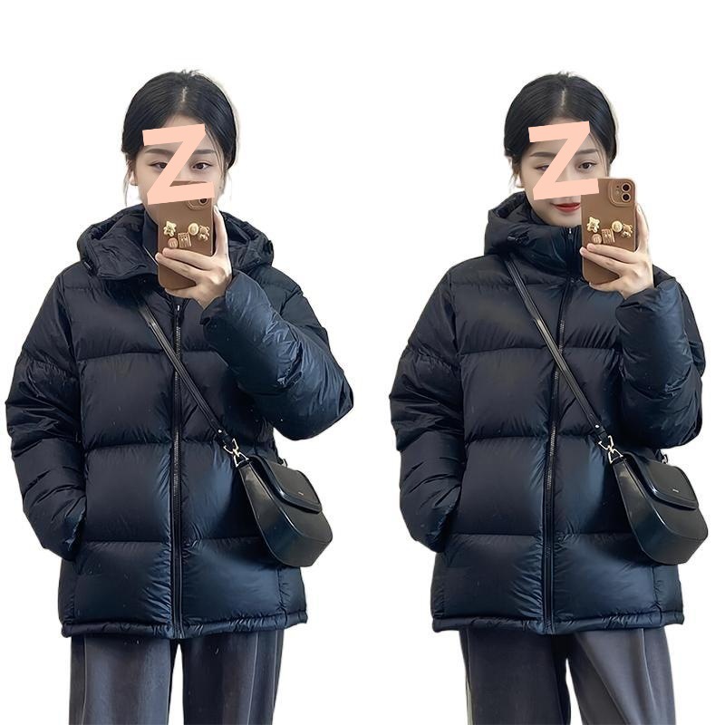 2024 새로운 흰 오리 아래로 두껍게 짧은 재킷 여성의 겨울 검은 두건 빵 세트 학생 커플 코트
