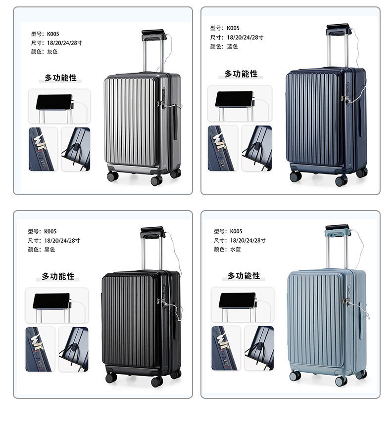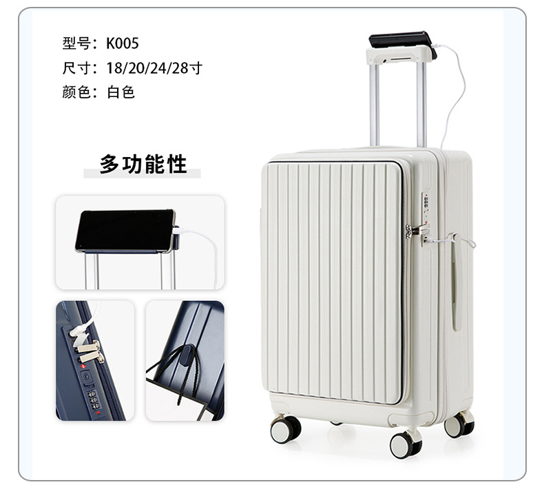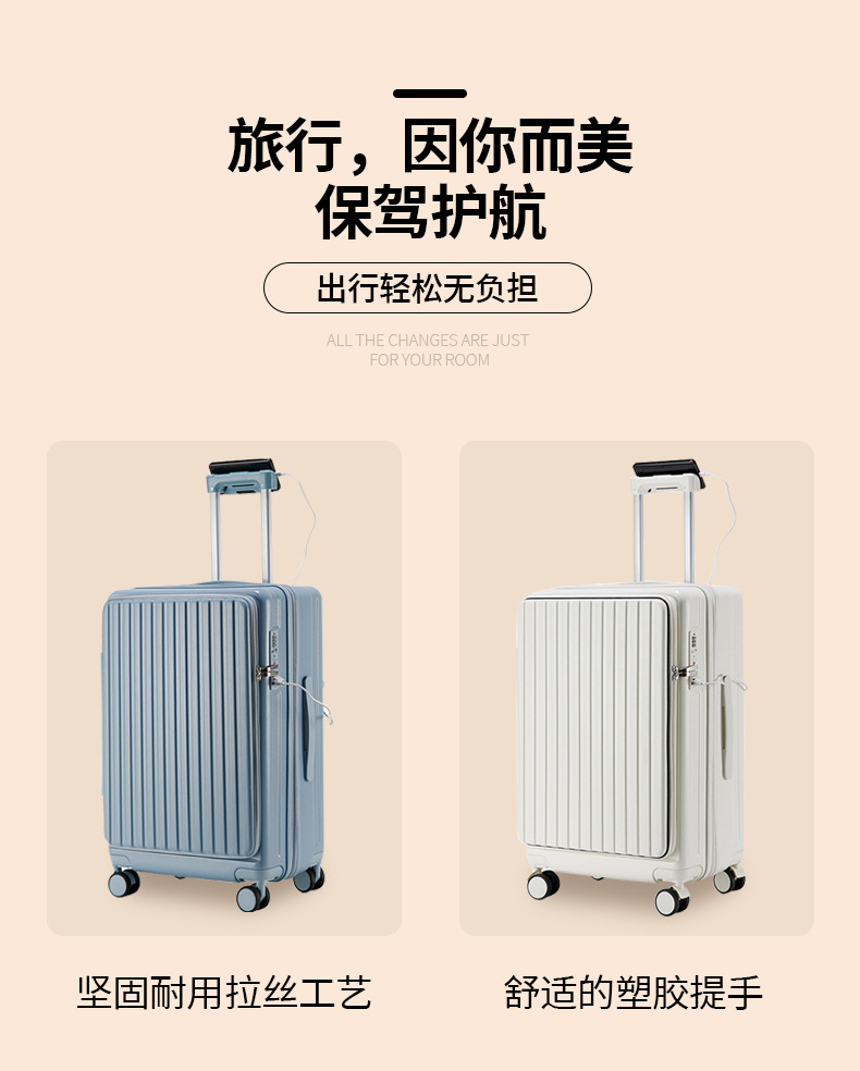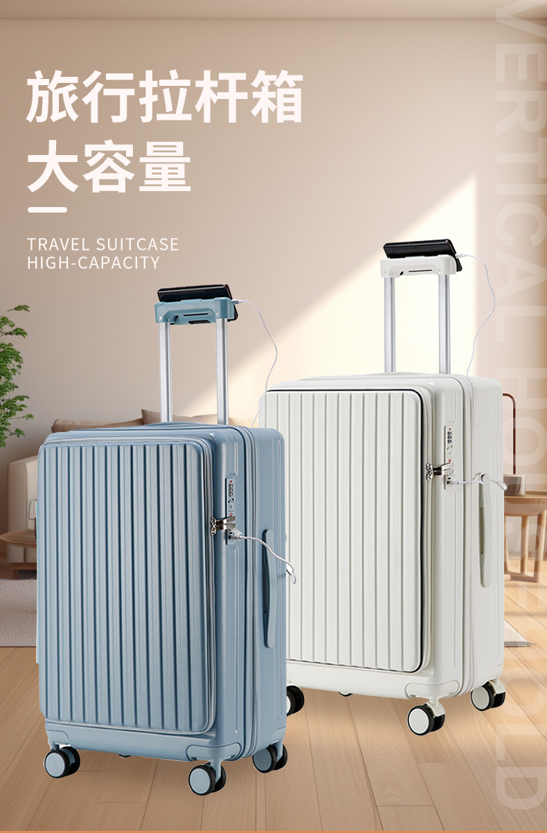 2024 다기능 비즈니스 전면 개방형 여행가방 남성용 대용량 트롤리 가방 도난 방지 여행가방