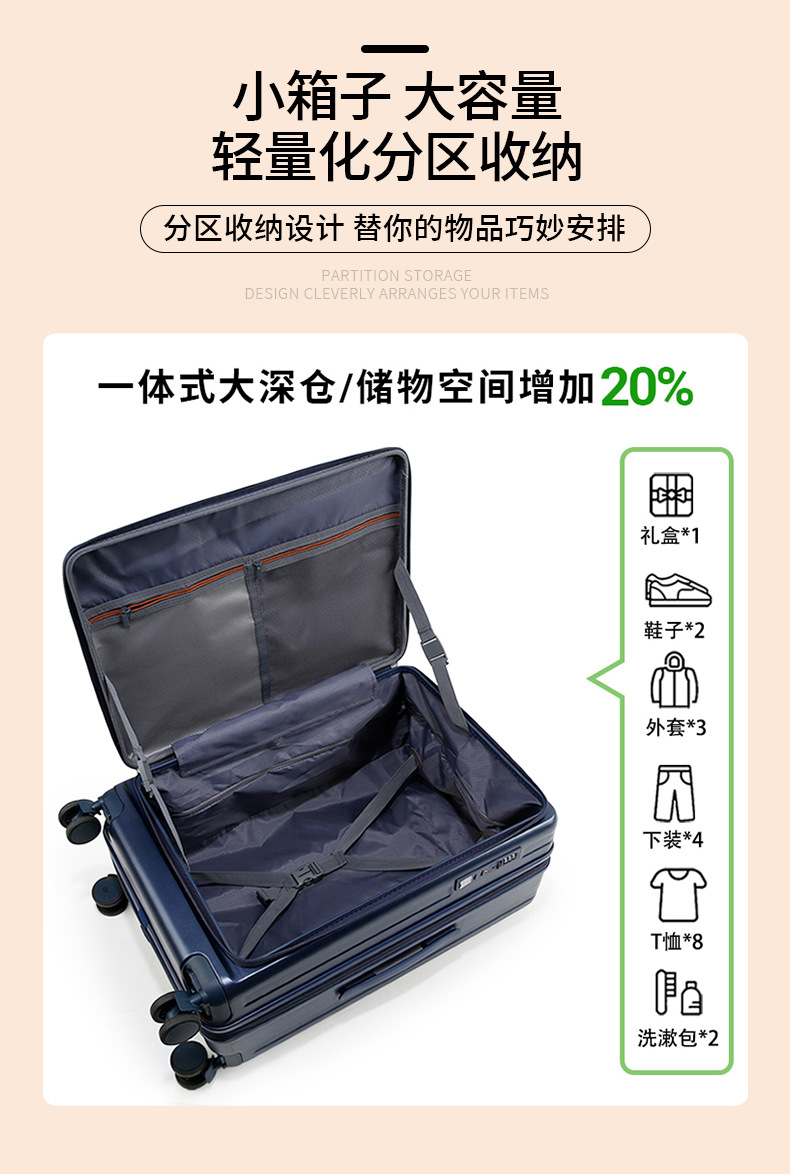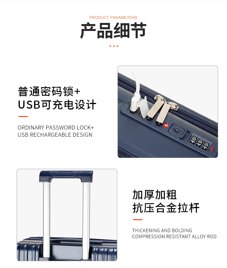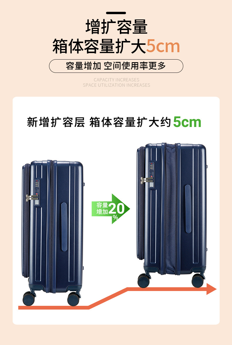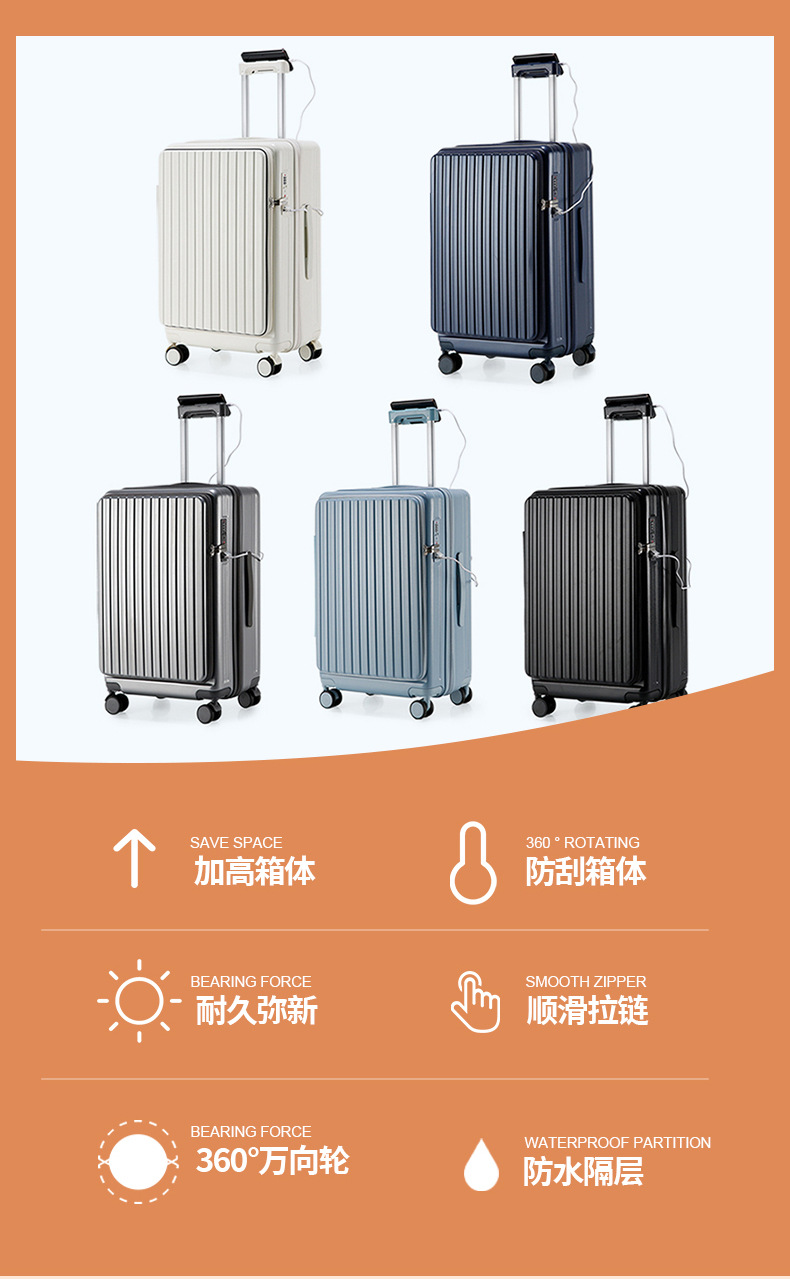 2024 다기능 비즈니스 전면 개방형 여행가방 남성용 대용량 트롤리 가방 도난 방지 여행가방