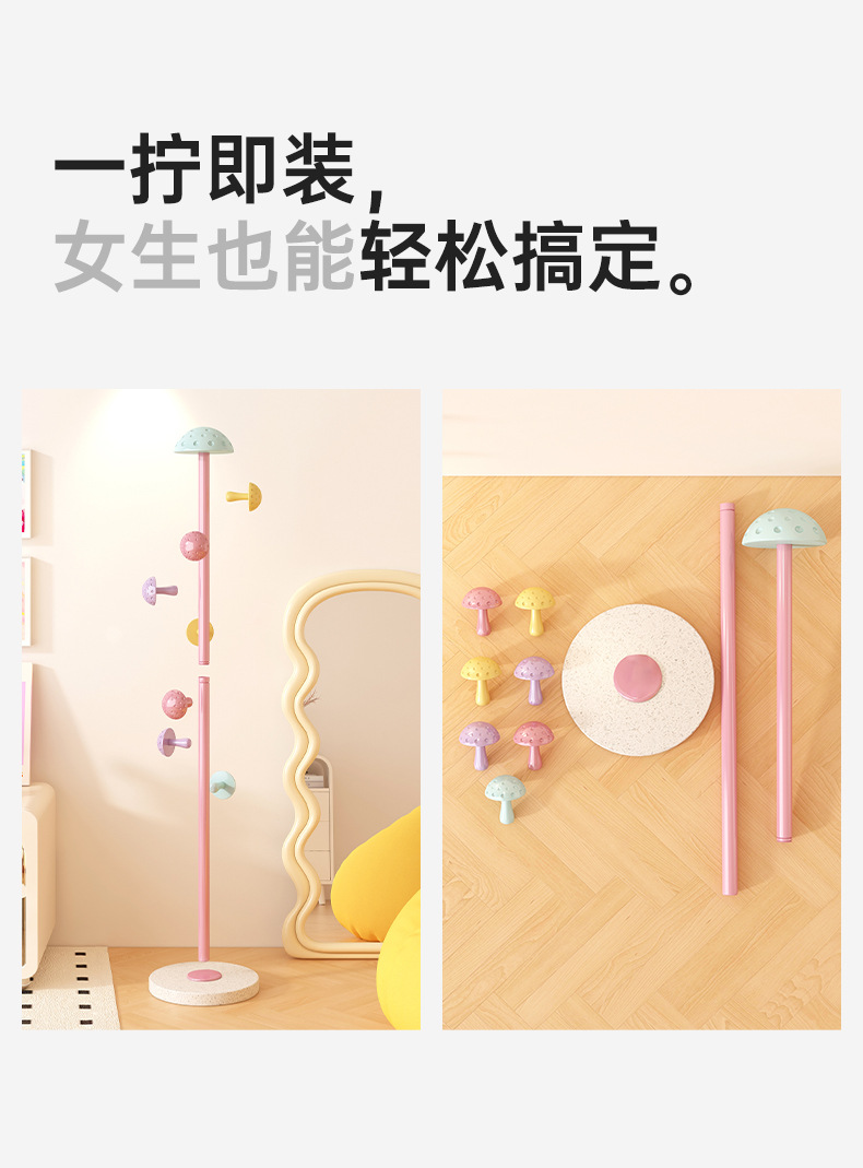 버섯 코트 랙 가정용 어린이 다채로운 옷걸이 수직 옷걸이 바닥 침실 공간 절약형 옷 랙