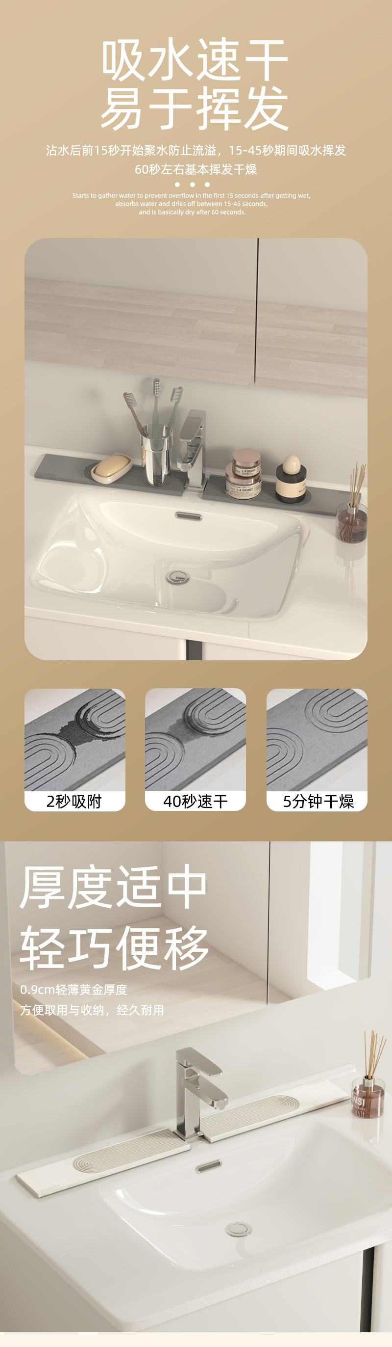 국경을 넘는 규조토 진흙 수도꼭지 흡수 패드, 주방 및 욕실 세면대 수납 패드, 욕실 하드 패드 맞춤 제작