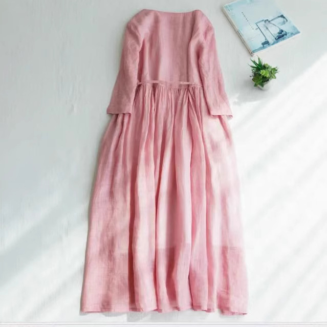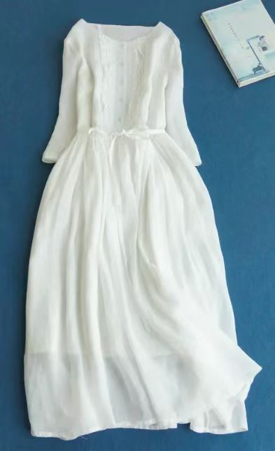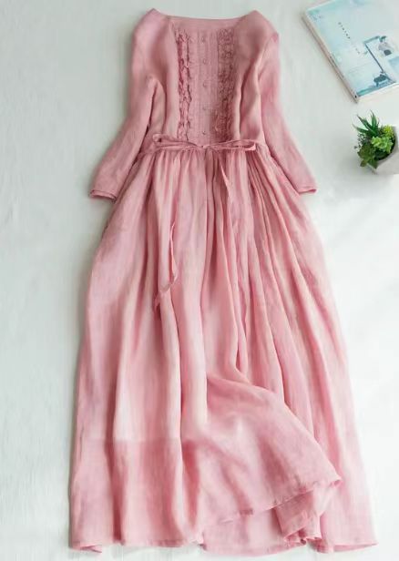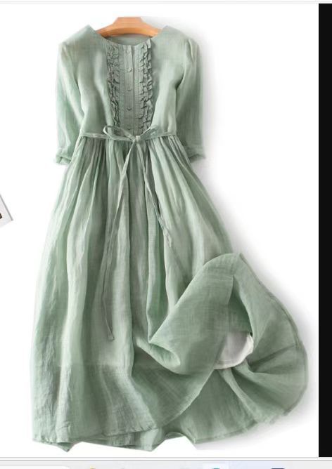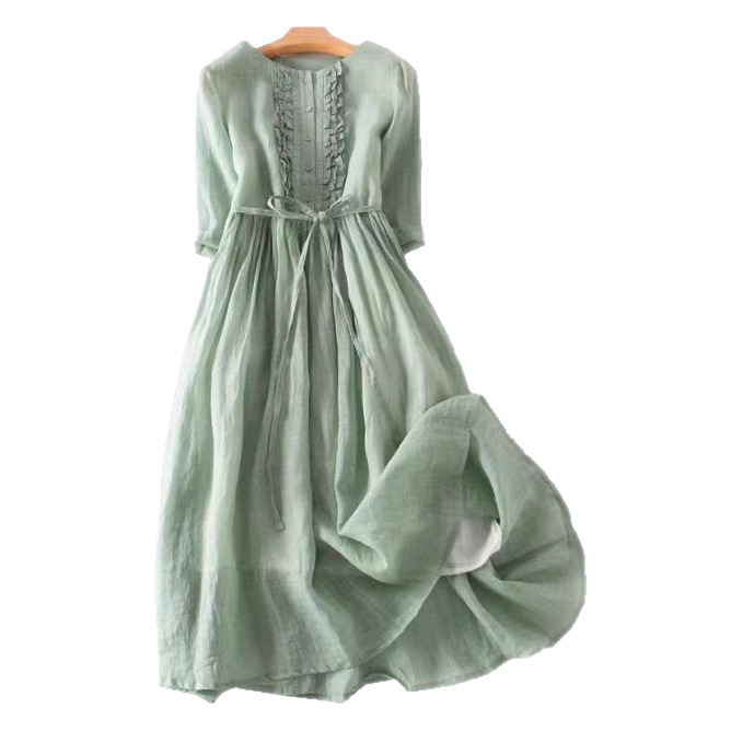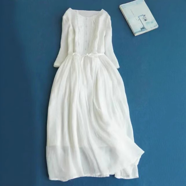 2024 여성의 귀 가장자리 레이스 허리 중간 길이 여행 원피스 여름 캐주얼 긴 원피스 새로운 패션 패션