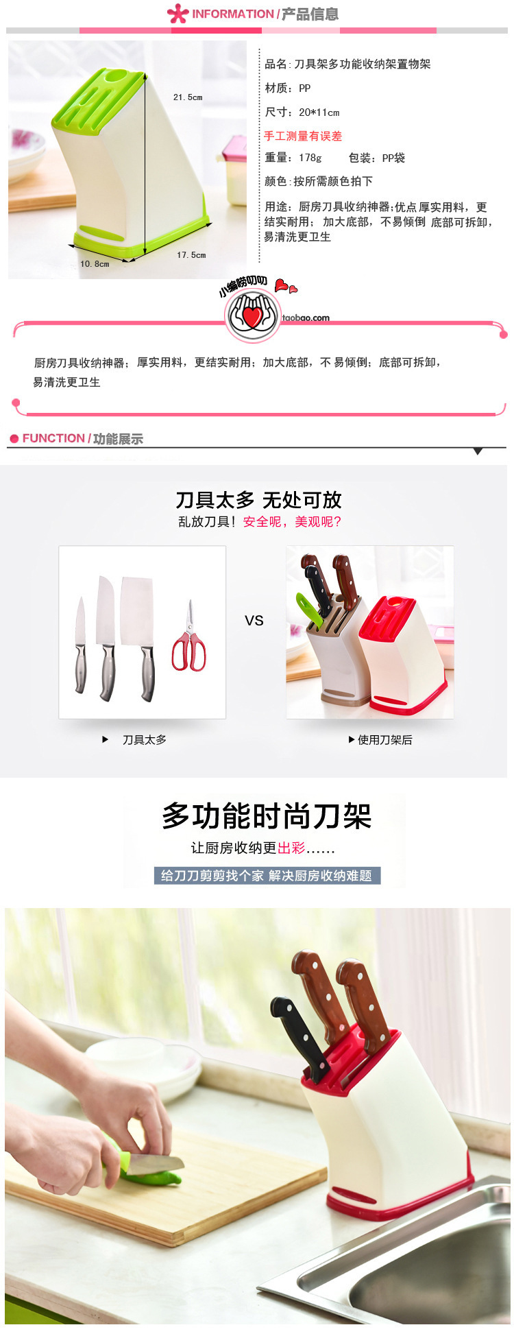 칼 랙 저장 랙 주방 용품 배수 칼 저장 랙 플라스틱 다기능 카운터 탑 작은 주방 칼 홀크