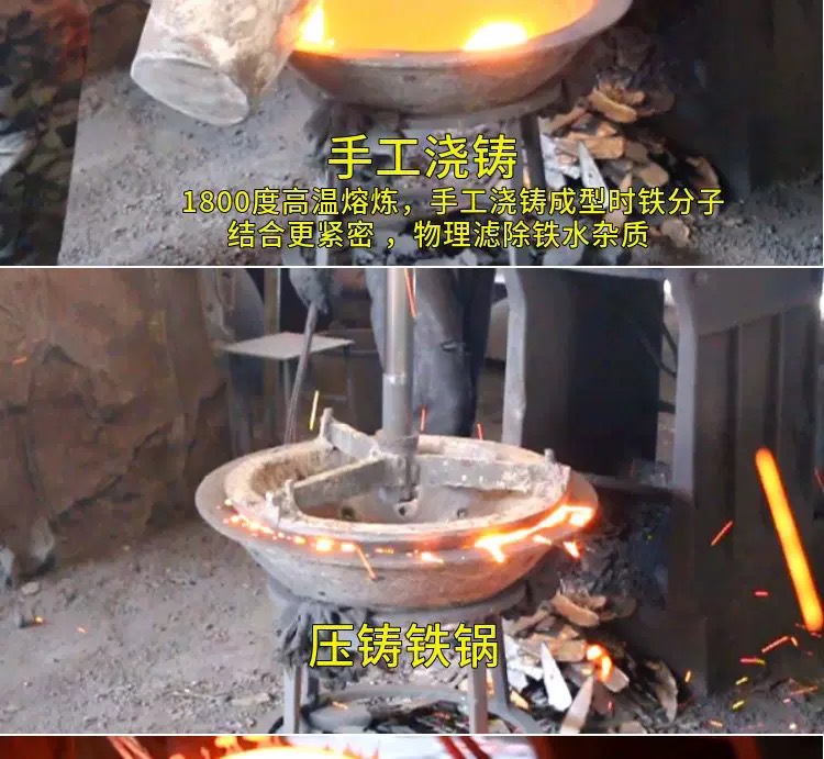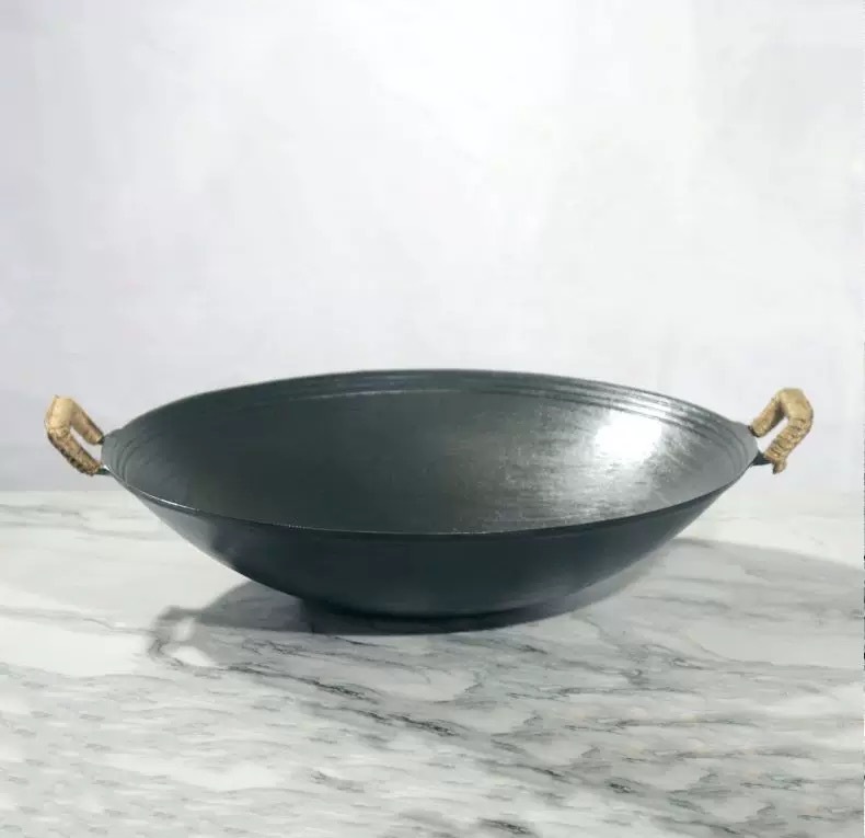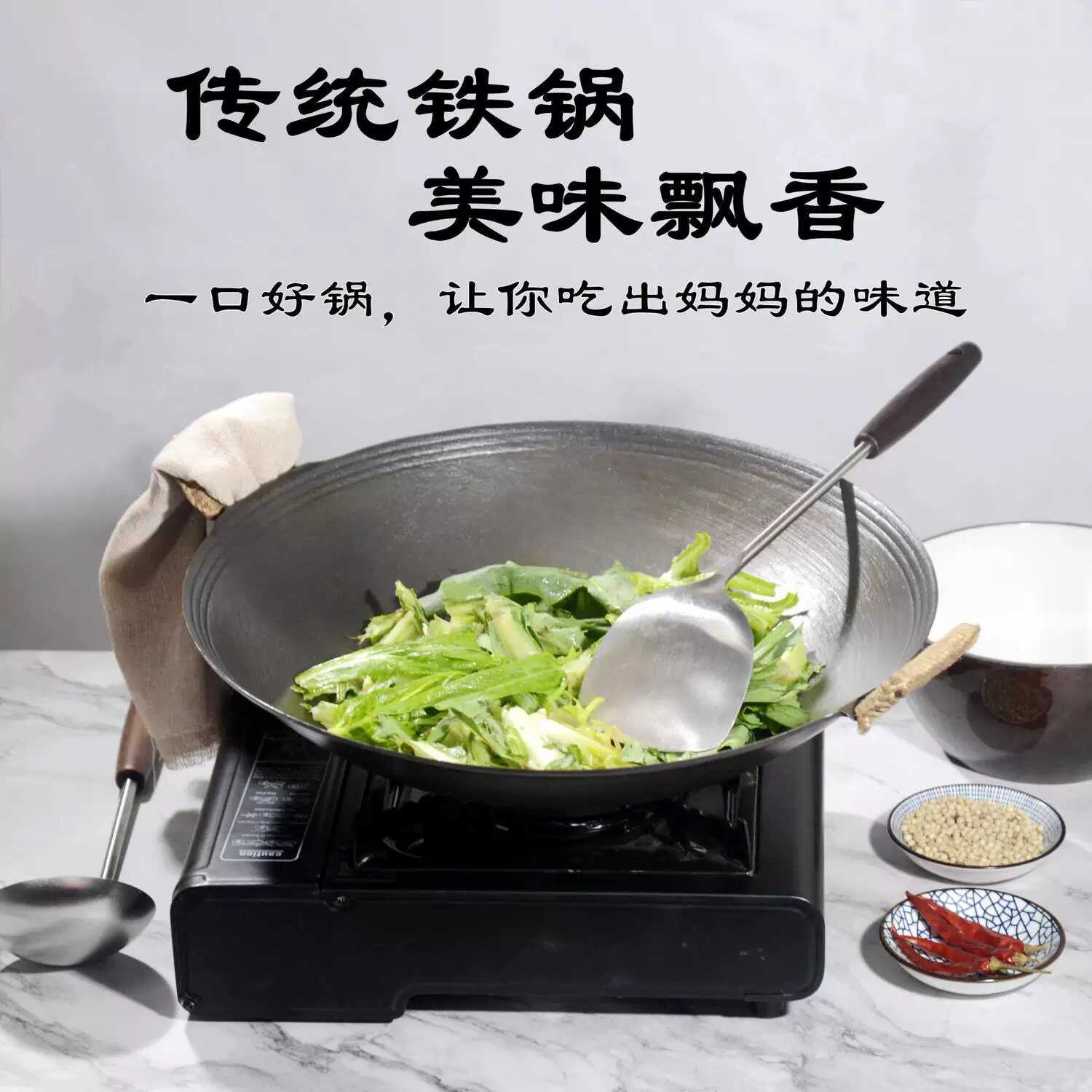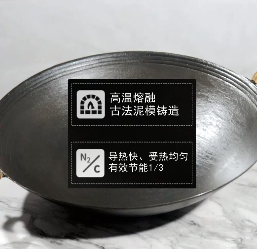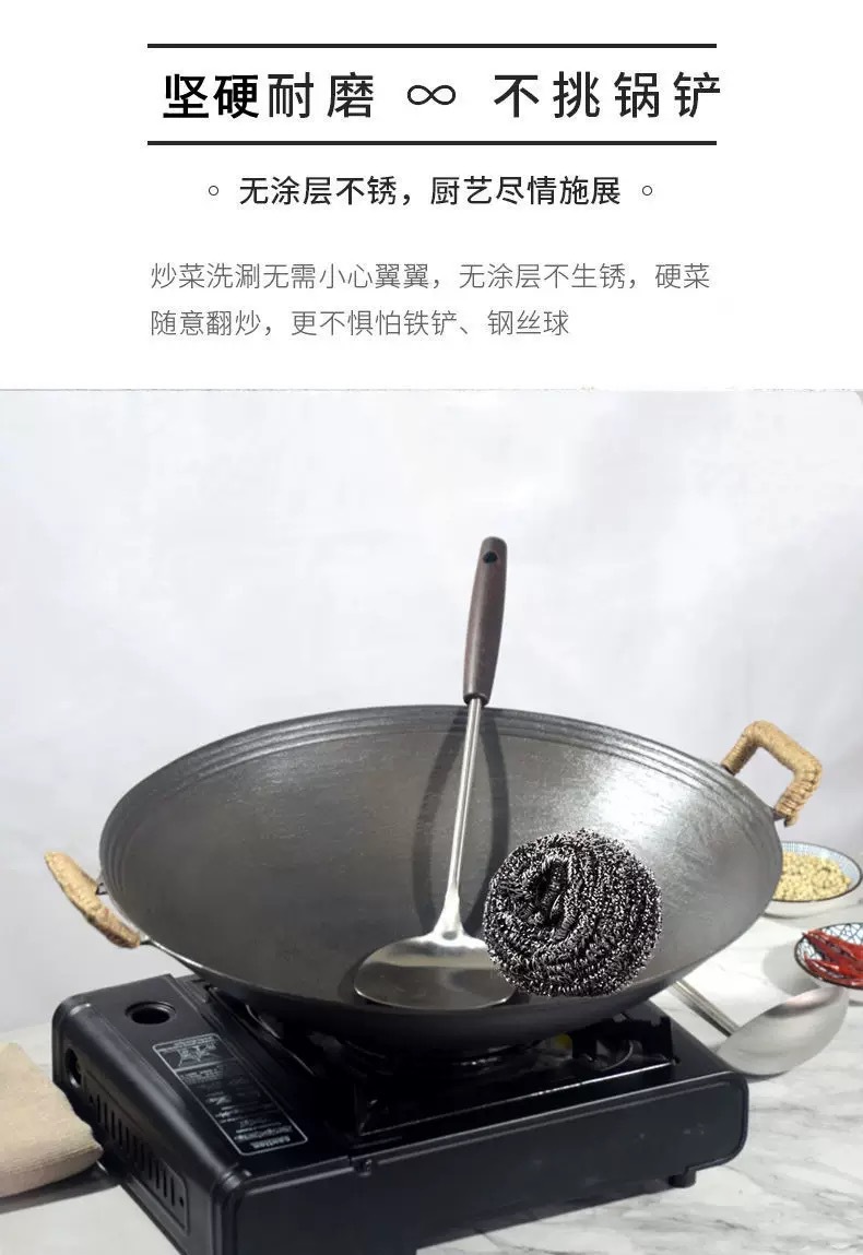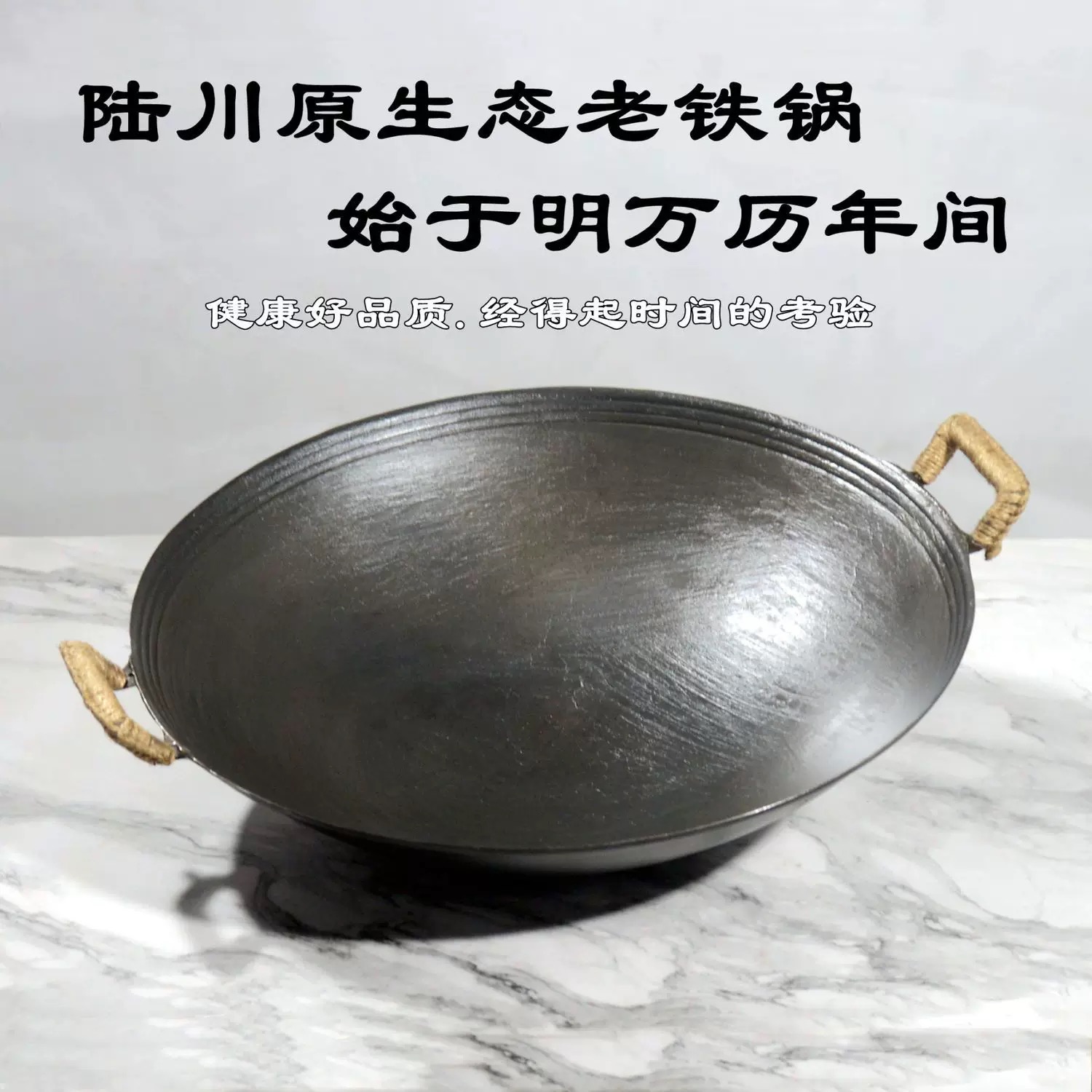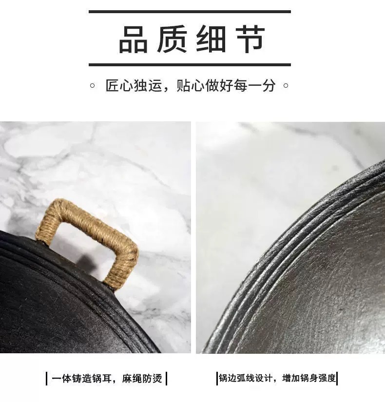 주철 Wok 과거 철 오래 된 스타일 Wok 가스 라운드 전통적인 바이노럴 두껍게 심화 나무 불 광시 Luchuan