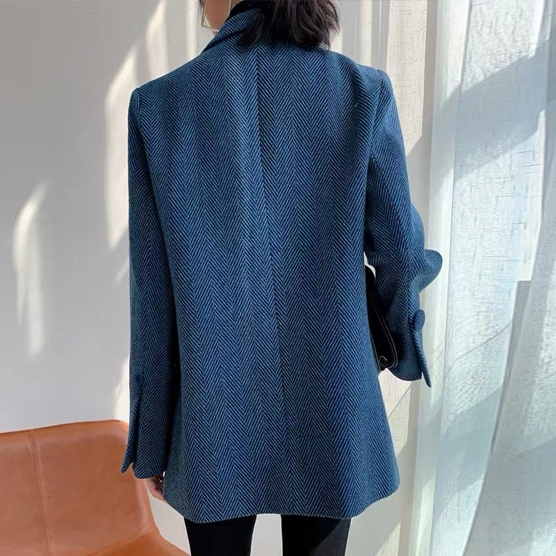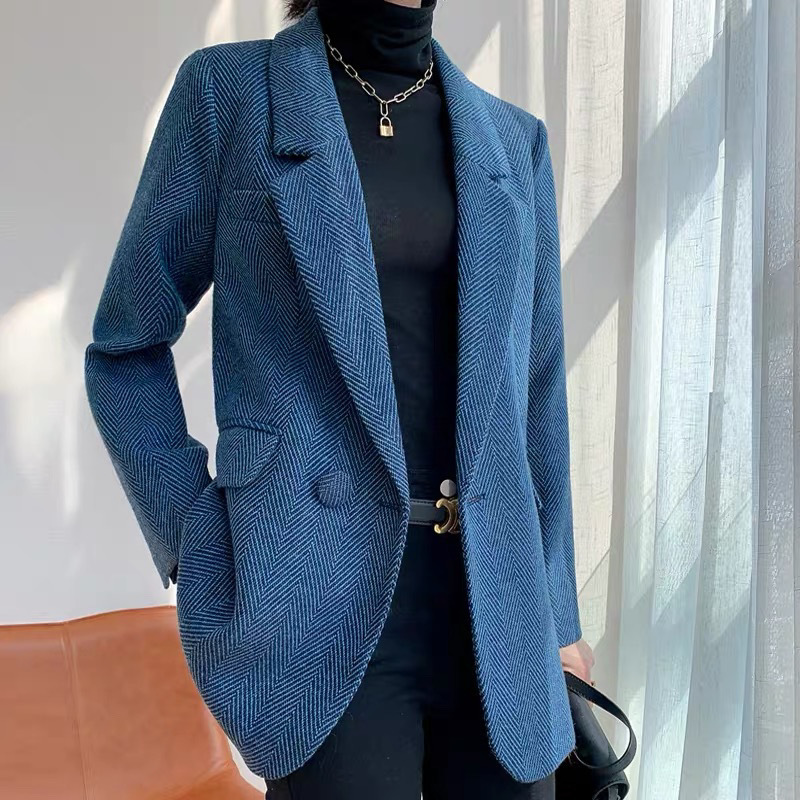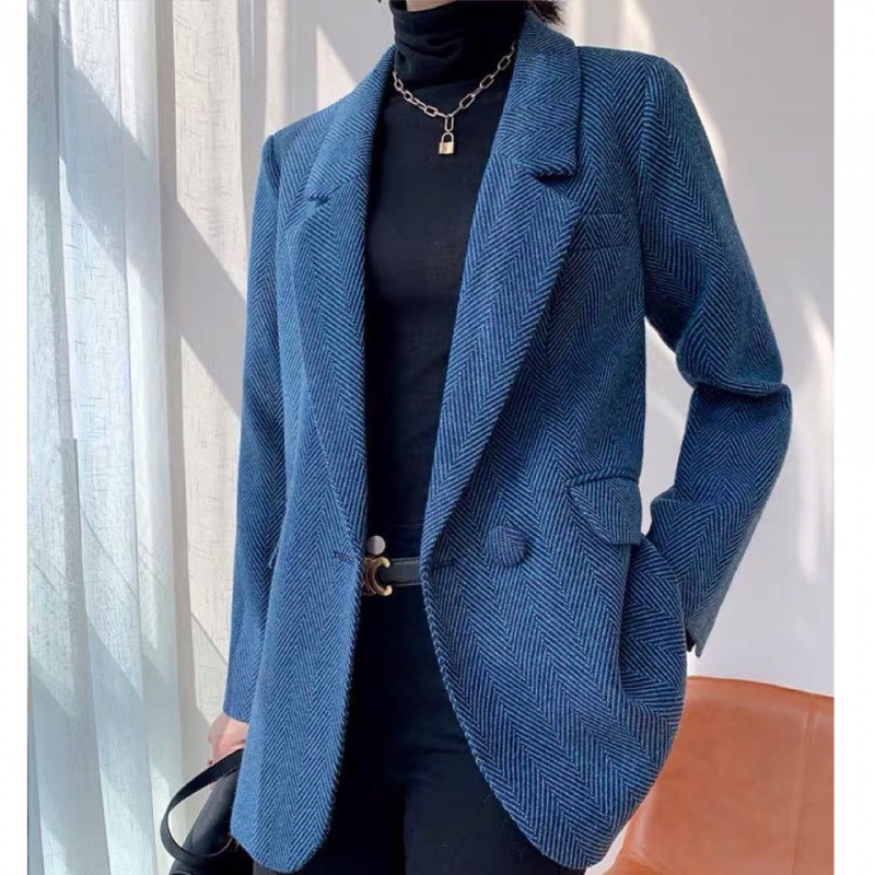 2026 봄 가을 신상 영국풍 고급 울 헤링본 패턴 모직 블레이저 여성용 우아한 정장 재킷