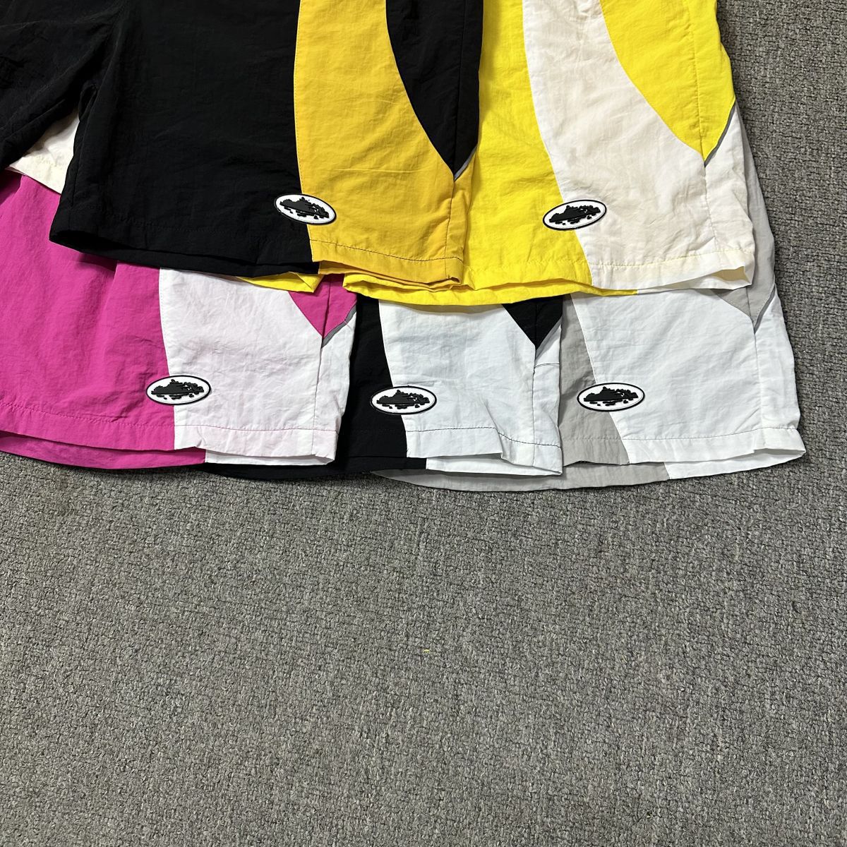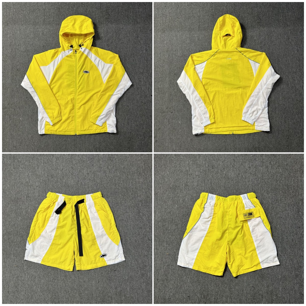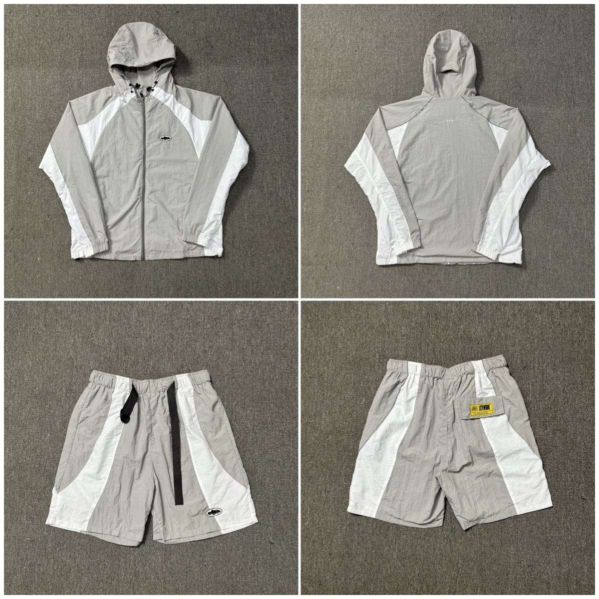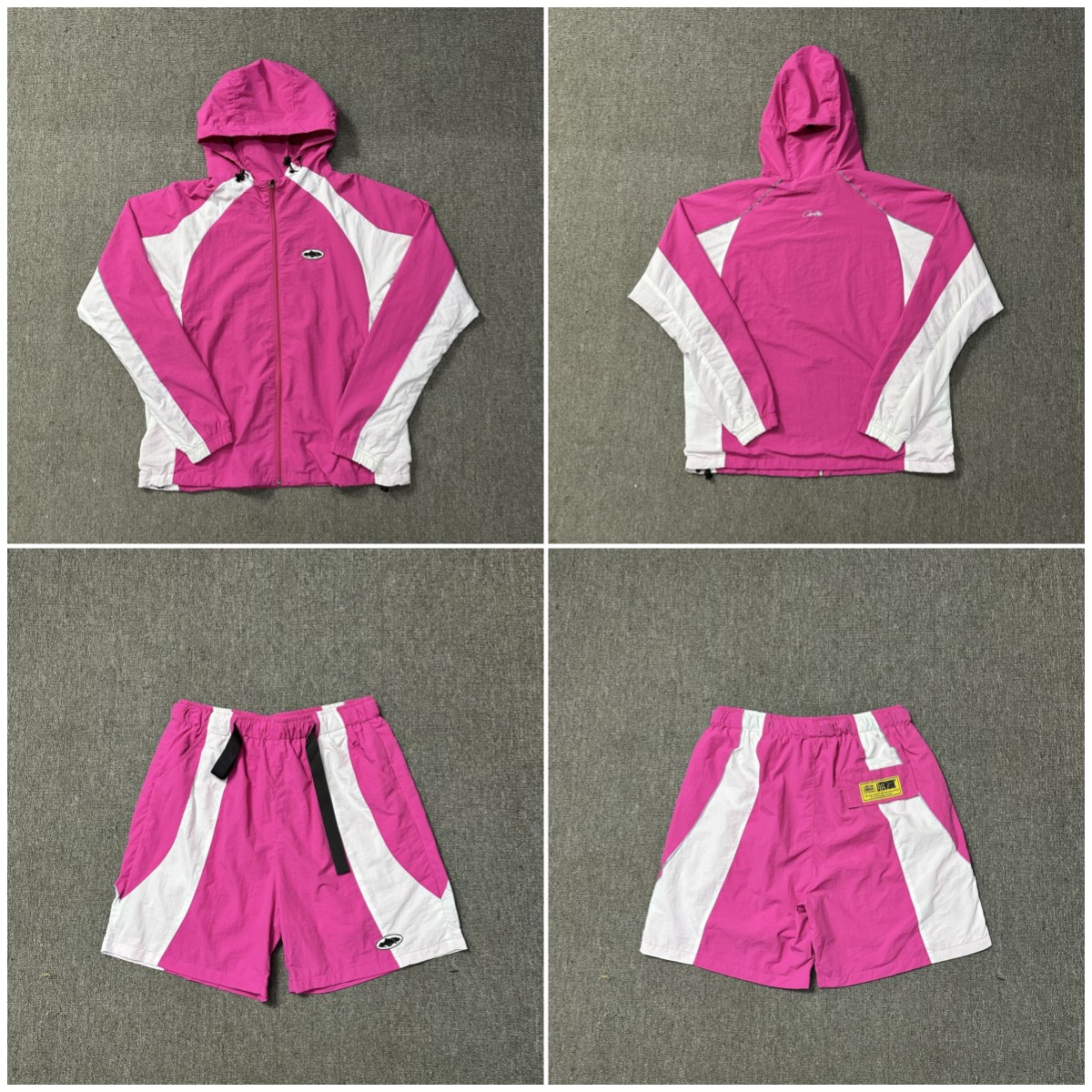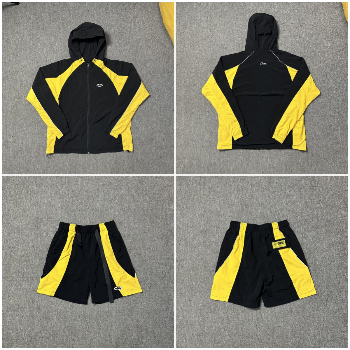 Corteiz 새로운 배지 로고 대비 색상 충전 의류 얇은 재킷 스포츠 반바지 남성 및 여성 느슨한 캐주얼 세트