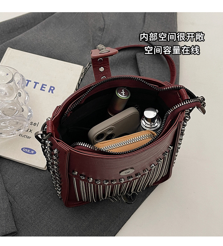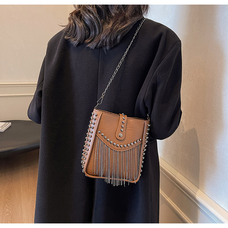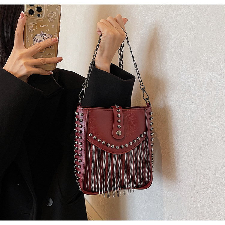 패션 크로스-국경 새로운 버킷 가방 유럽과 미국의 기관차 술 가방 패션 어깨 크로스 바디 가방 휴대 전화 리벳 가방 여성